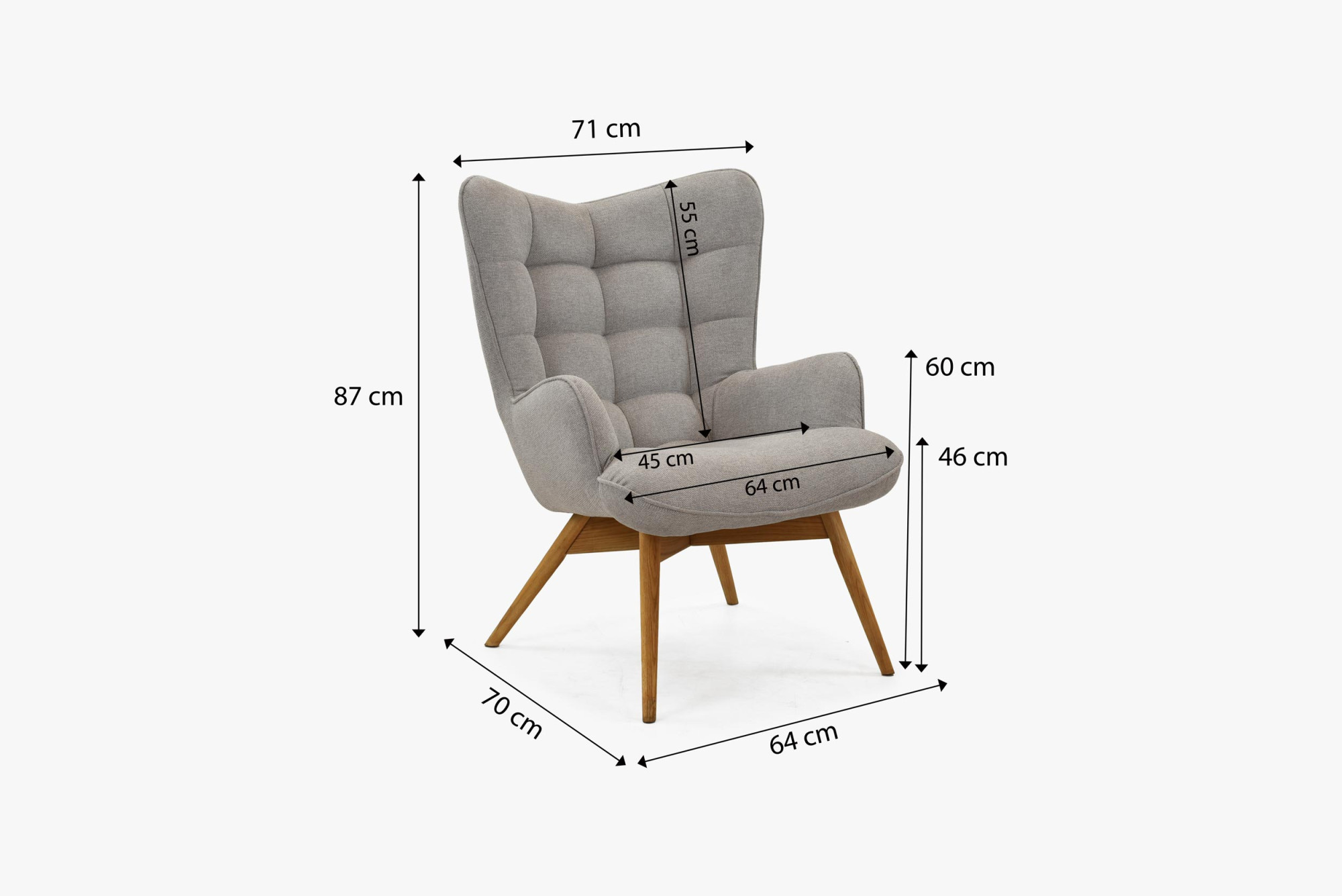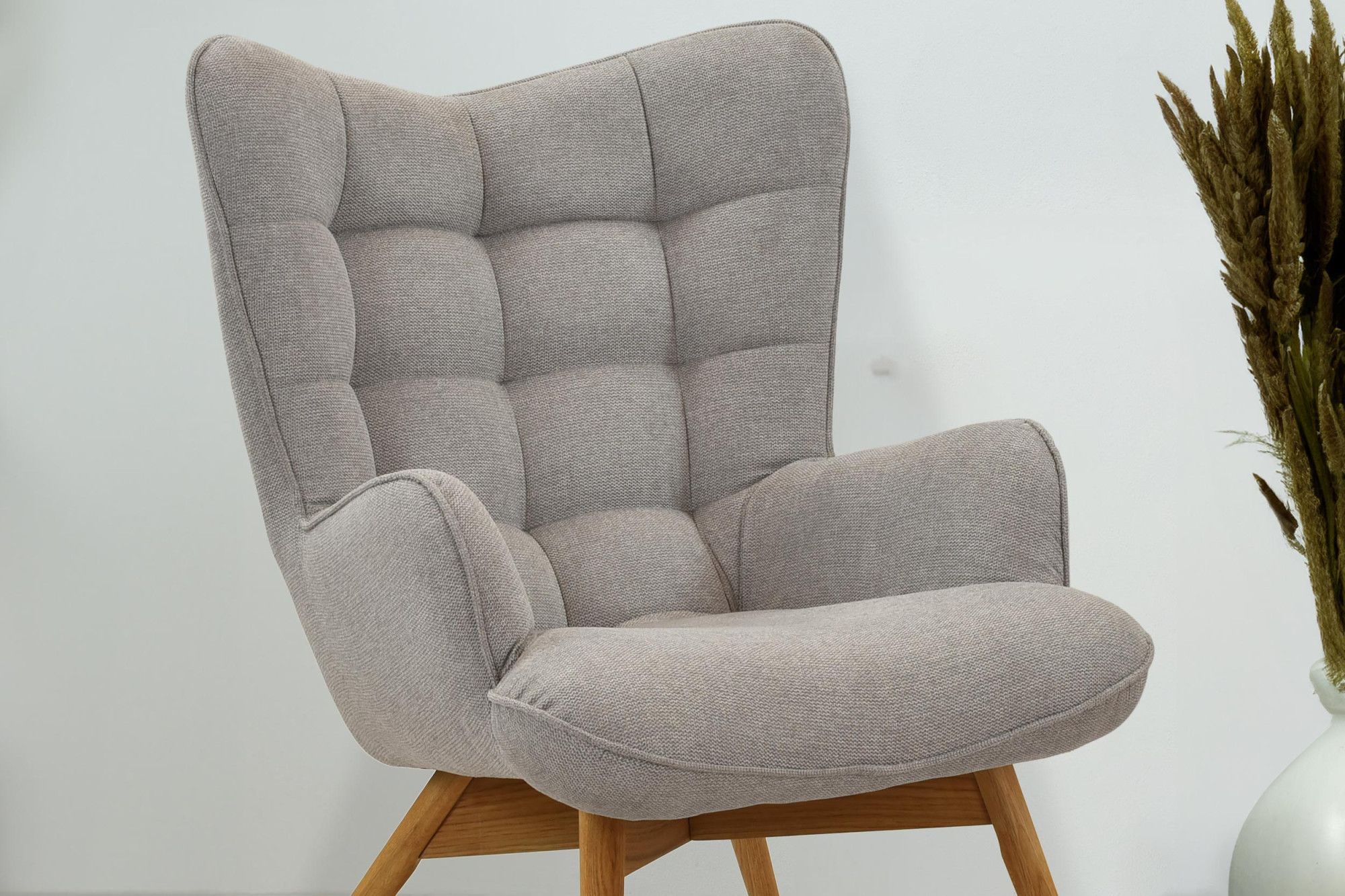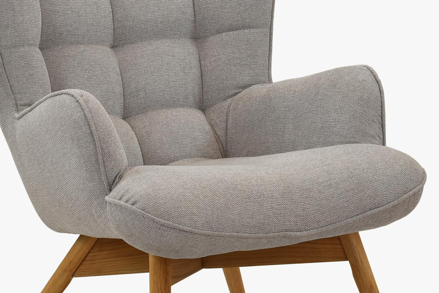 Moderner Sessel für das Wohnzimmer ist die ideale Wahl für diejenigen, die elegante und bequeme Möbel suchen. Dieser Sessel besticht durch seine einzigartige Steppung an Sitz- und Rückenfläche, die ihm ein außergewöhnlich luxuriöses Aussehen verleiht. Der verwendete Stoff ist von hoher Qualität, angenehm in der Haptik und sein hellgrauer Farbton passt in jedes Interieur. Die Beine des Sessels sind aus Eichenholz gefertigt und mit natürlichem Öl behandelt, was ihre Widerstandsfähigkeit und Langlebigkeit gewährleistet. Da die Sesselbeine leicht montierbar sind, ist der Aufbau in wenigen Minuten erledigt.