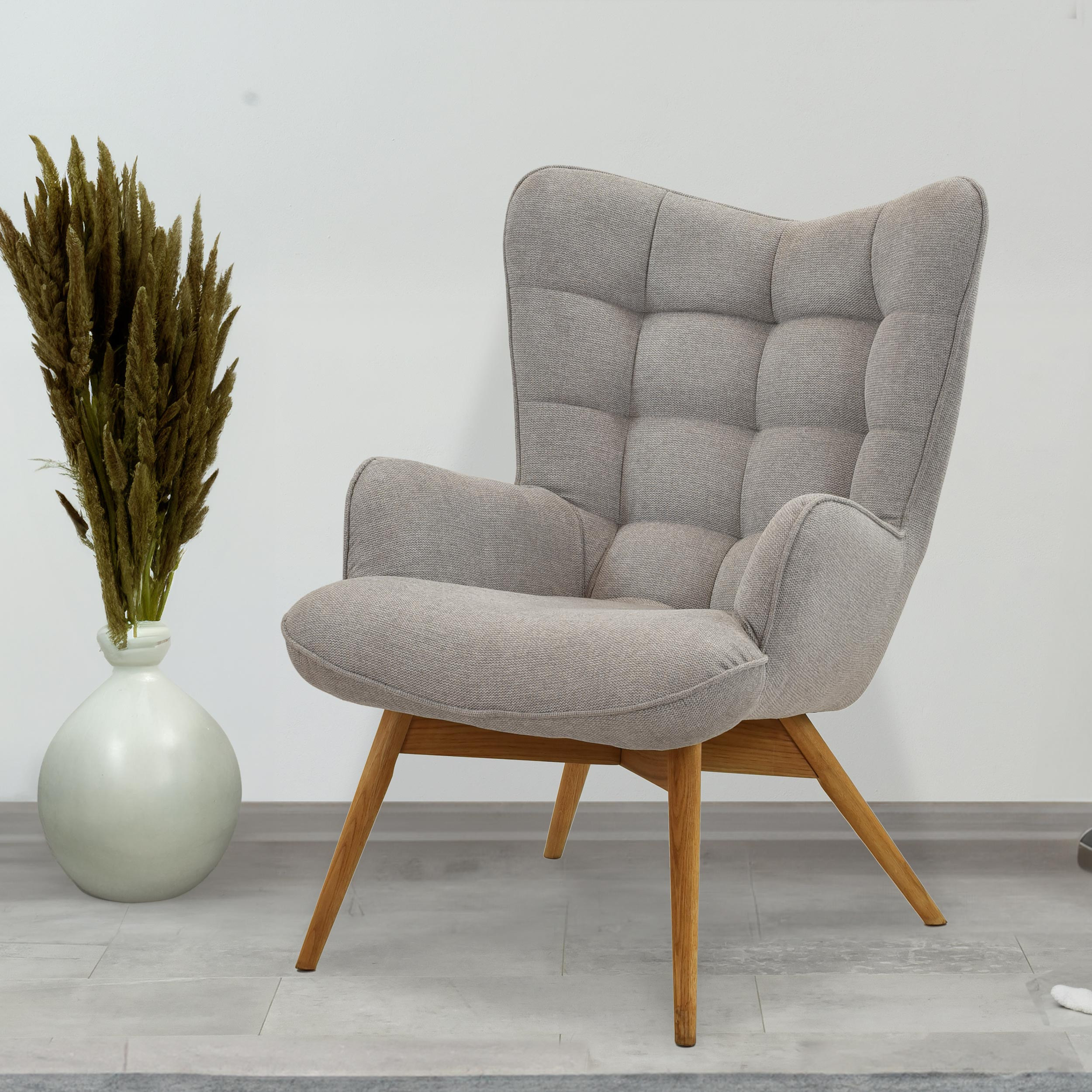 Moderner grauer Polstersessel mit Eichenholzbeinen Wohnzimmer