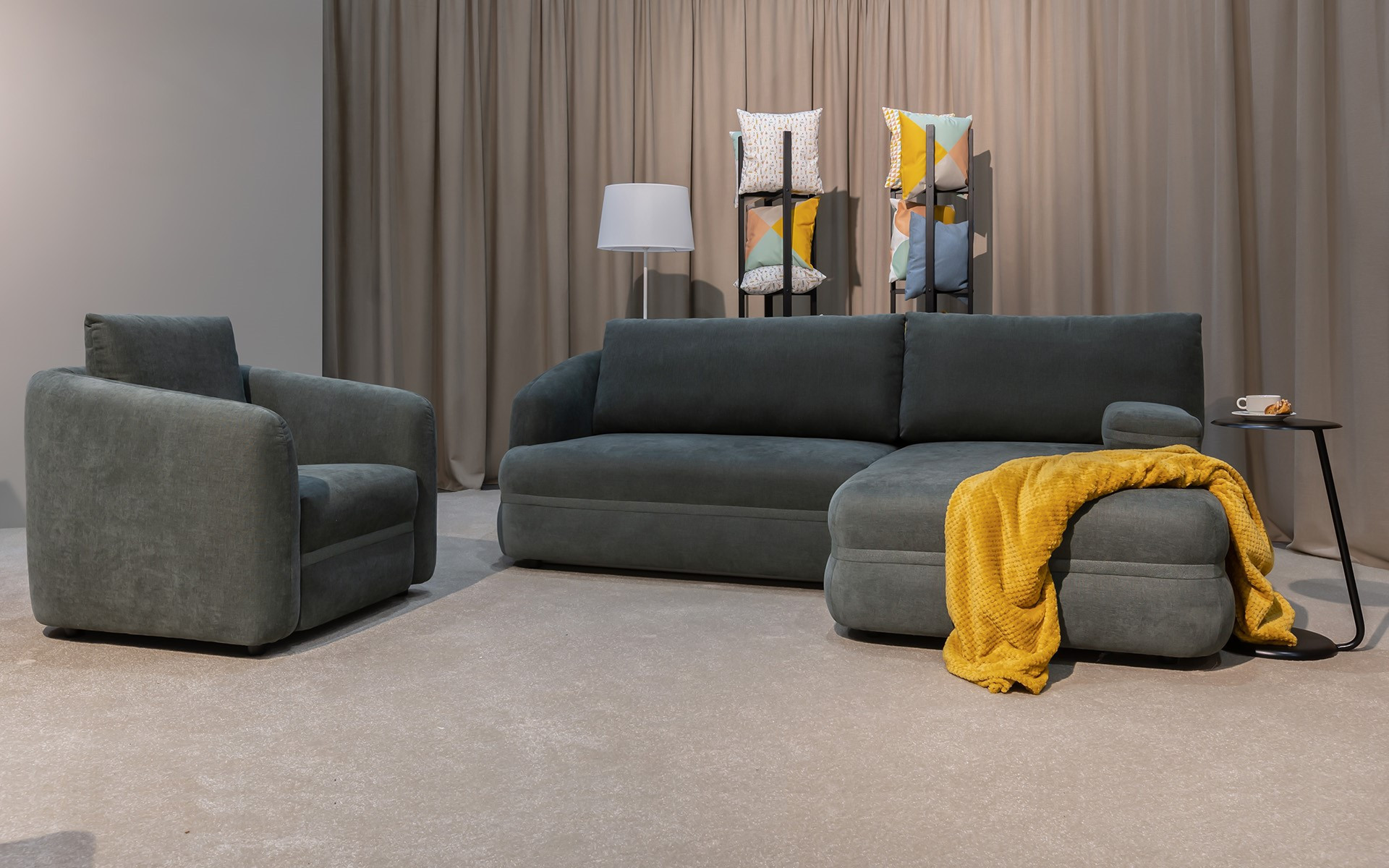 Retro-Sessel, links ist die perfekte Ergänzung für jeden Haushalt, der nach einem stilvollen, bequemen und praktischen Möbelstück sucht. Dieser Sessel besticht durch sein Retro-Design mit sanft abgerundeten Formen, die dem Interieur Eleganz und Gemütlichkeit verleihen. Hochwertige Polsterung aus weichem Stoff ist nicht nur bequem, sondern auch langlebig und pflegeleicht. Dank seiner kompakten Maße ist dieser Sessel ideal für kleinere Räume, ohne Komfort und Ästhetik zu verlieren.