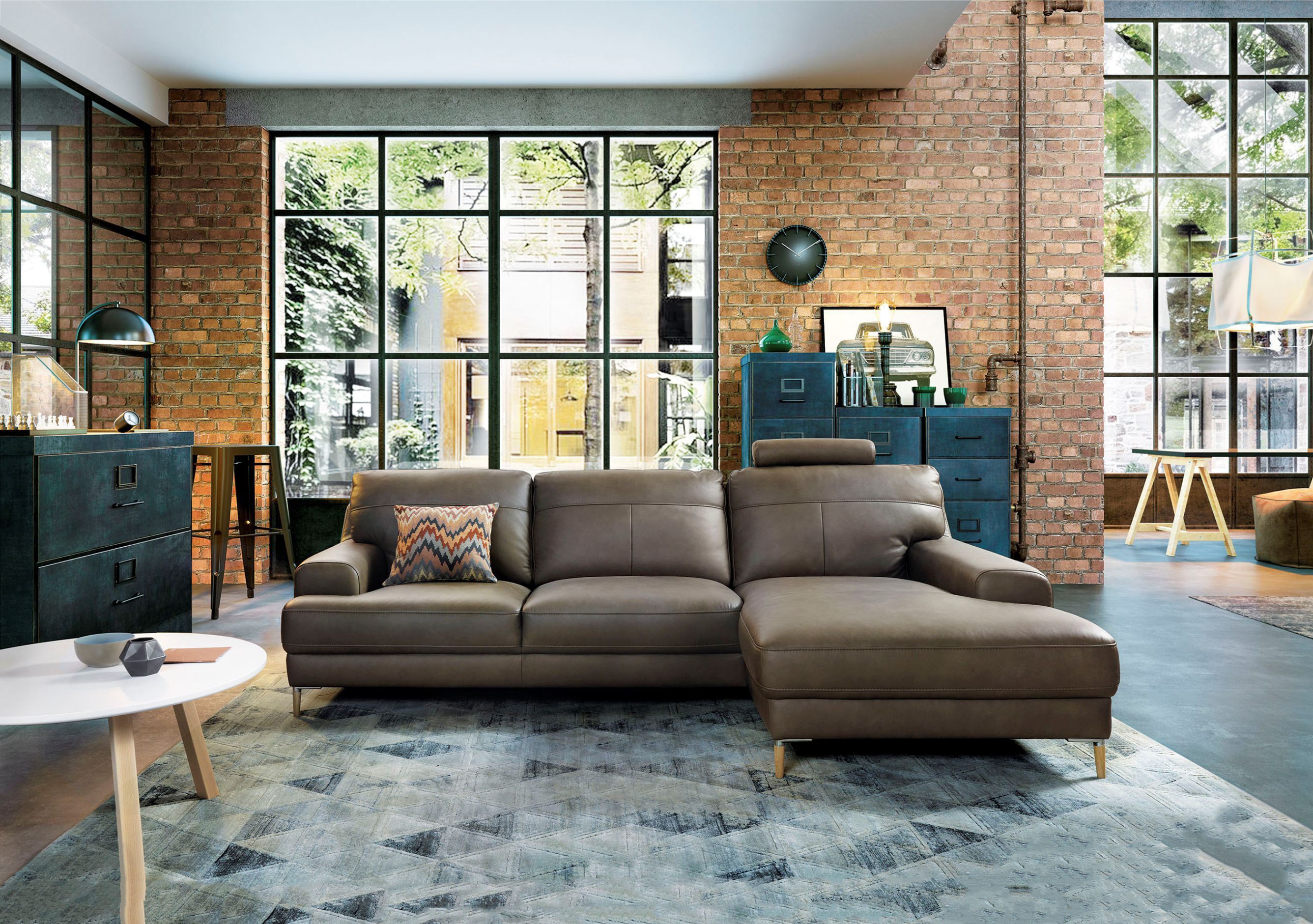 Moderne Sitzgruppe Monday Leder Sofa mit Holz- oder