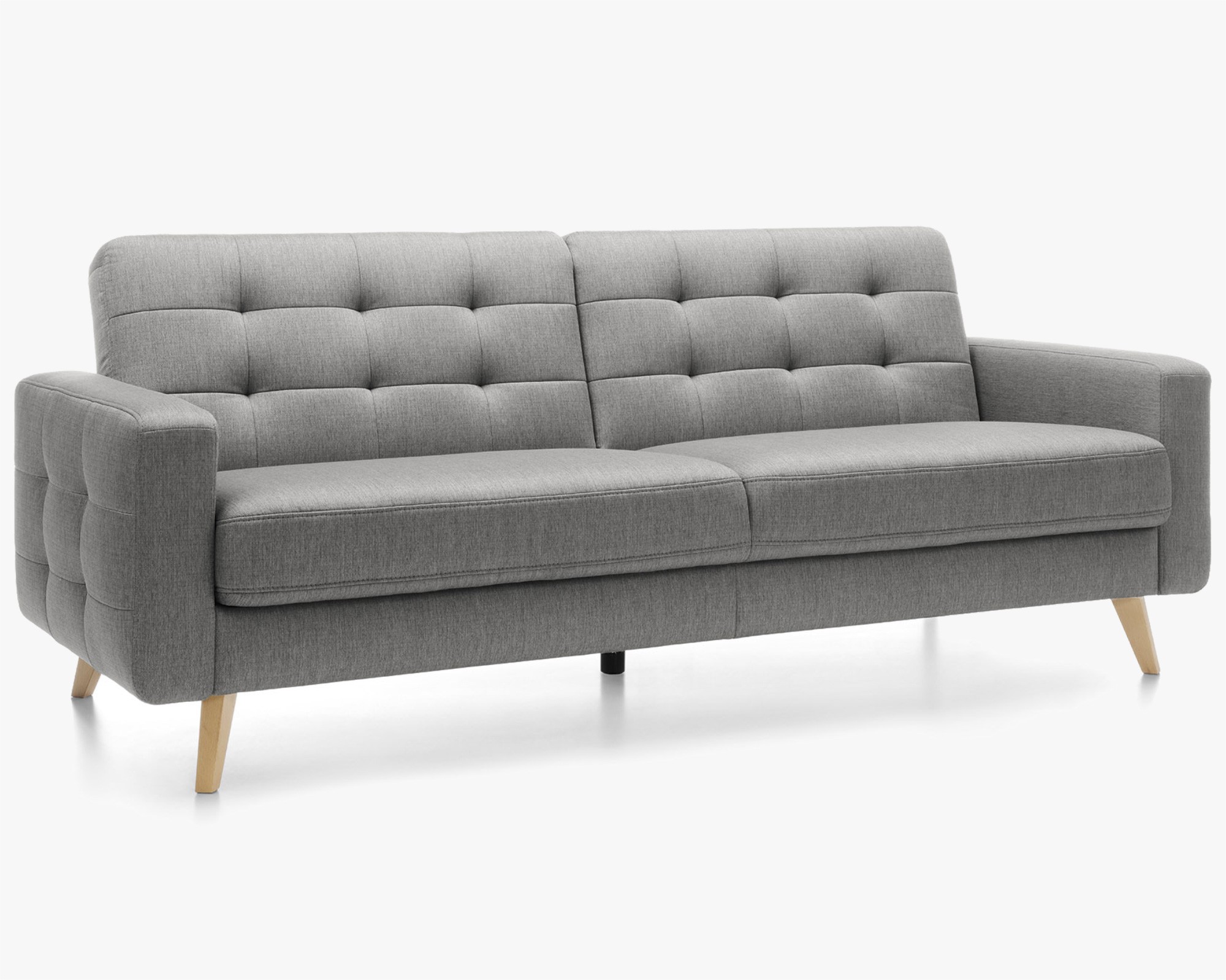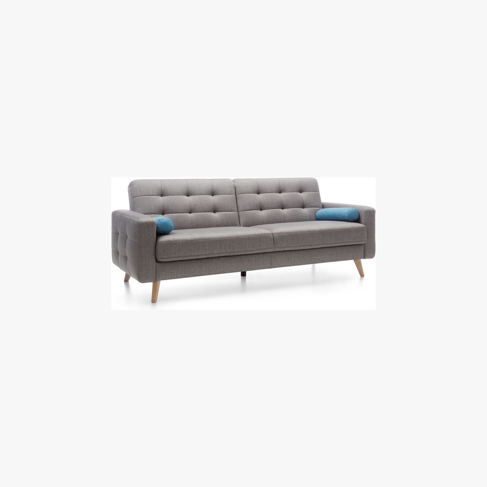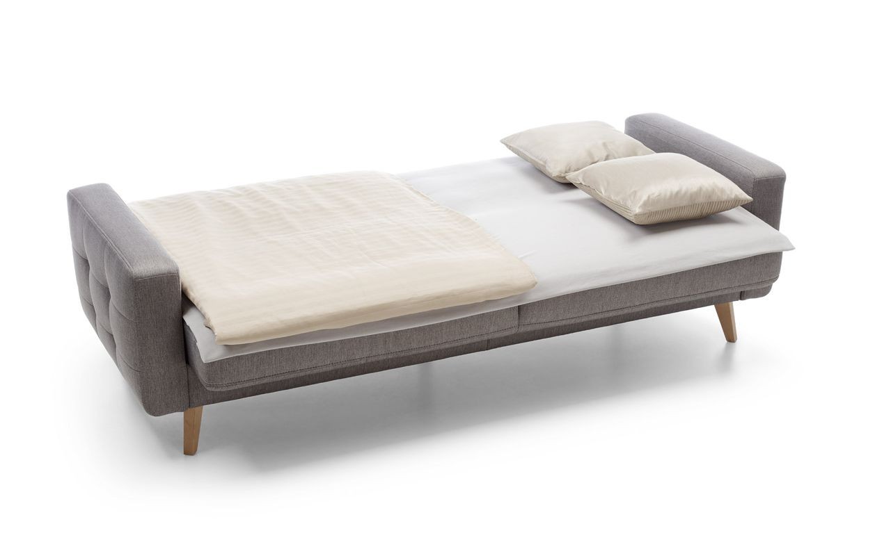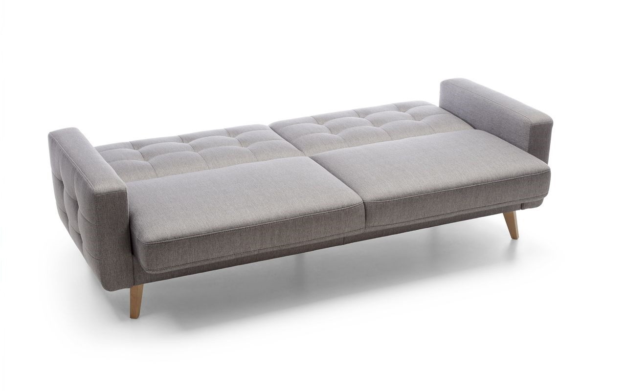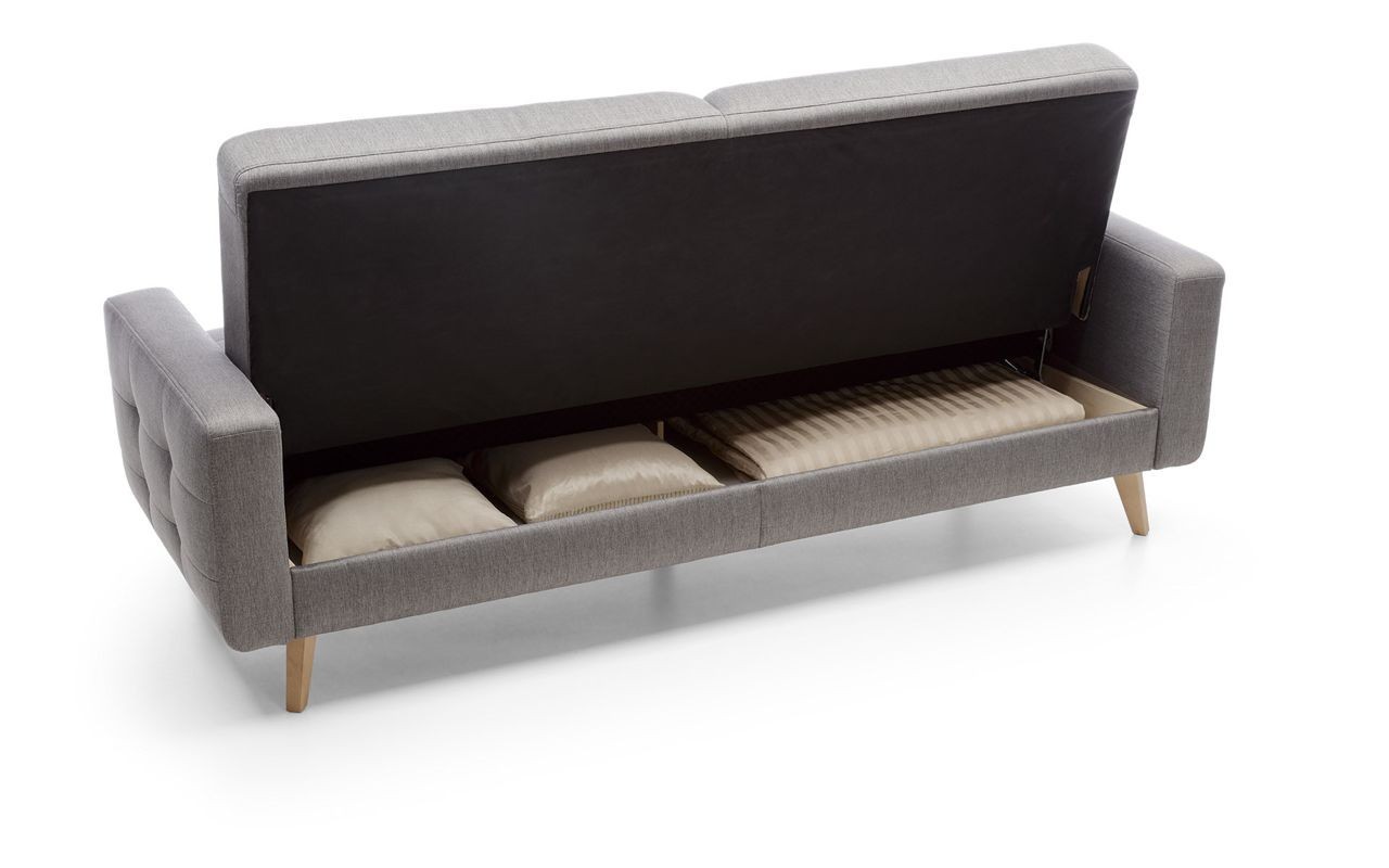 Dreisitzersofa mit Schlafunktion und Stauraum Nappa, geeignet für kleinere Räume mit Stoffauswahlmöglichkeit. Das Sofa hat ein modernes skandinavisches Design, kompakte Maße und eine enorme Vielseitigkeit. Das Sofa Nappa verfügt über eine Schlaf- und Stauraumfunktion. So holen Sie das Maximum aus dem Sofa heraus. Die Schlaffläche beträgt 115 x 190 cm. Das Sofa bietet ein außergewöhnlich bequemes Sitzgefühl, die Polsterung besteht aus hochwertigem Memory-Schaum. Das Ecksofa Nappa beeindruckt sofort mit seinem attraktiven Aussehen. Hohe Holzfüße verleihen dem Sofa Leichtigkeit und die wunderschöne Naht erinnert an den skandinavischen Wohnstil. Das Sofa ist auch als Ecksofa oder Sessel erhältlich. Für das Sofa wird ein hochwertiger Stoff der Marke Power verwendet, der außergewöhnlich angenehmen Griff hat und zudem die maxiClean-Technologie nutzt, sodass die meisten Flüssigkeiten auf der Oberfläche des Sofas bleiben. Der Stoff hat eine sehr hohe Abriebfestigkeit von bis zu 100.000 Zyklen.