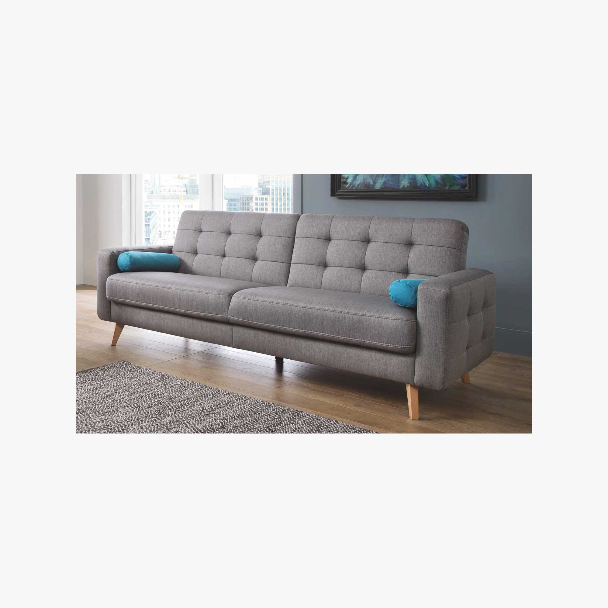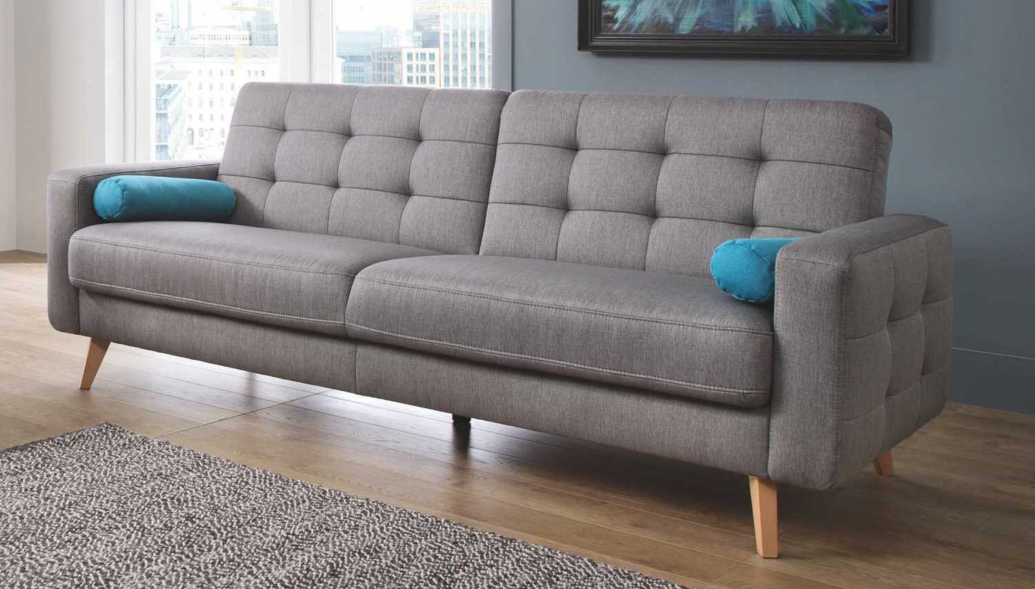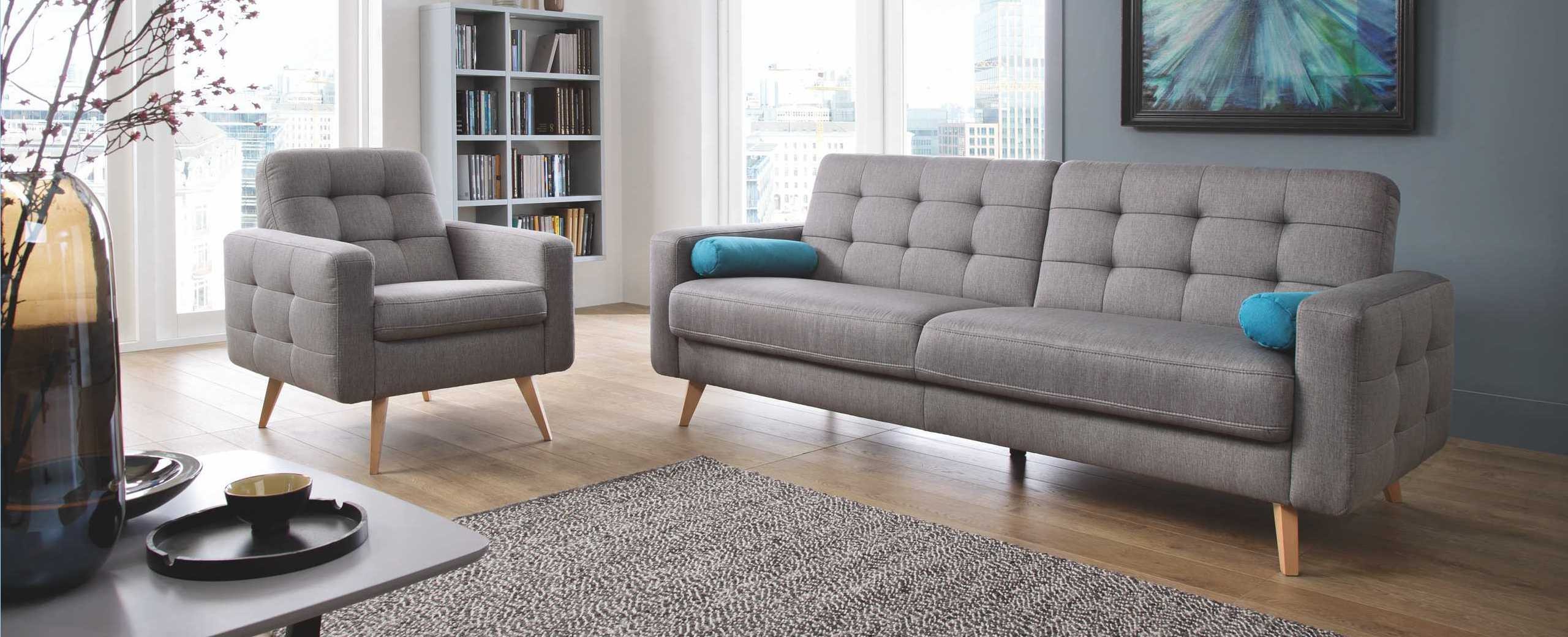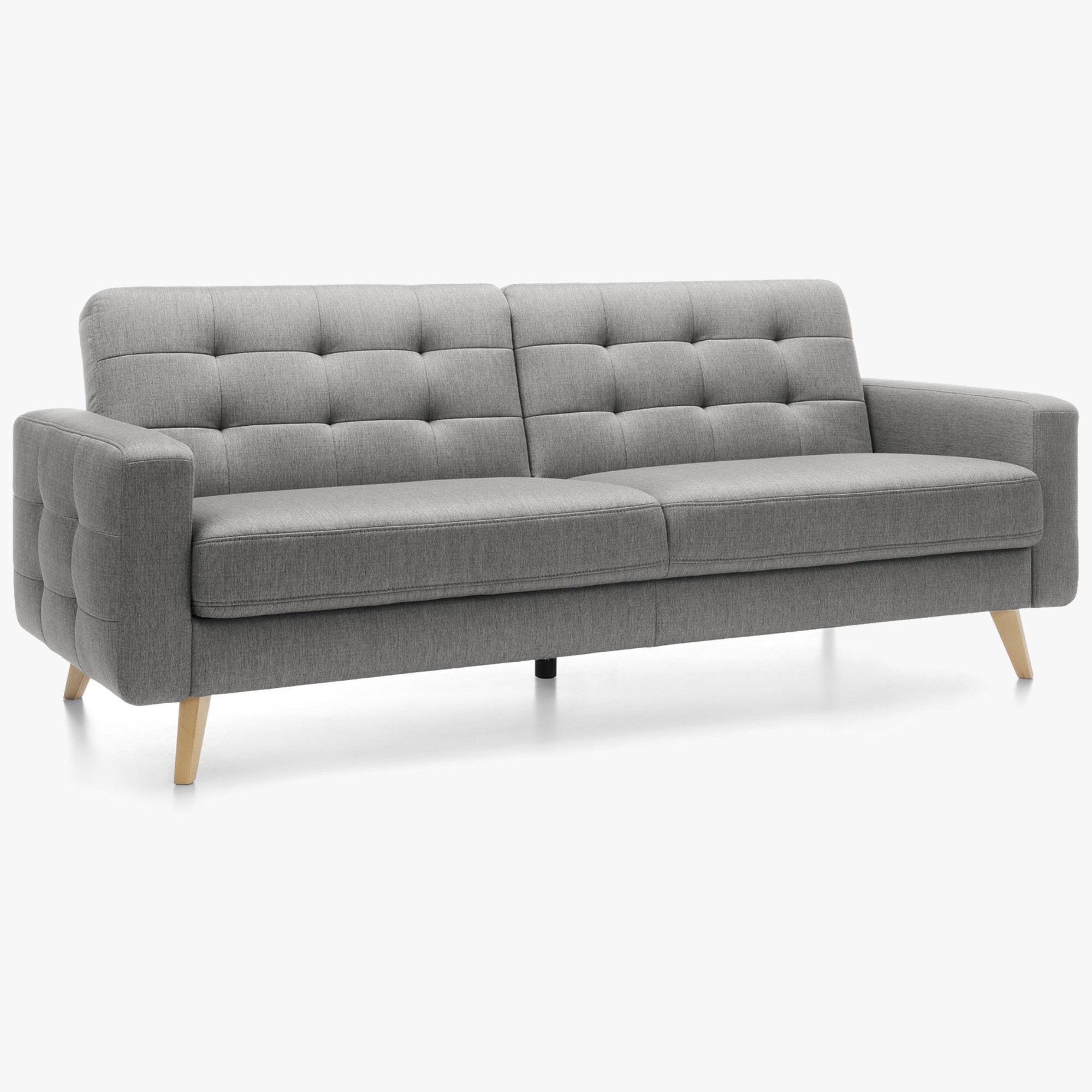 Dreisitzersofa mit Schlafunktion und Stauraum Nappa, geeignet für kleinere Räume mit Stoffauswahlmöglichkeit. Das Sofa hat ein modernes skandinavisches Design, kompakte Maße und eine enorme Vielseitigkeit. Das Sofa Nappa verfügt über eine Schlaf- und Stauraumfunktion. So holen Sie das Maximum aus dem Sofa heraus. Die Schlaffläche beträgt 115 x 190 cm. Das Sofa bietet ein außergewöhnlich bequemes Sitzgefühl, die Polsterung besteht aus hochwertigem Memory-Schaum. Das Ecksofa Nappa beeindruckt sofort mit seinem attraktiven Aussehen. Hohe Holzfüße verleihen dem Sofa Leichtigkeit und die wunderschöne Naht erinnert an den skandinavischen Wohnstil. Das Sofa ist auch als Ecksofa oder Sessel erhältlich. Für das Sofa wird ein hochwertiger Stoff der Marke Power verwendet, der außergewöhnlich angenehmen Griff hat und zudem die maxiClean-Technologie nutzt, sodass die meisten Flüssigkeiten auf der Oberfläche des Sofas bleiben. Der Stoff hat eine sehr hohe Abriebfestigkeit von bis zu 100.000 Zyklen.