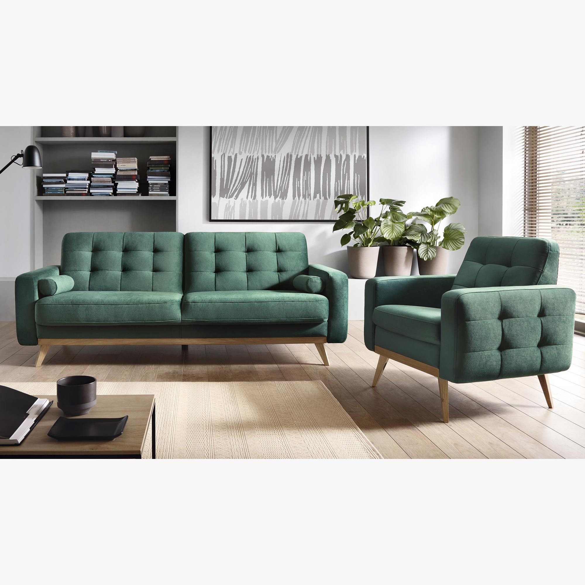 Sofa mit Schlaffunktion - Dreisitzer und Sessel