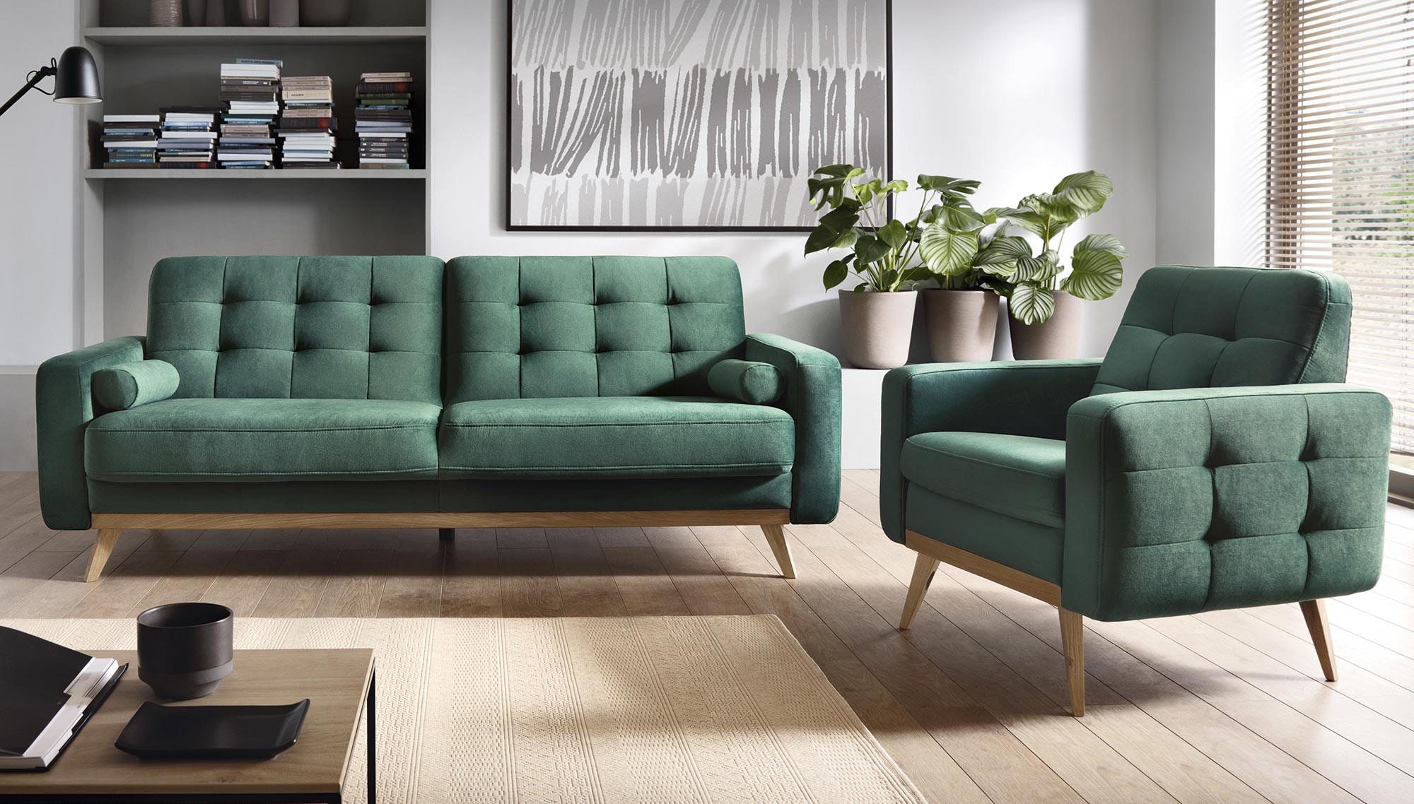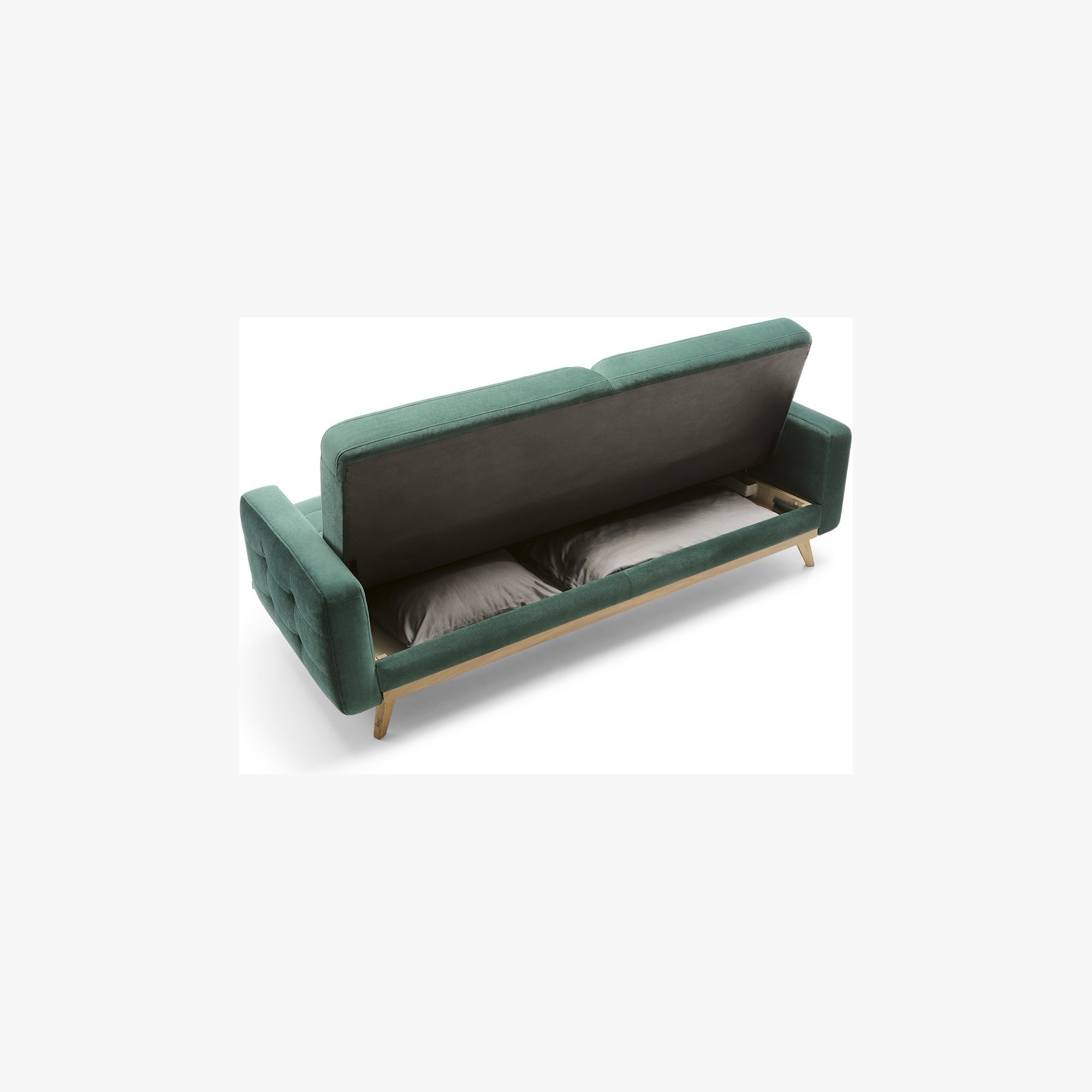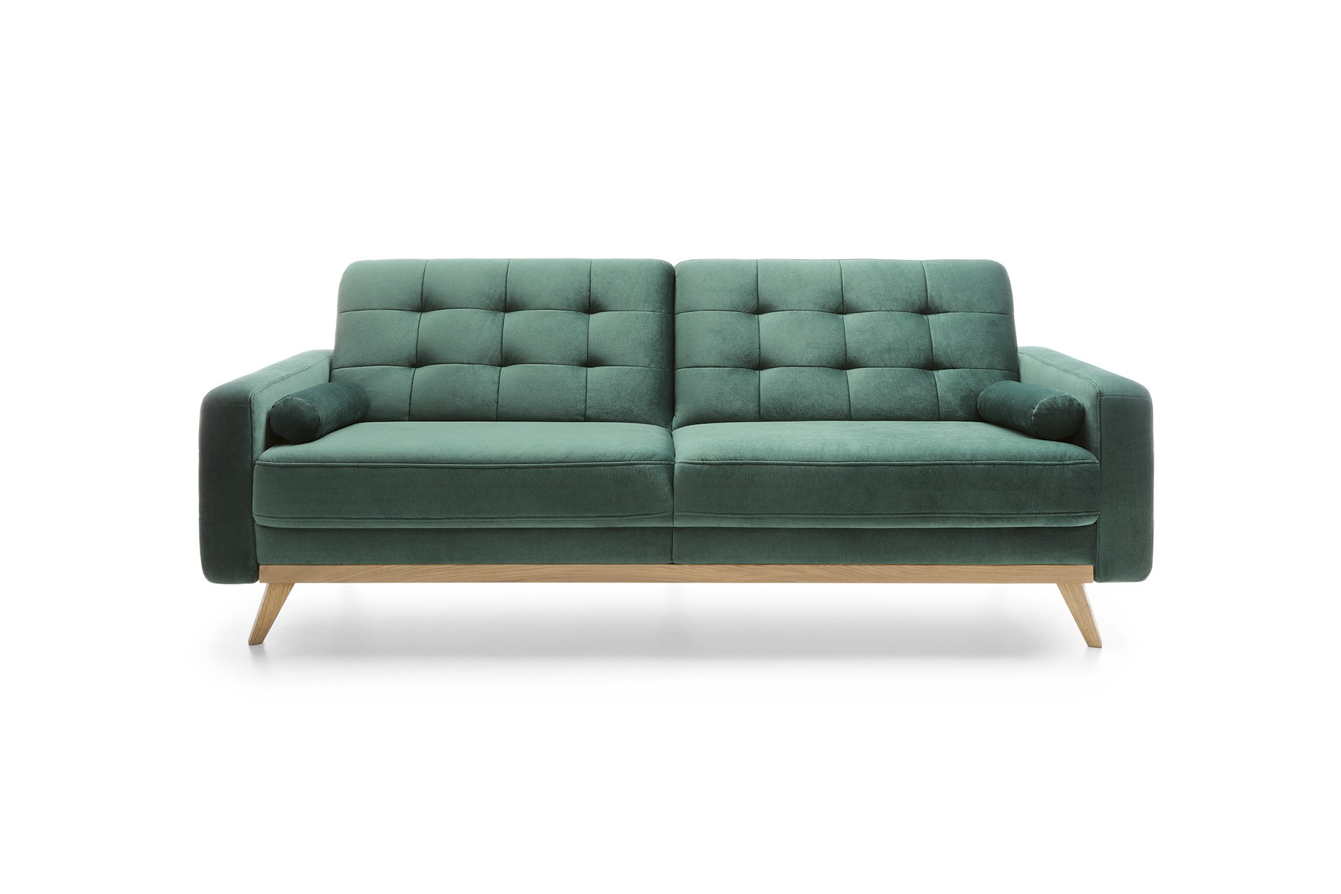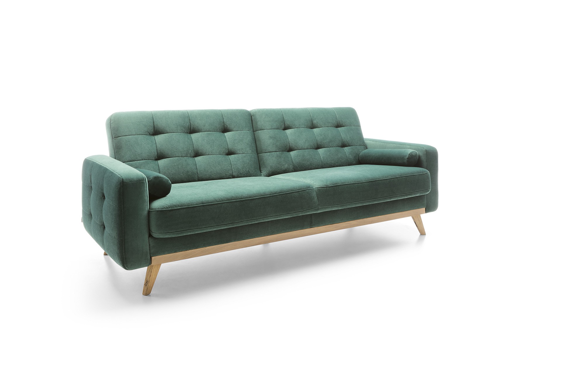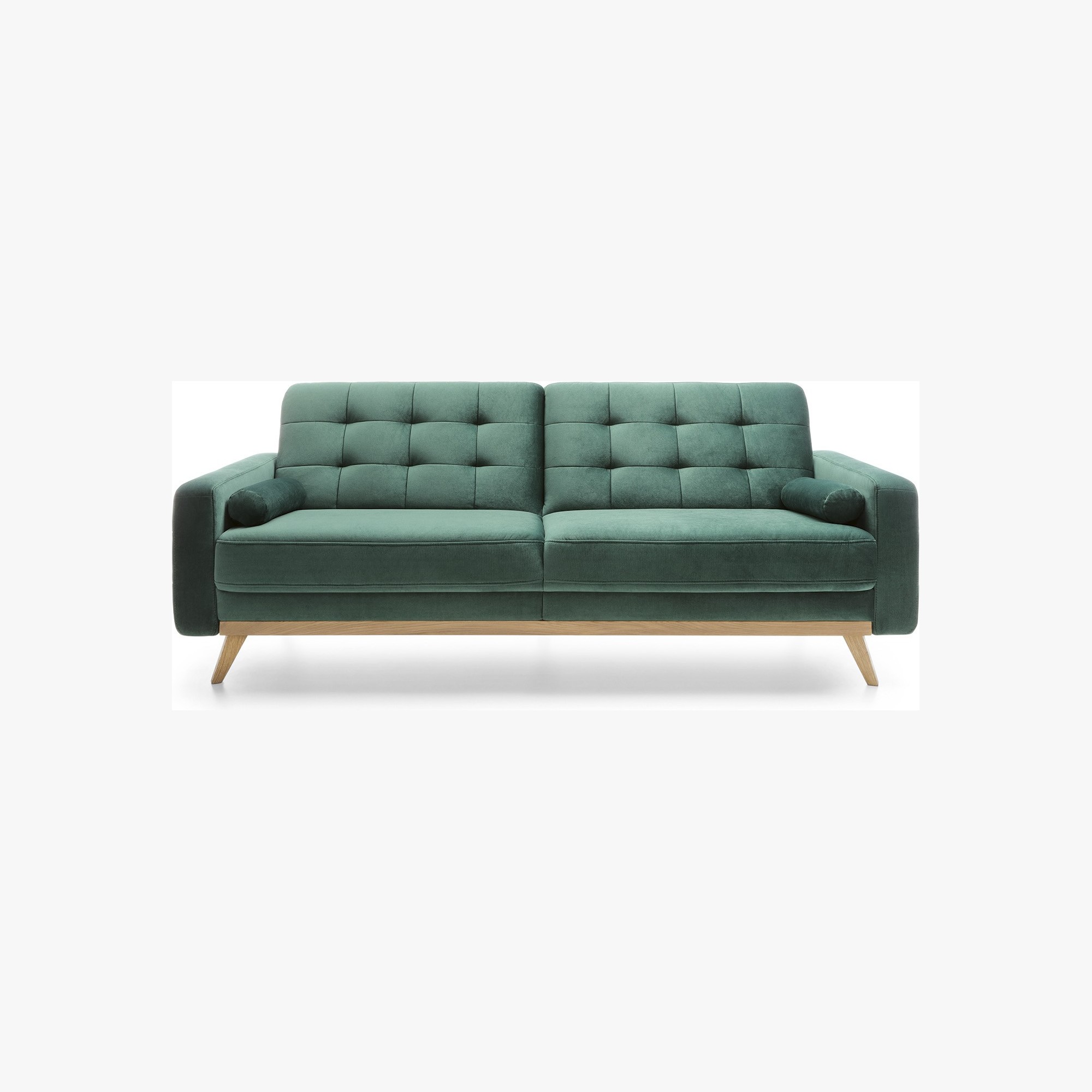 Elegantes Sofa Nova , mit der Möglichkeit zur Bettumwandlung. Das Sofa ist für kleinere moderne Wohnungen konzipiert und in einem wundervollen Design gefertigt, das sicherlich auch in Ihre Wohnung passt. Das wunderschöne, leicht retro Design des Sofas Nova, das mit markanten Füßen aus naturgeölter Eiche kombiniert ist, ist als Dreisitzer und Sessel erhältlich. Ein Bonus ist auch der Stauraum. Sie können zwischen 2 Stoffarten wählen. Der Stoff Power ist mit dem Label Maxiclean ausgestattet, das sehr abriebfest ist und einfach zu reinigen, oder Markenstoffe AQUA Clean. Für maximalen Komfort sorgt die Füllung aus Kaltschaum und die außergewöhnlich hohe Qualität bei der Herstellung. Bitte bestätigen Sie die Stoffwahl in der Bestellnotiz.