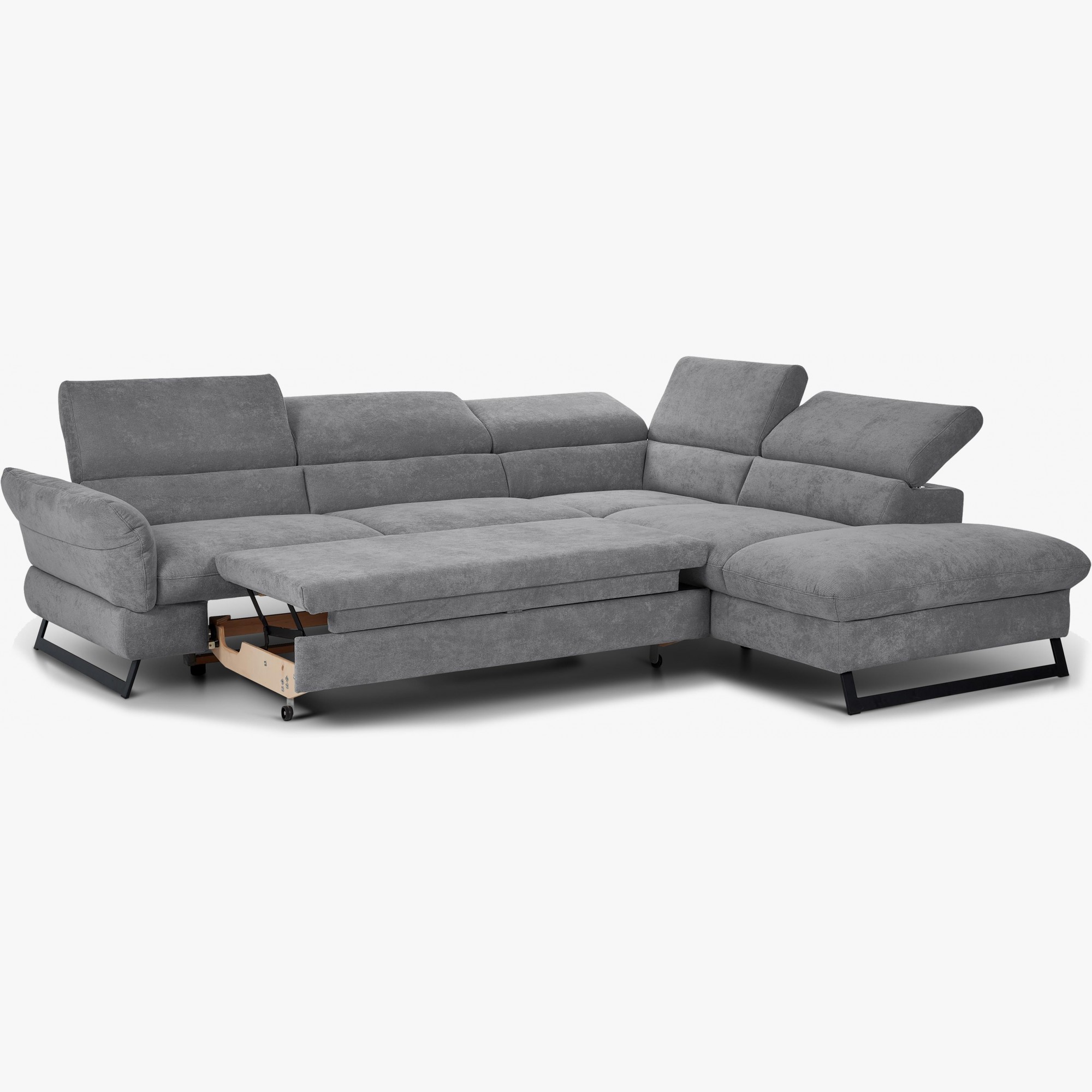 Ecksofa mit Schlaffunktion, grau auf Füßen - haiti