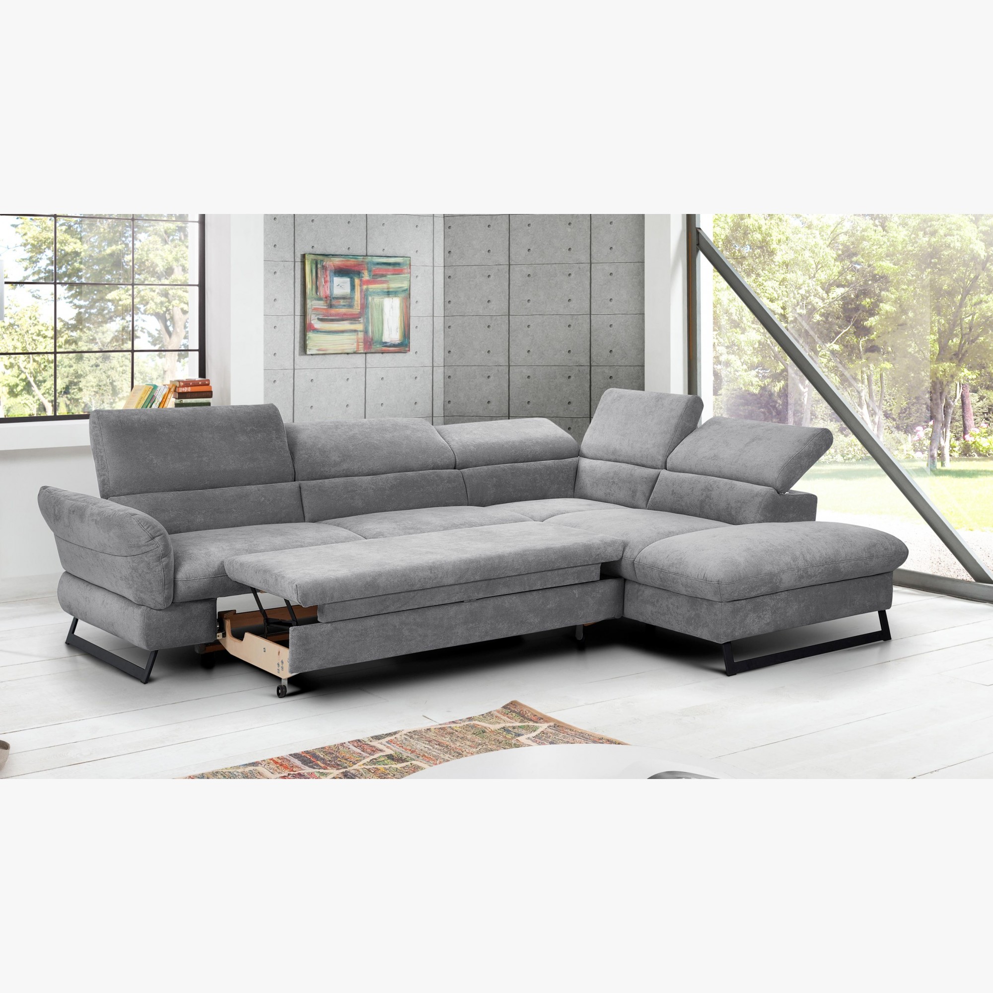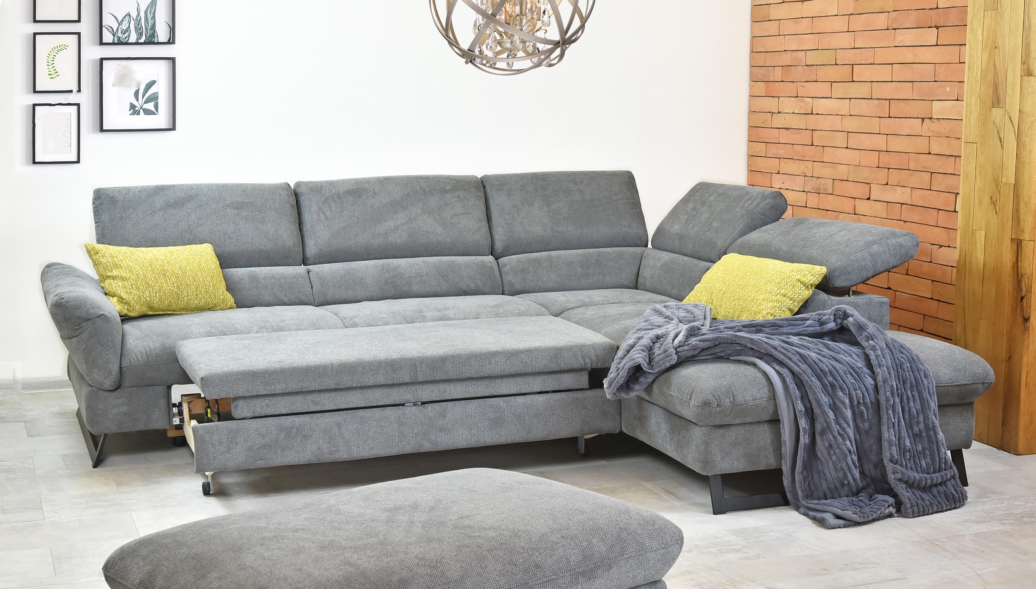 Ecksofa mit Schlaffunktion Stoff grau Metallfüße modern
