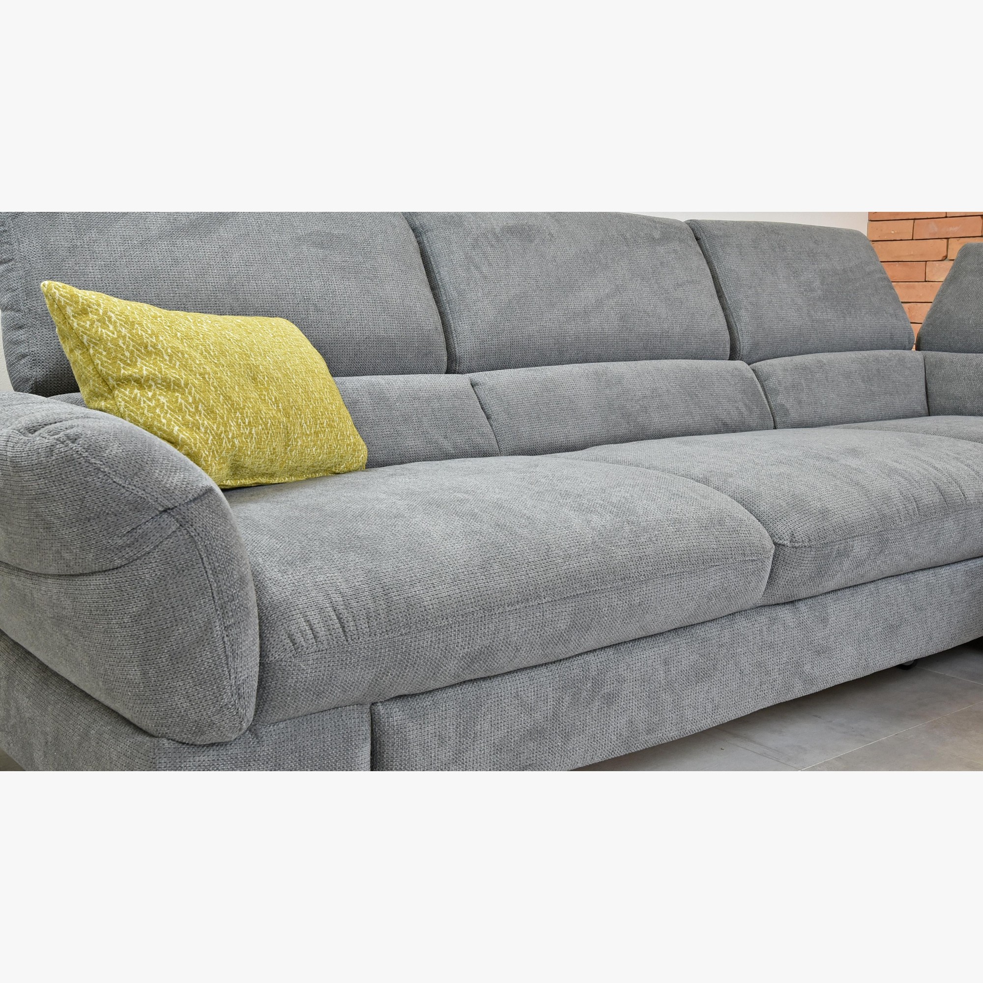 Modernes Sofa aus besonders hochwertigem Stoff, angenehm im Griff.. Das Sofa Haiti ist als Zweisitzer, Dreisitzer sowie als Ecksofa erhältlich. Das Sofa ist außerordentlich bequem und besteht ausschließlich aus hochwertigen natürlichen Materialien. Das Design des Sofas ist ideal für ein modernes Interieur, auch dank der Metallfüße in mattschwarzer Farbe. Ein Vorteil des Sofas sind die sehr einfach verstellbaren Armlehnen, sodass Sie sicher die richtige Position finden. Das Sofa hat eine tiefe Sitzfläche, die bei Besuch auch als Schlafgelegenheit genutzt werden kann. Das Sofa ist aus hochwertigem Boston-Stoff in grauer Farbe hergestellt. Der Stoff ist weich im Griff und somit bei jedem Sitzen sehr angenehm. Das Sofa nimmt beim Transport wenig Platz ein und passt somit garantiert in jeden Raum. Das Sofa verfügt über eine Schlaffunktion, bei der Sie in nur wenigen Sekunden ein Bett in der Größe 198 x 126 cm für Ihre Gäste erhalten. Der Boston-Stoff hält bis zu 40 000 Zyklen. Preis ohne Kissen und Dekoration.
