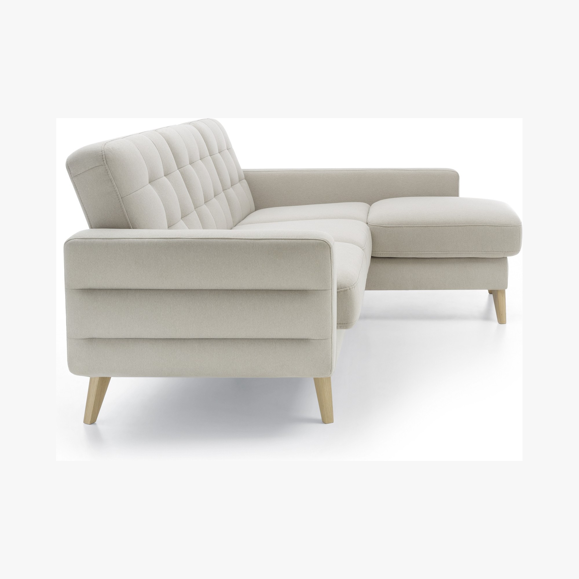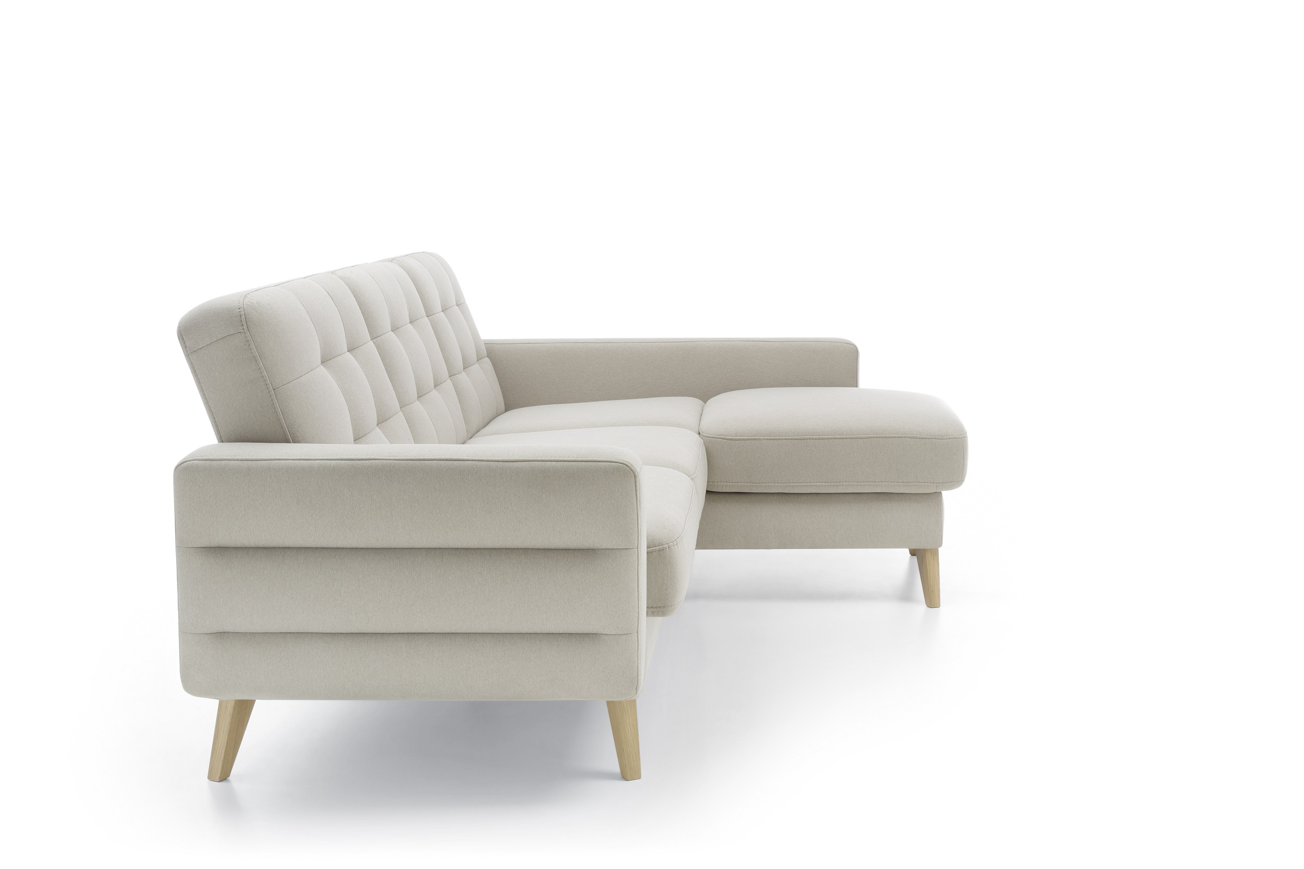 Das Sofa verfügt über ein modernes skandinavisches Design, kompakte Maße und eine enorme Nutzbarkeit. Das Sofa Bodo hat eine Schlaf- und Stauraumfunktion. So holen Sie das Maximum aus dem Sofa heraus. Die Liegefläche beträgt 115 x 190 cm. Das Sofa bietet außergewöhnlichen Sitzkomfort, die Füllung besteht aus hochwertigem Memory-Schaum. Die Eckcouch Bodo beeindruckt sofort mit ihrem attraktiven Aussehen. Hohe Holzfüße verleihen dem Sofa eine luftige Optik und die wunderschöne Naht erinnert an den skandinavischen Wohnstil. Vorteilhaft ist auch der Stauraum in der Ecke des Sofas. Das Sofa ist auch als Couch oder Sessel erhältlich.
