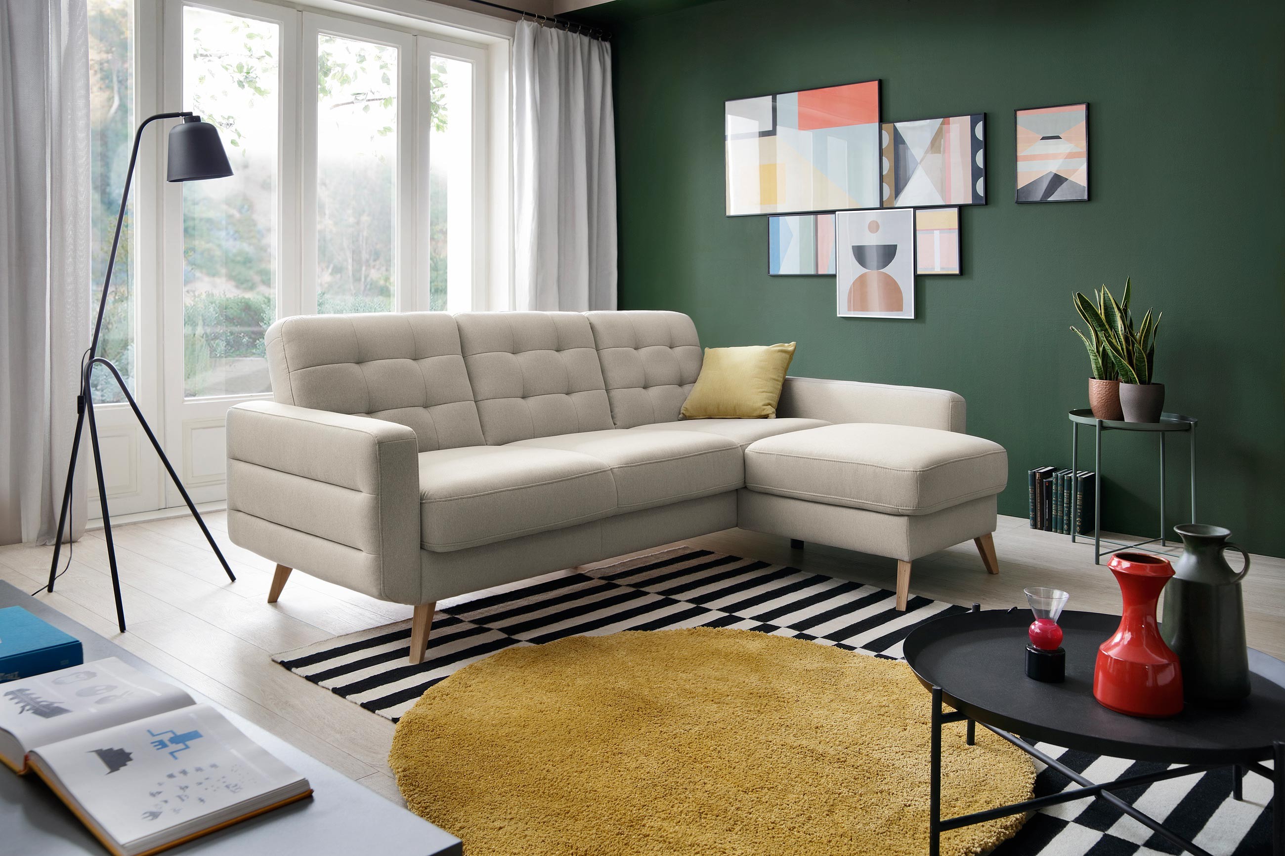 Elegante Eckcouch mit Schlaf- und Stauraumfunktion, Bodo