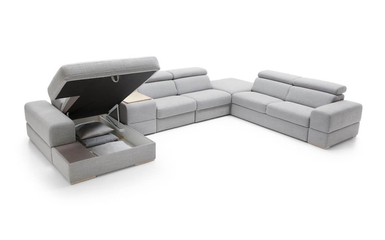 Sie können aus vielen Modulen wählen, von Sessel, Relaxfunktion, Eckelementen, Ottomane mit Schlaffunktion bis hin zur Bar mit Kühlschrank. Die Innenfüllung der Couch besteht aus hochelastischem Schaumstoff, der für hohen Komfort sorgt.
