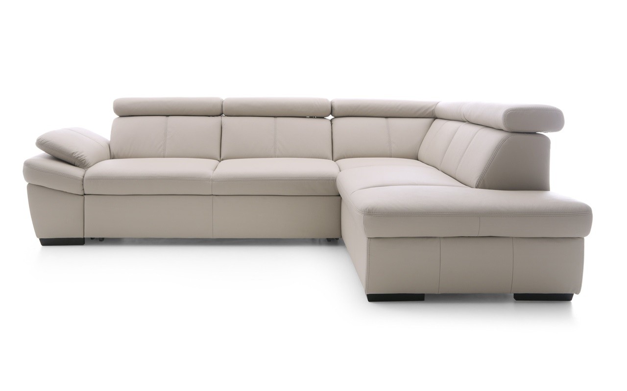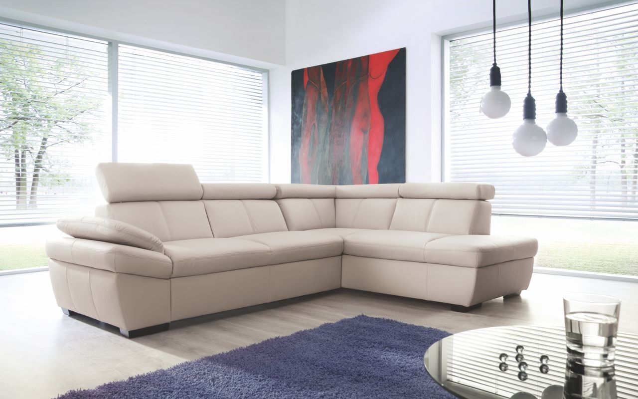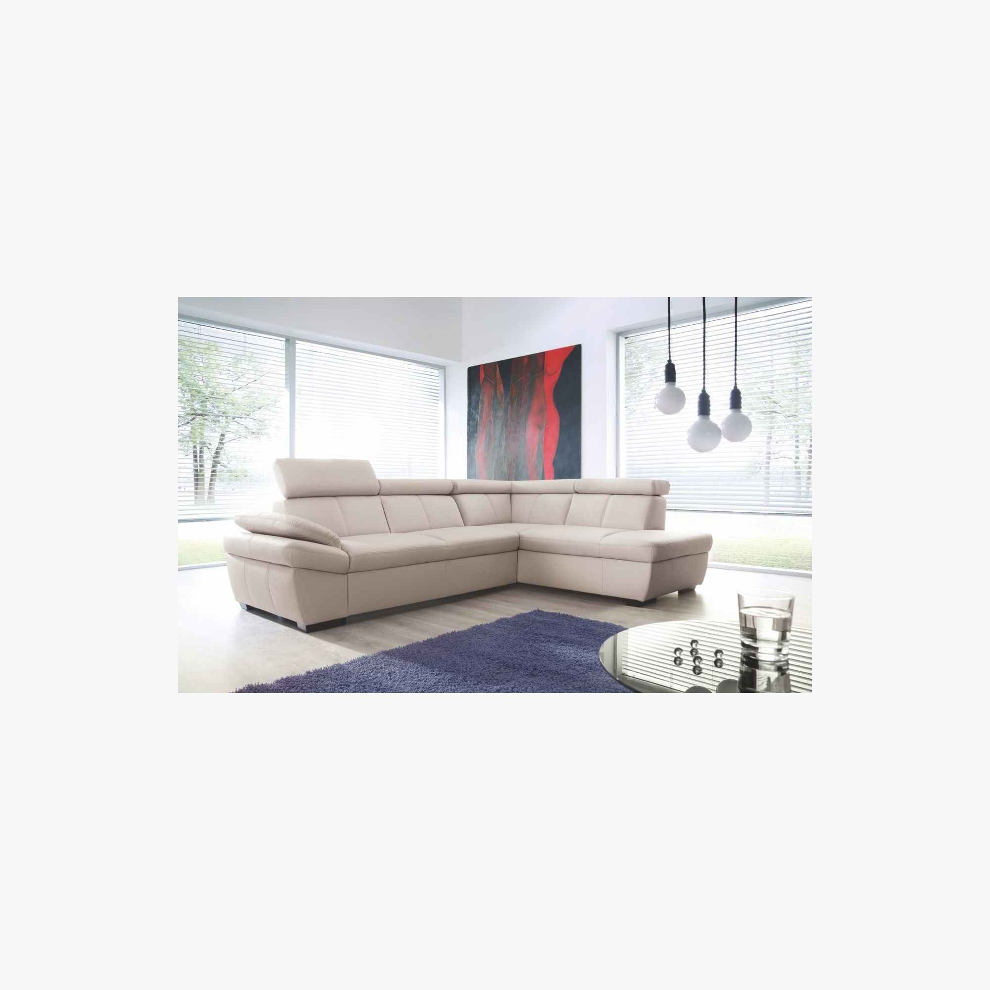 Moderne Eckledercouch SALERNO, hergestellt nur aus den hochwertigsten Materialien, die Couch ist für anspruchsvolle Nutzer bestimmt. Sie können die Couch aus jeder California- oder Madras-Lederart wählen, auf Anfrage ist die Couch auch in Stoff erhältlich. Die Couch bietet die Möglichkeit, die Ecke links oder rechts zu wählen. Die Couch verfügt außerdem über eine Schlaffunktion vom Typ Trolley mit einer Gesamt-Schlaffläche von 138 x 185 cm. Modernes Design und erstklassige Materialien. Die Couch ist mit hochelastischem Schaumstoff gepolstert.