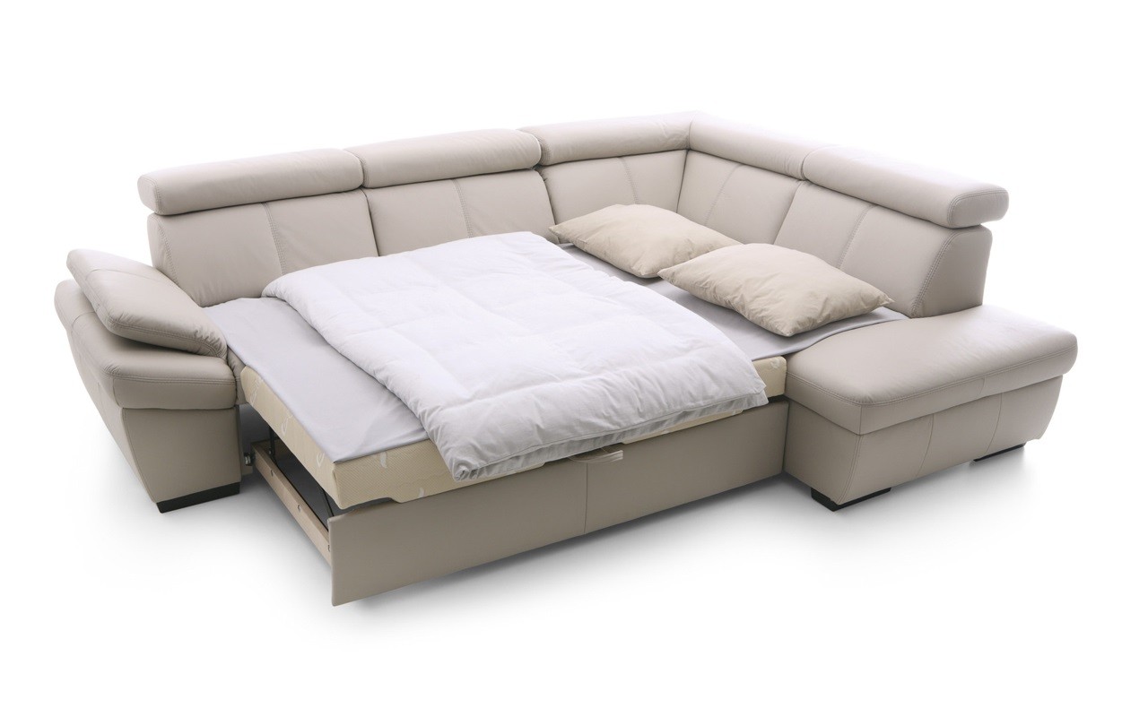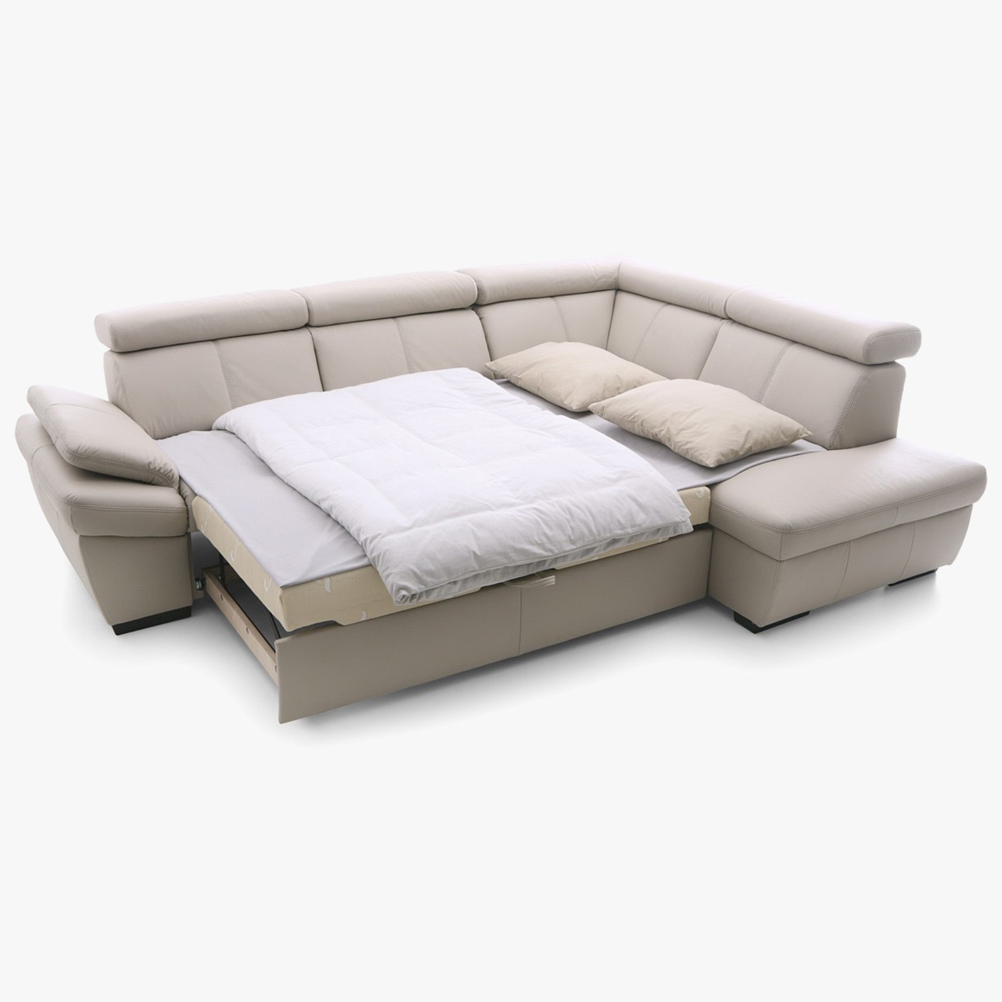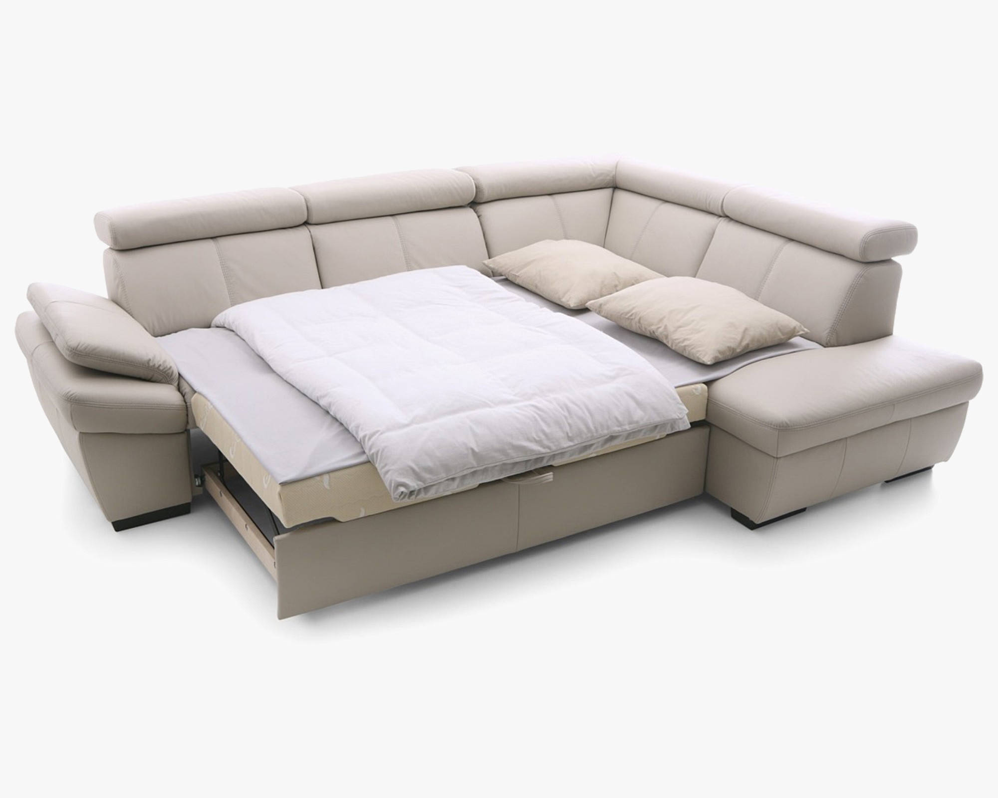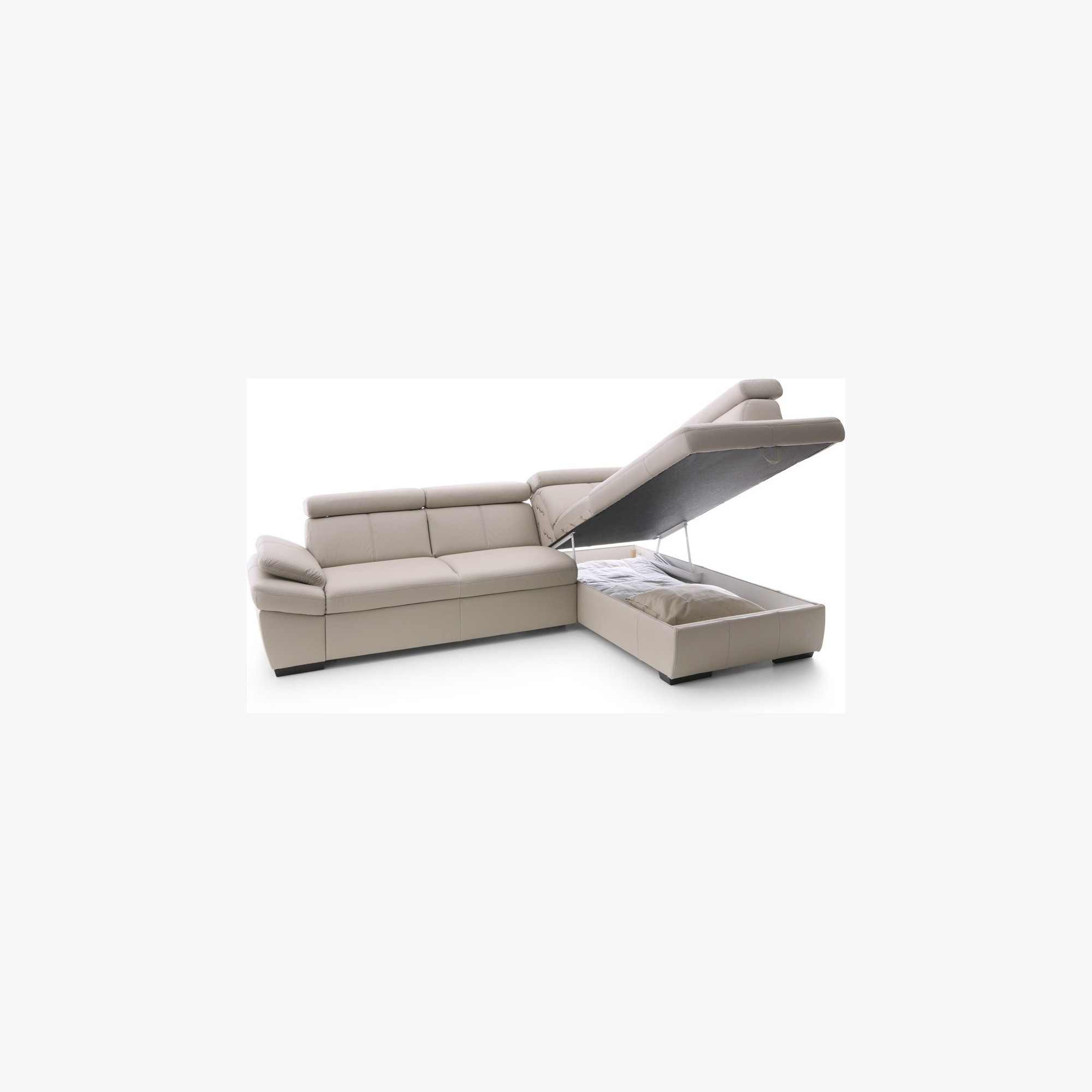 Eckledercouch mit Schlaffunktion und Stauraum, Leder wählbar