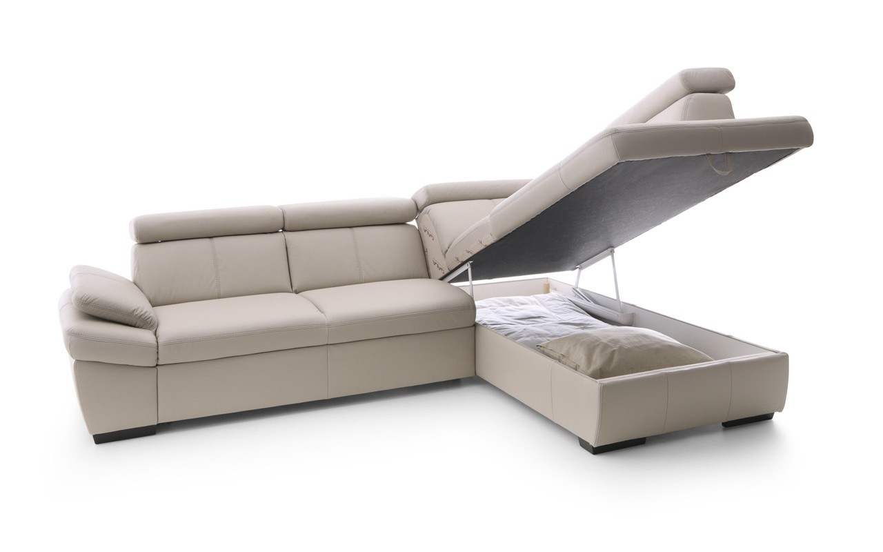 Kožená rohová pohovka s úložným priestorom a funkciou spania - SALERNO