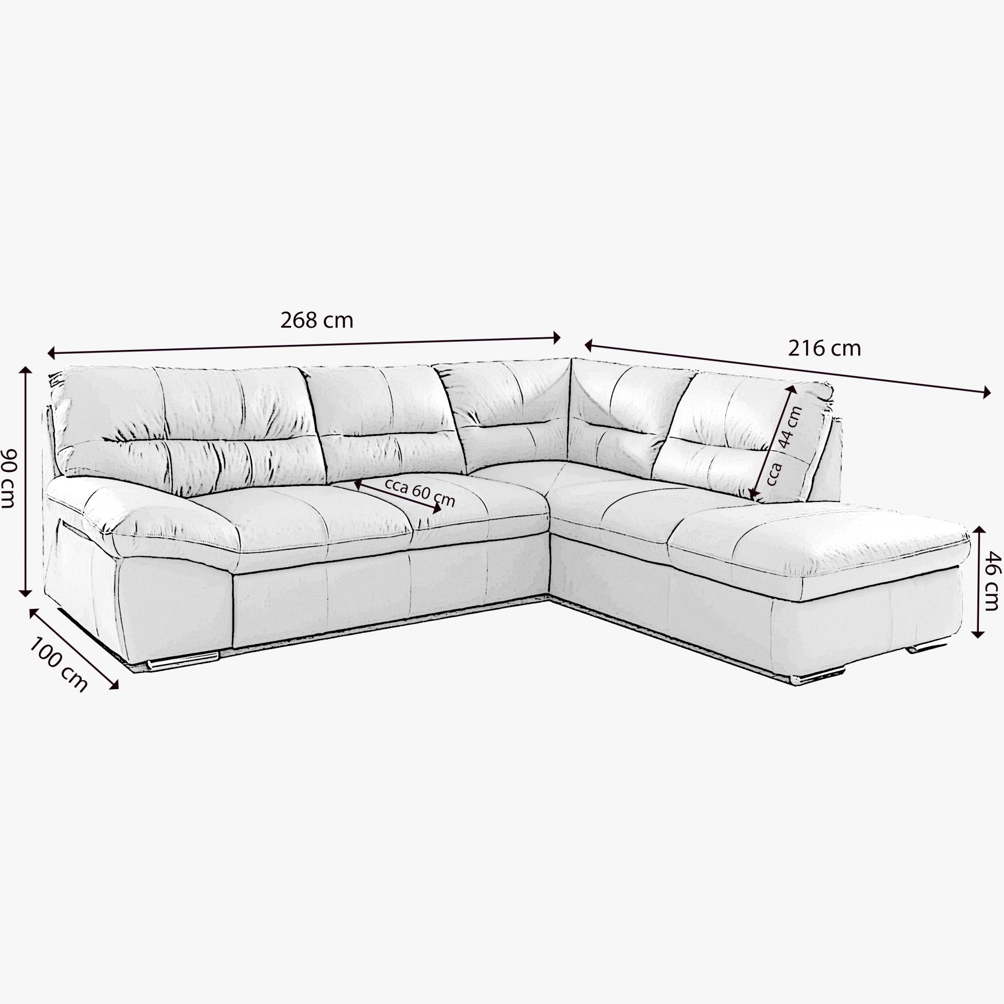 Gesamtbreite des Sofas 268 cm