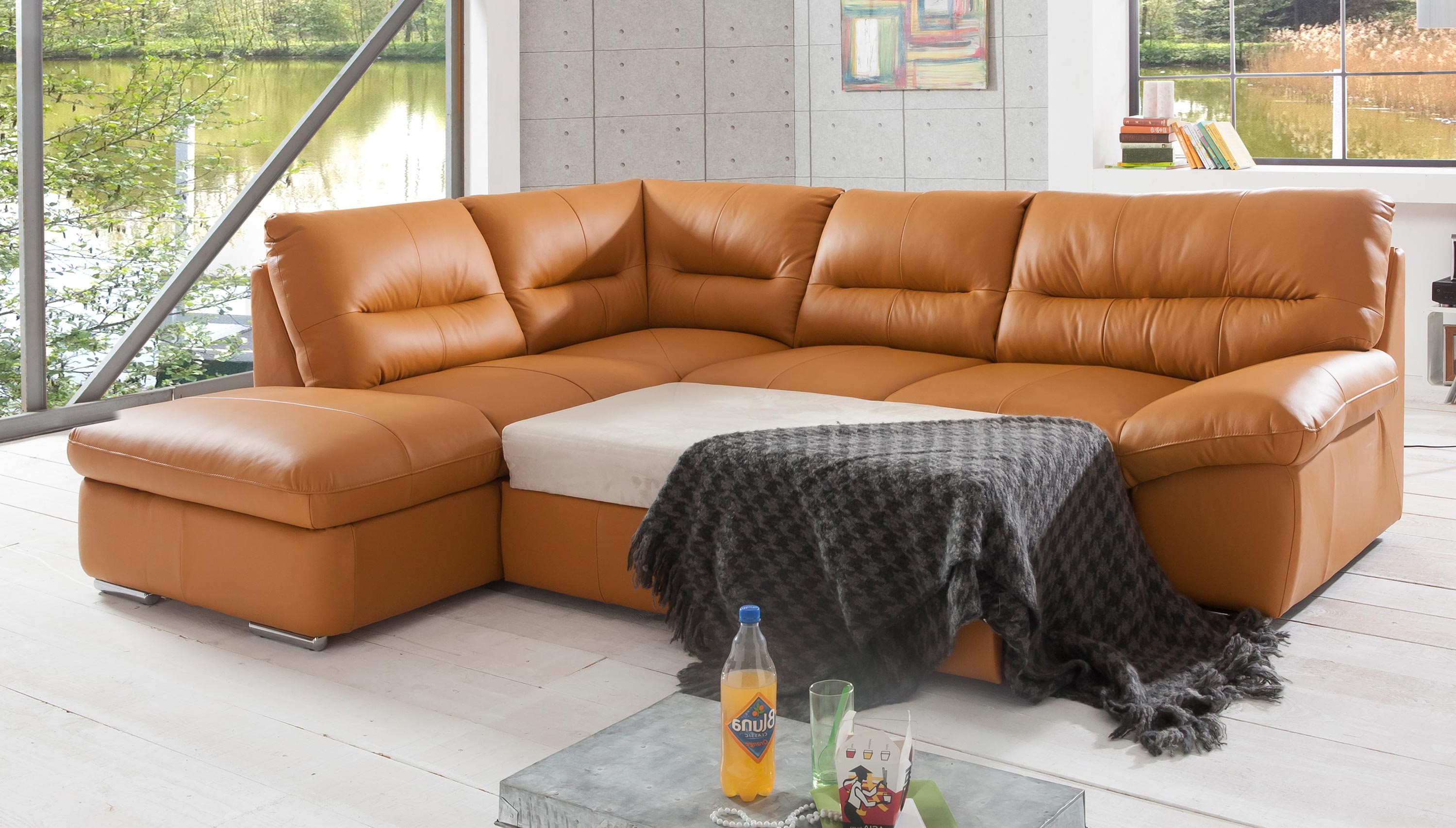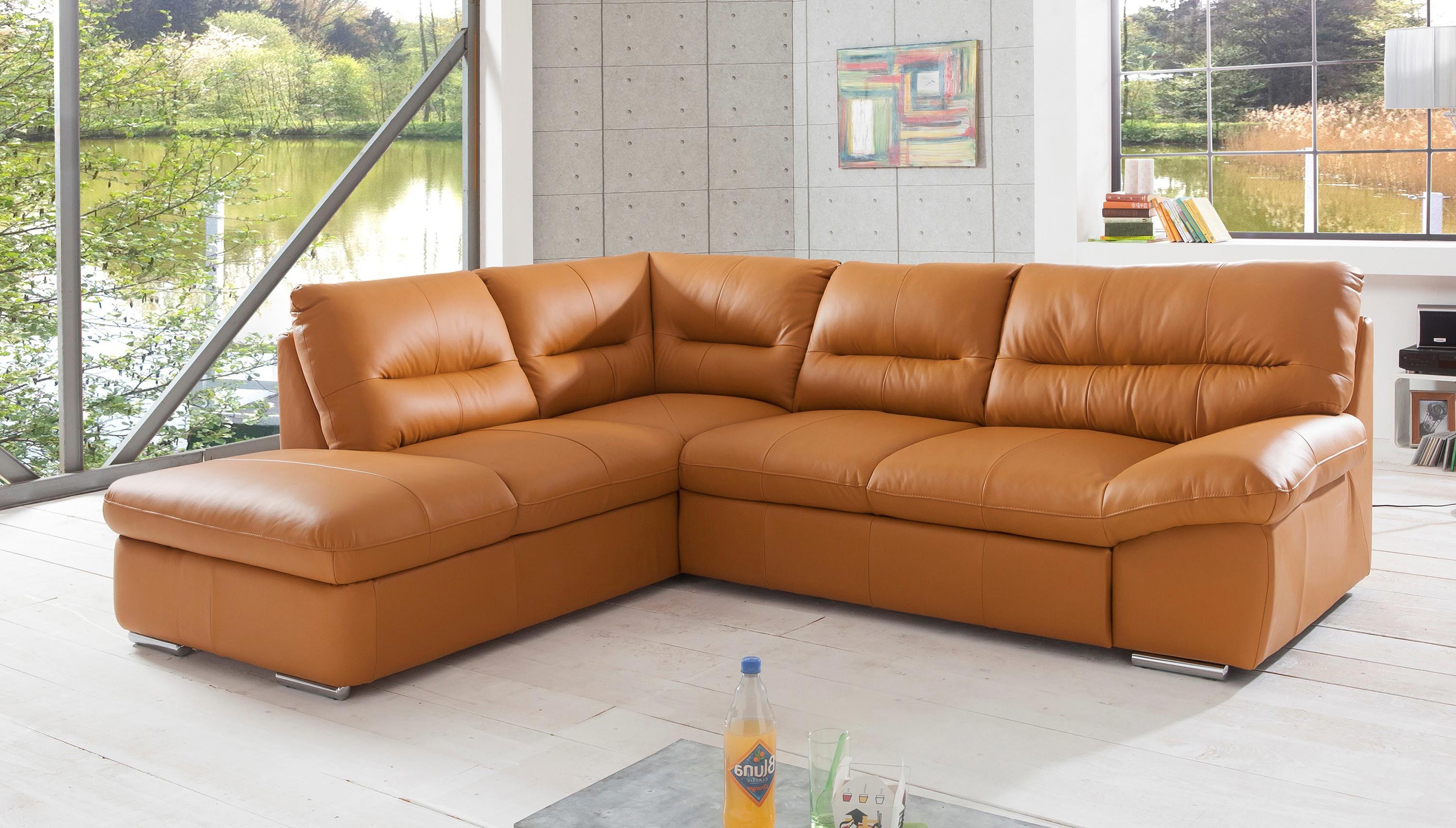 Eck-Sitzgarnitur William aus echtem Leder Amber mit Schlaf-