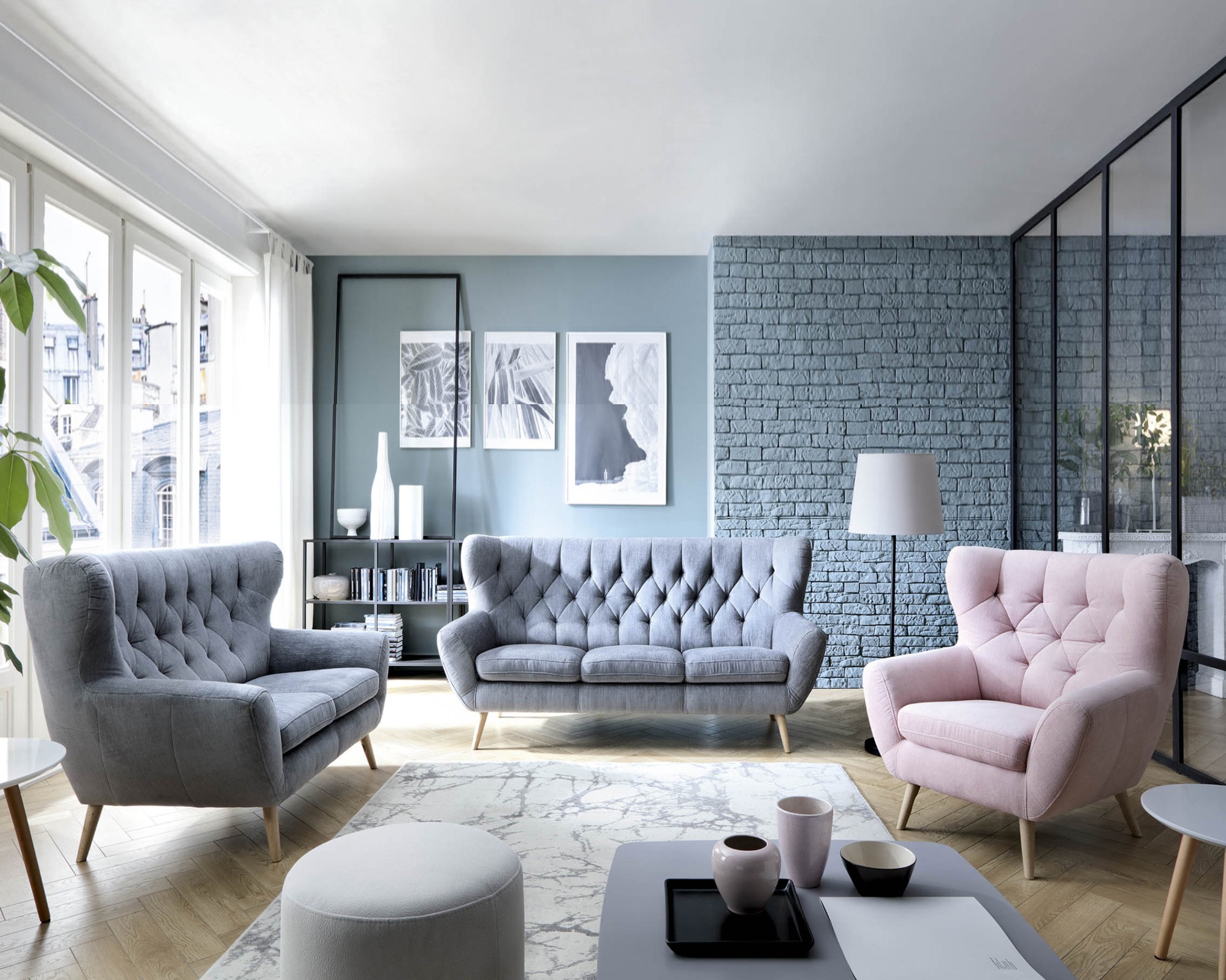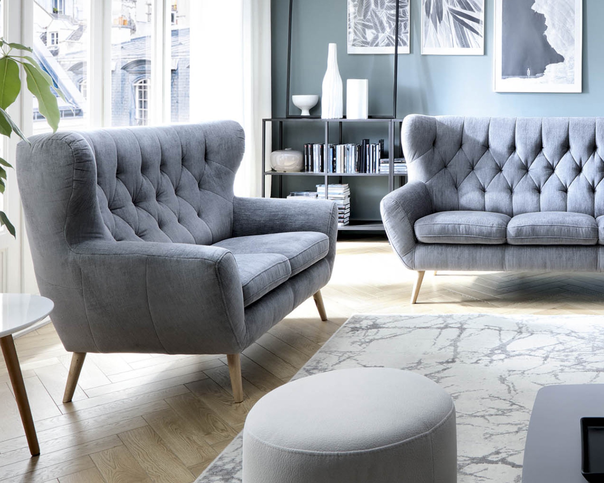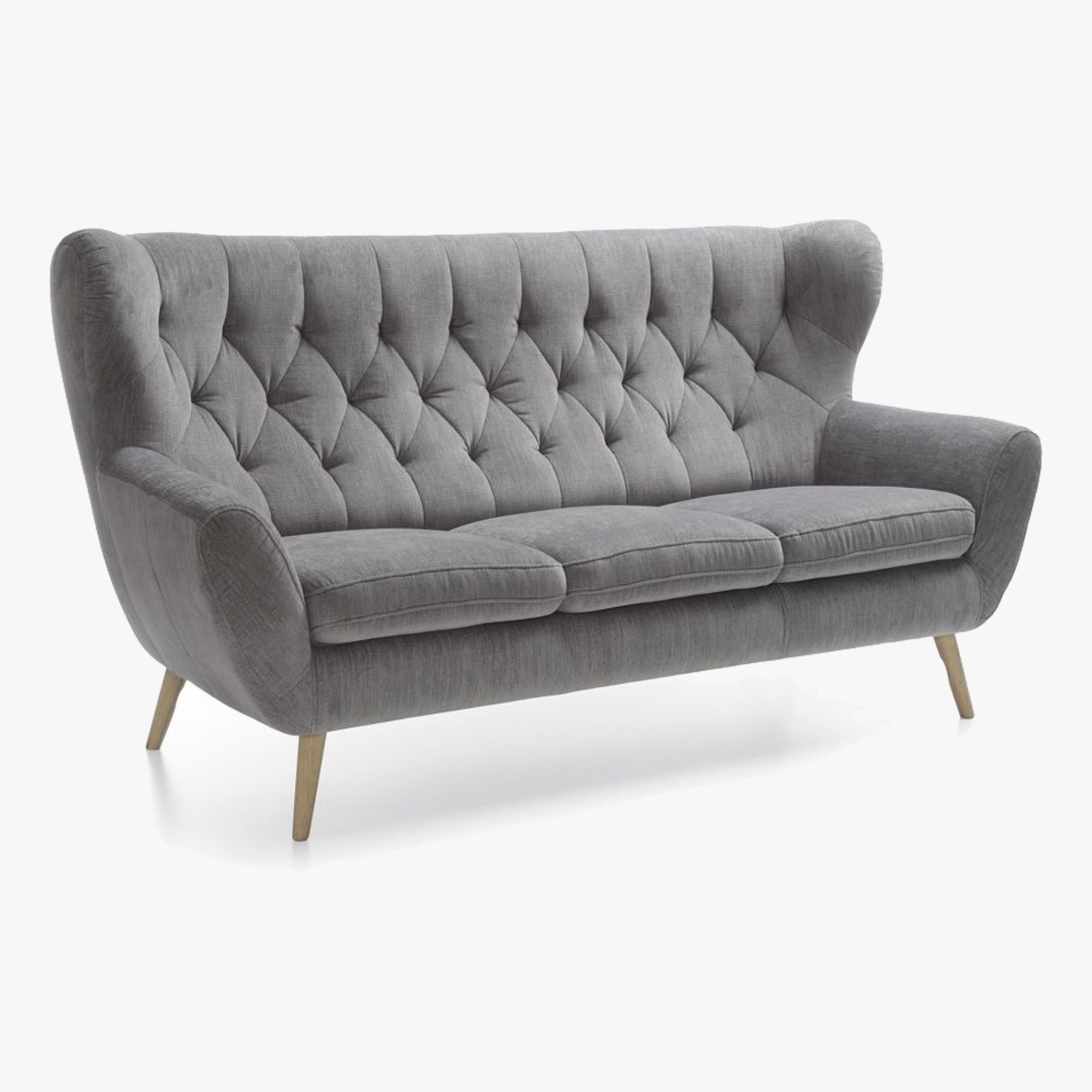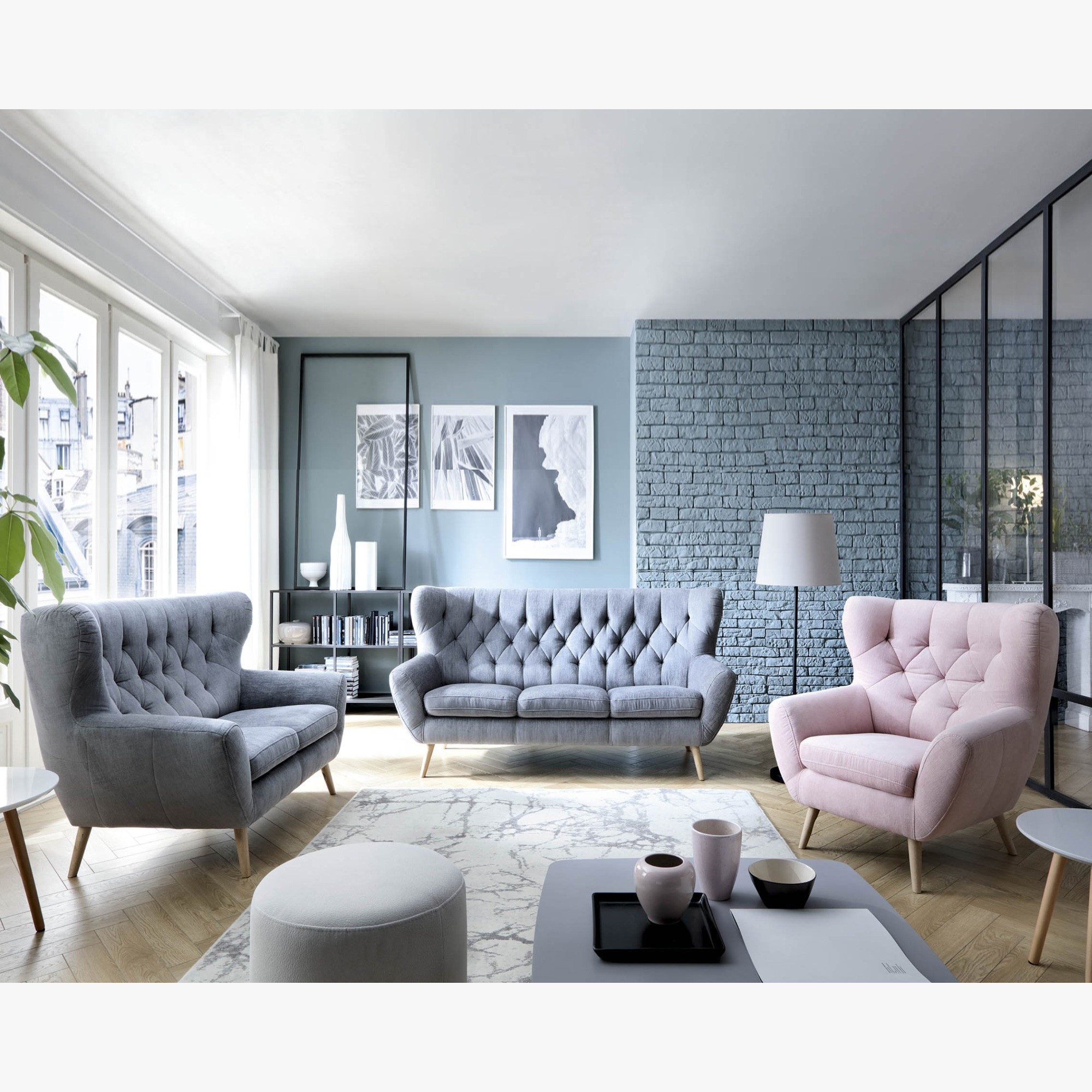 Schöne und vor allem bequeme Couch mit außergewöhnlich hohem Sitzkomfort. Das Sofa verfügt über einen außergewöhnlich hochwertigen Aquaclean-Stoff, so dass Sie sicher sein können, dass Sie alle Flecken entfernen können. Die Nähqualität garantiert feste Verbindungen auch nach einem Jahr Nutzung. Das Sitzmöbel ist in den Varianten Sessel, Zweiersofa und Dreiersofa erhältlich. Zur Auswahl stehen die hochwertigsten Stoffe mit Aquaclean-Eigenschaften. Das Sofa ist für moderne Wohnungen, aber auch für geräumige Häuser bestimmt. Ein charakteristisches Merkmal der Sofas sind ihre Ohren an den Seiten. Wenn Sie hohen Komfort mögen, ist dieses Sofa genau für Ihr Wohnzimmer geeignet. Der hohe Sitzkomfort wird durch Federn und Füllungen aus hoch elastischem Schaumstoff gewährleistet, die auch nach Jahren ihre Form behalten. Die Höhe der Füße beträgt 18 cm. Die Farbe des Stoffes kann leicht abweichen, dies hängt von den Farbeinstellungen Ihres Monitors ab.