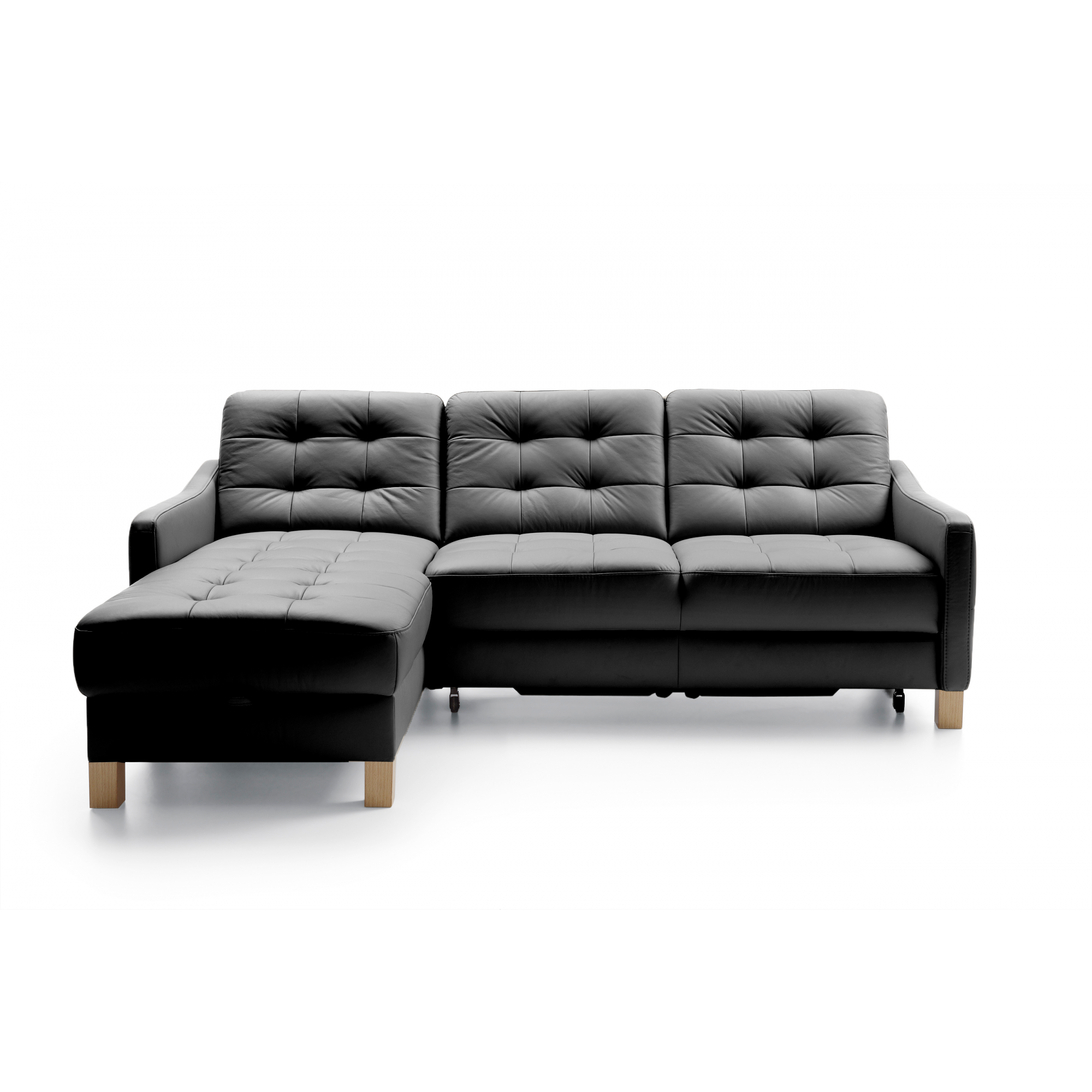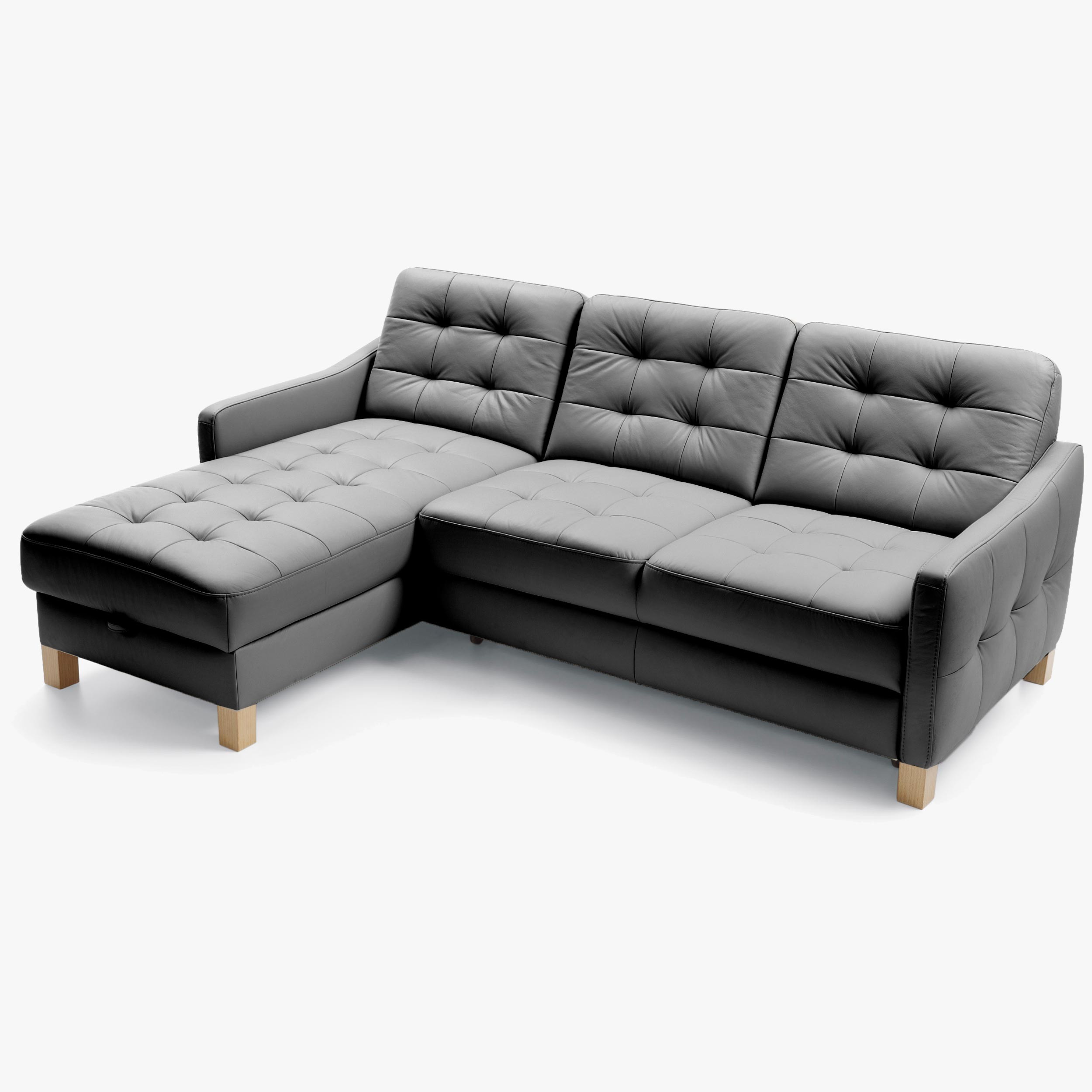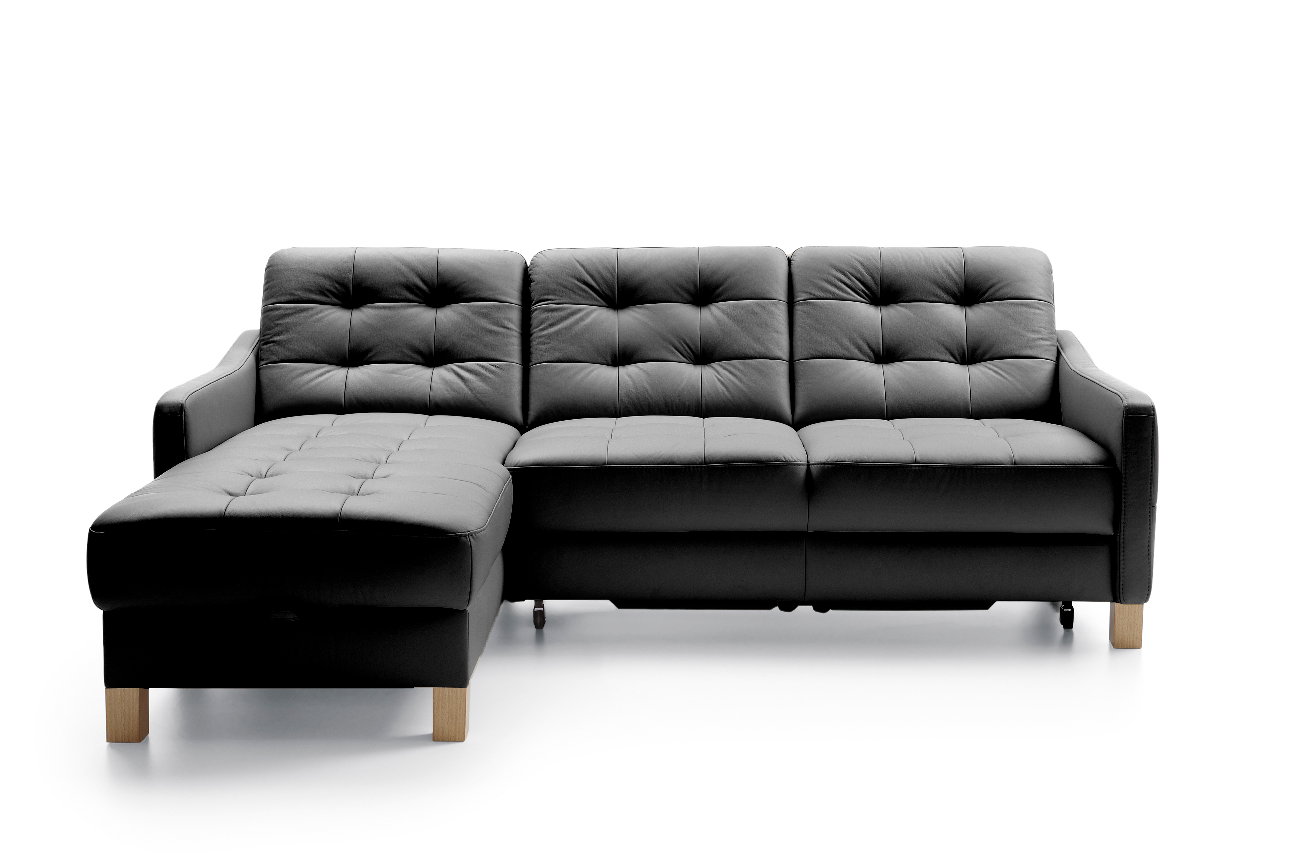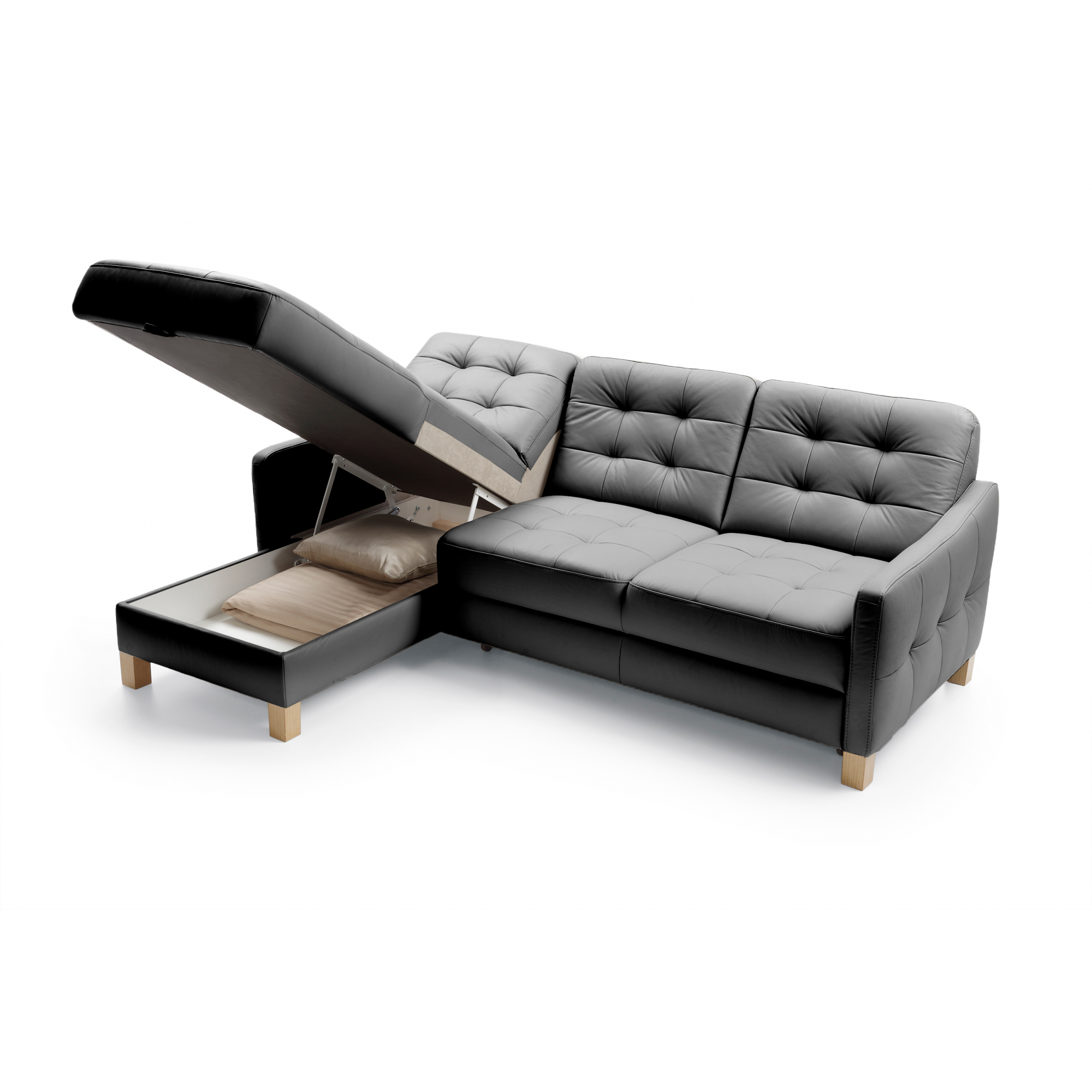 Schwarzes Eckledersofa mit Schlaf- und Stauraumfunktion