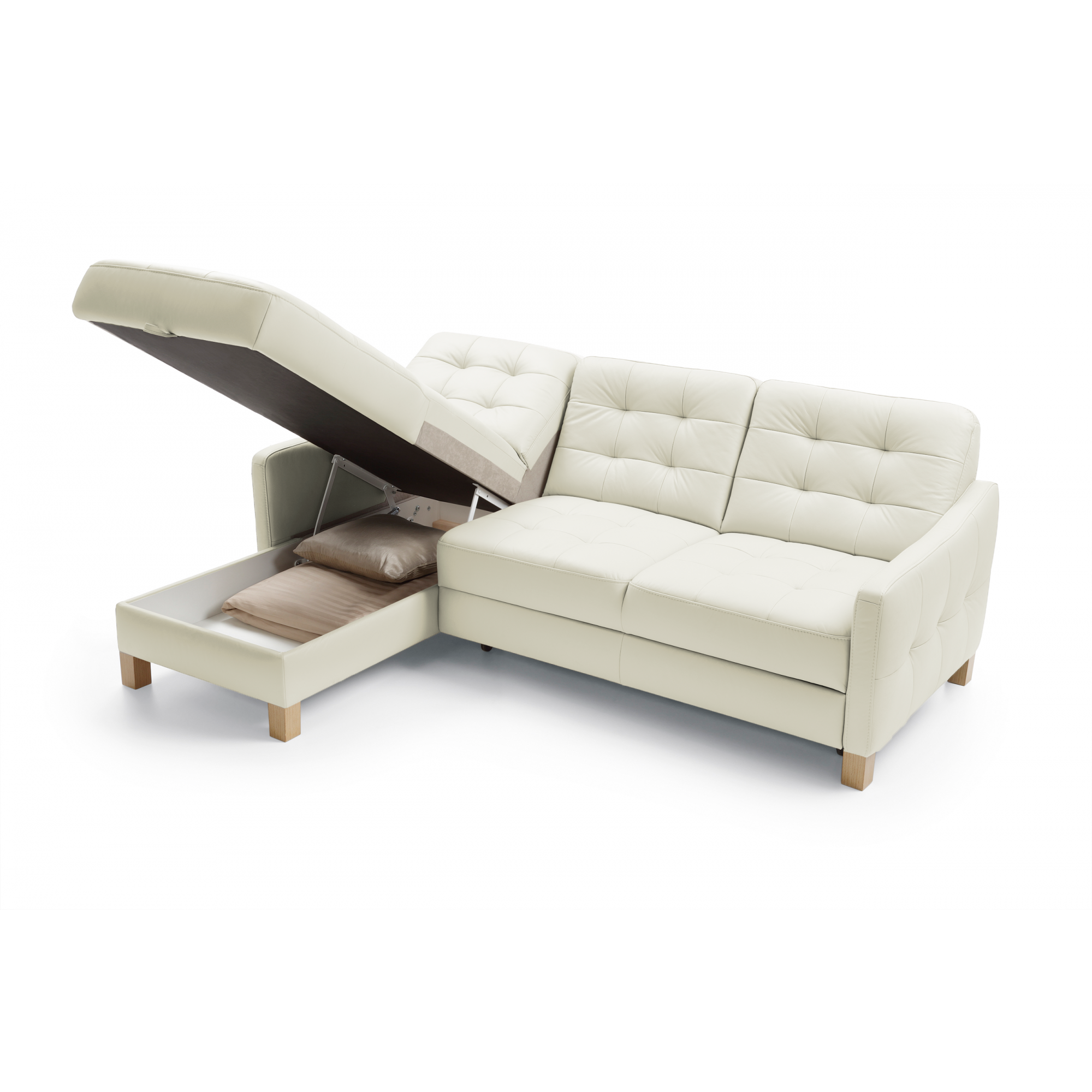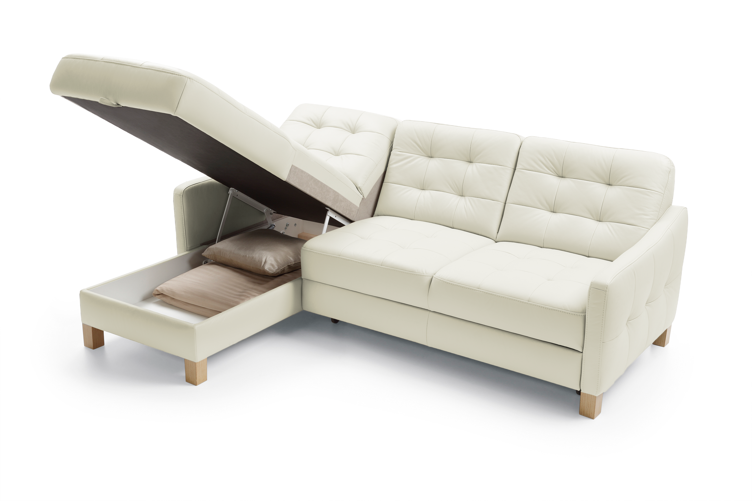 Eckledercouch G105, Schlaf- und Stauraumfunktion, Ecke links