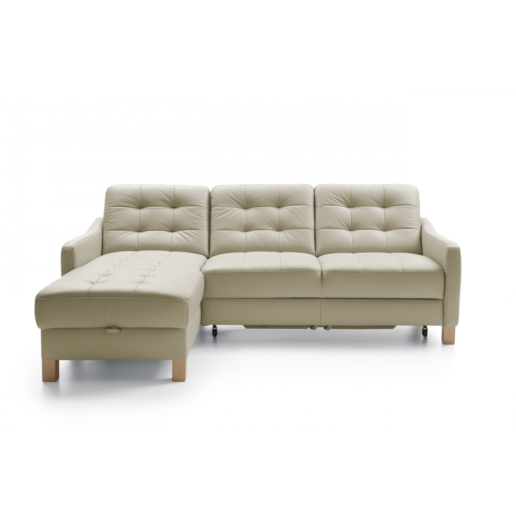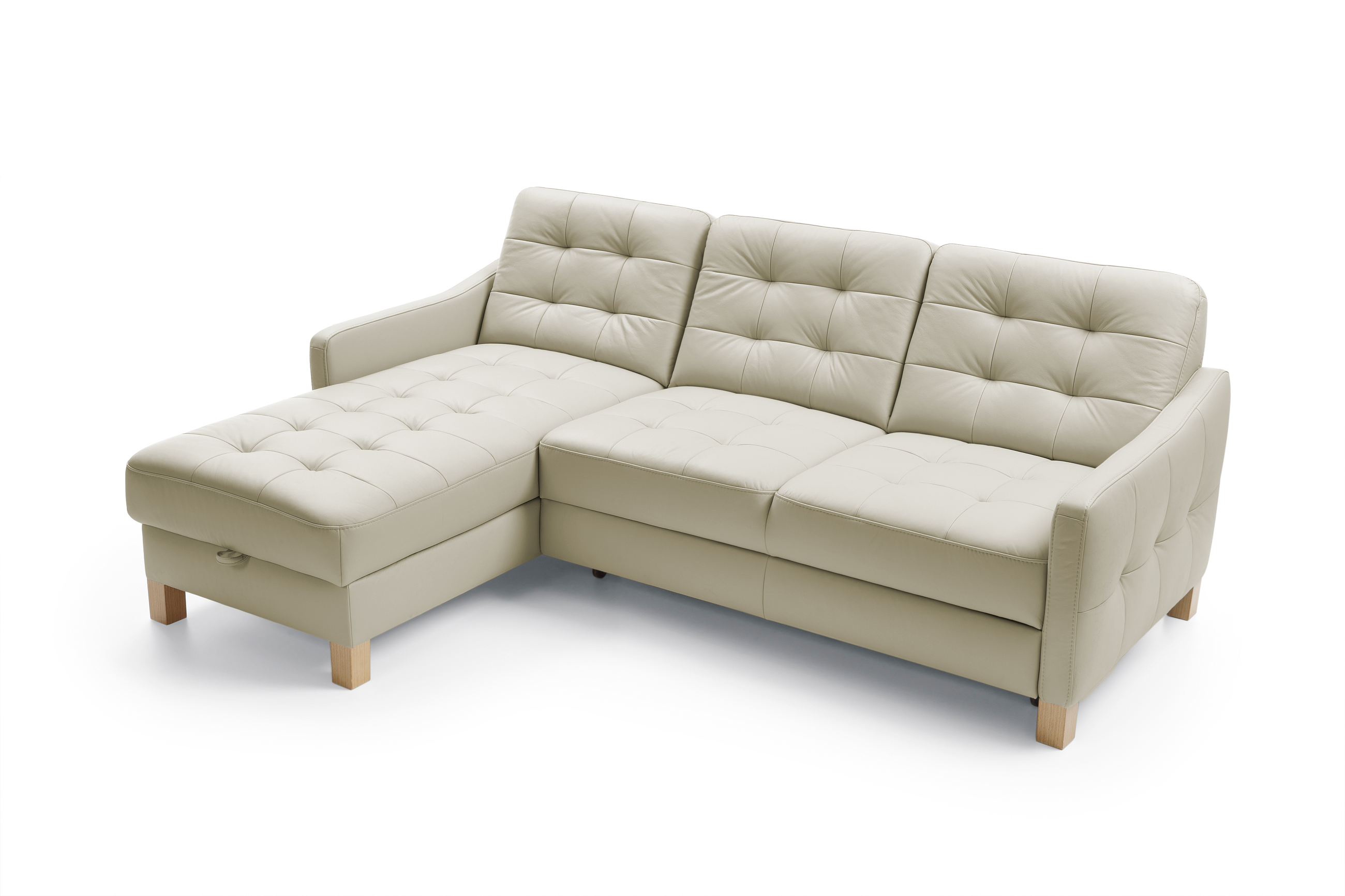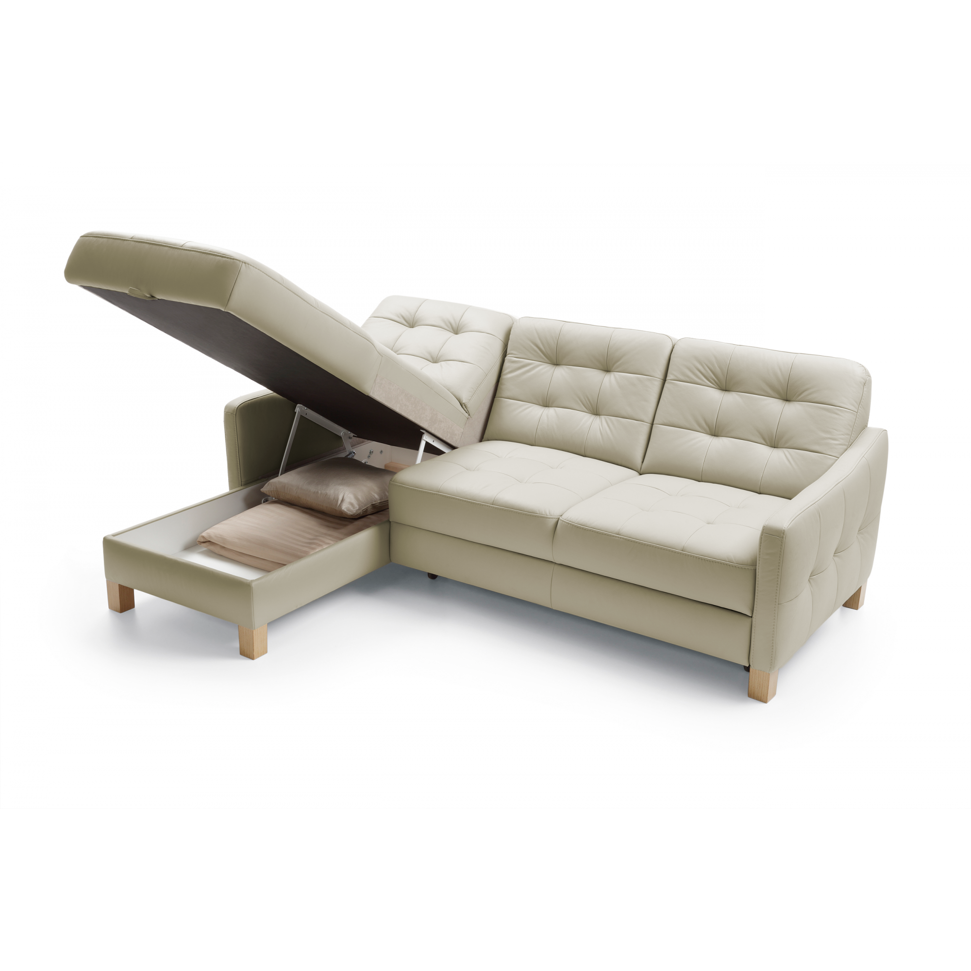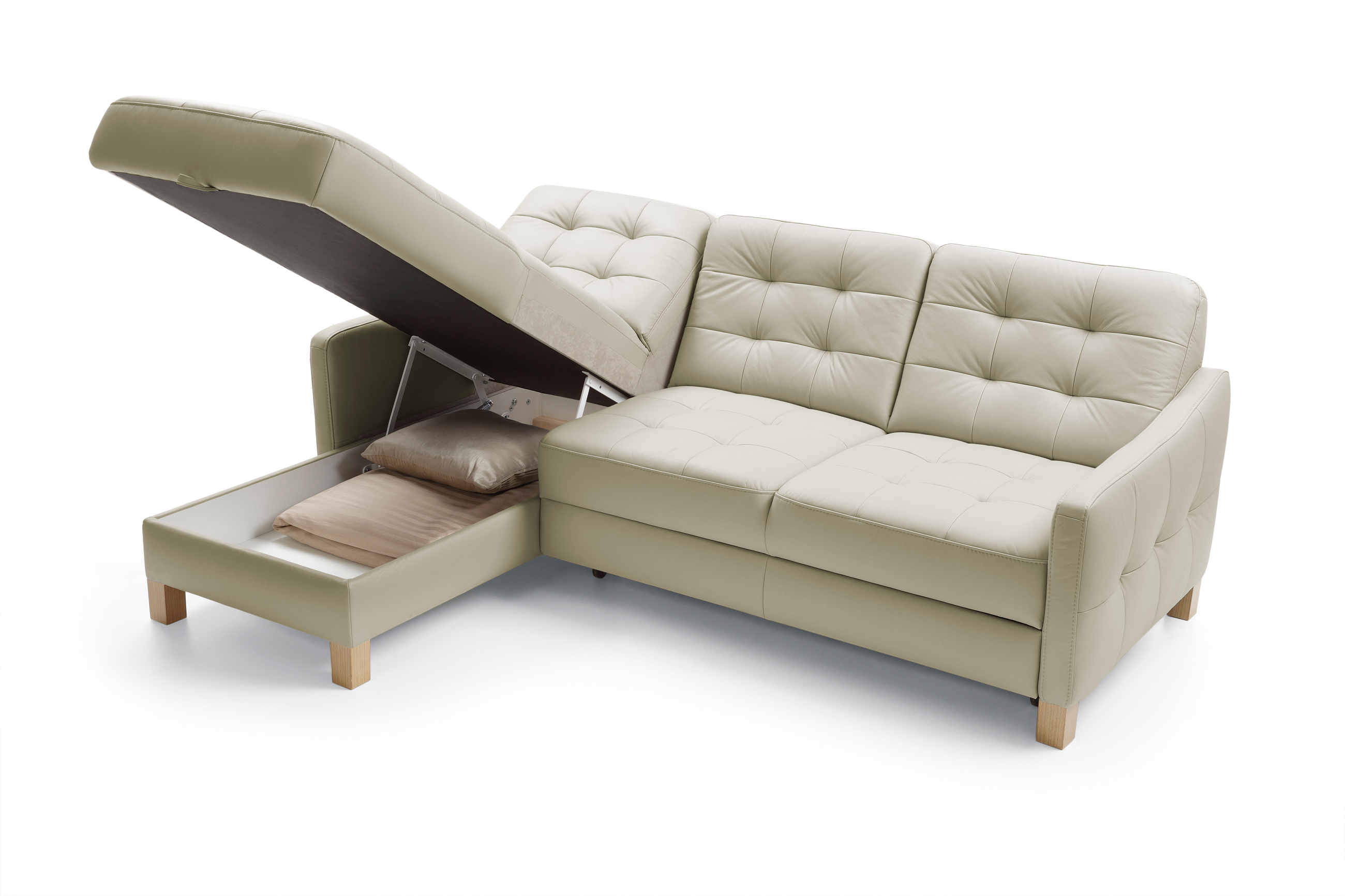 Eck-Ledersofa G100 links, Schlaf- und Stauraumfunktion,