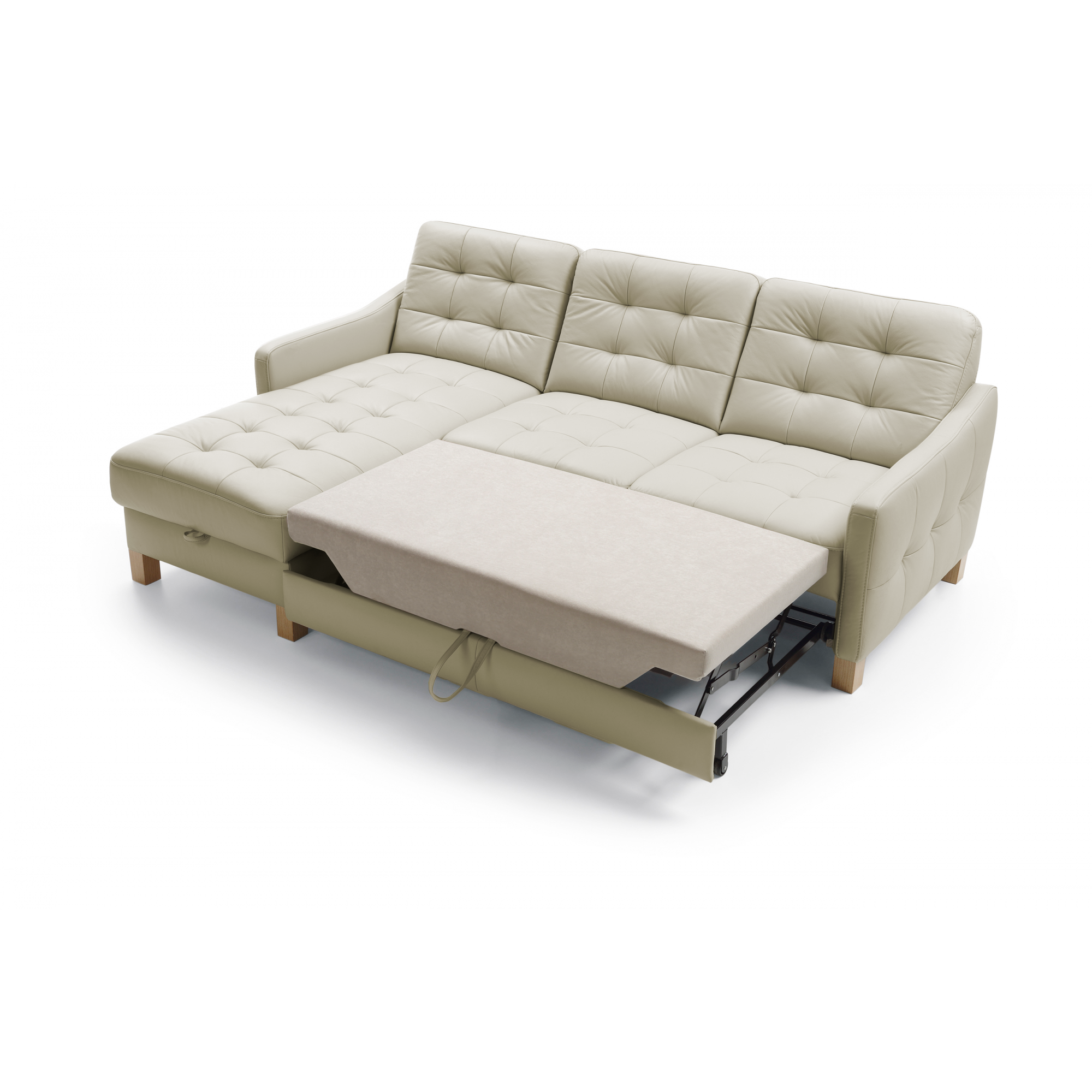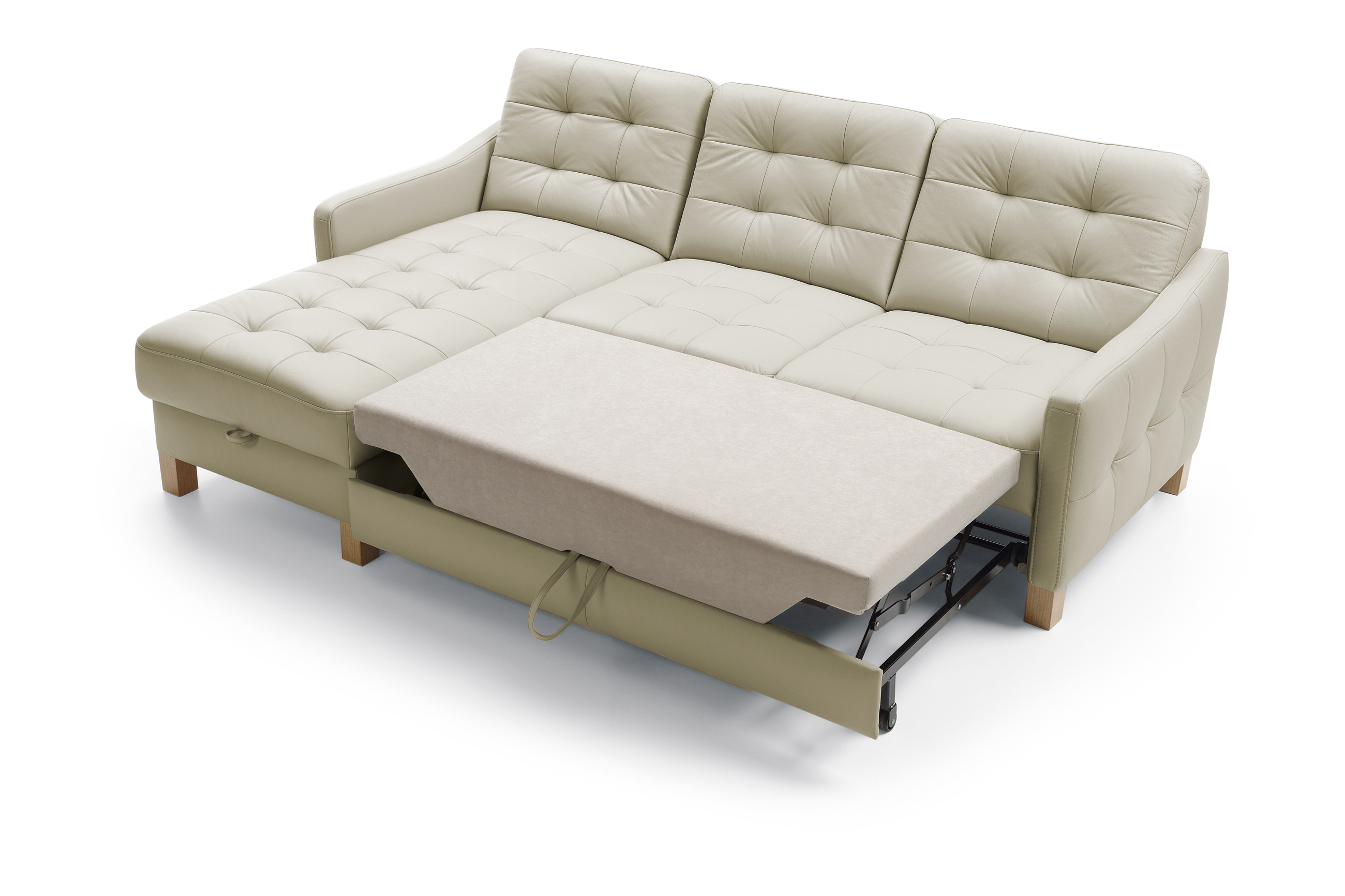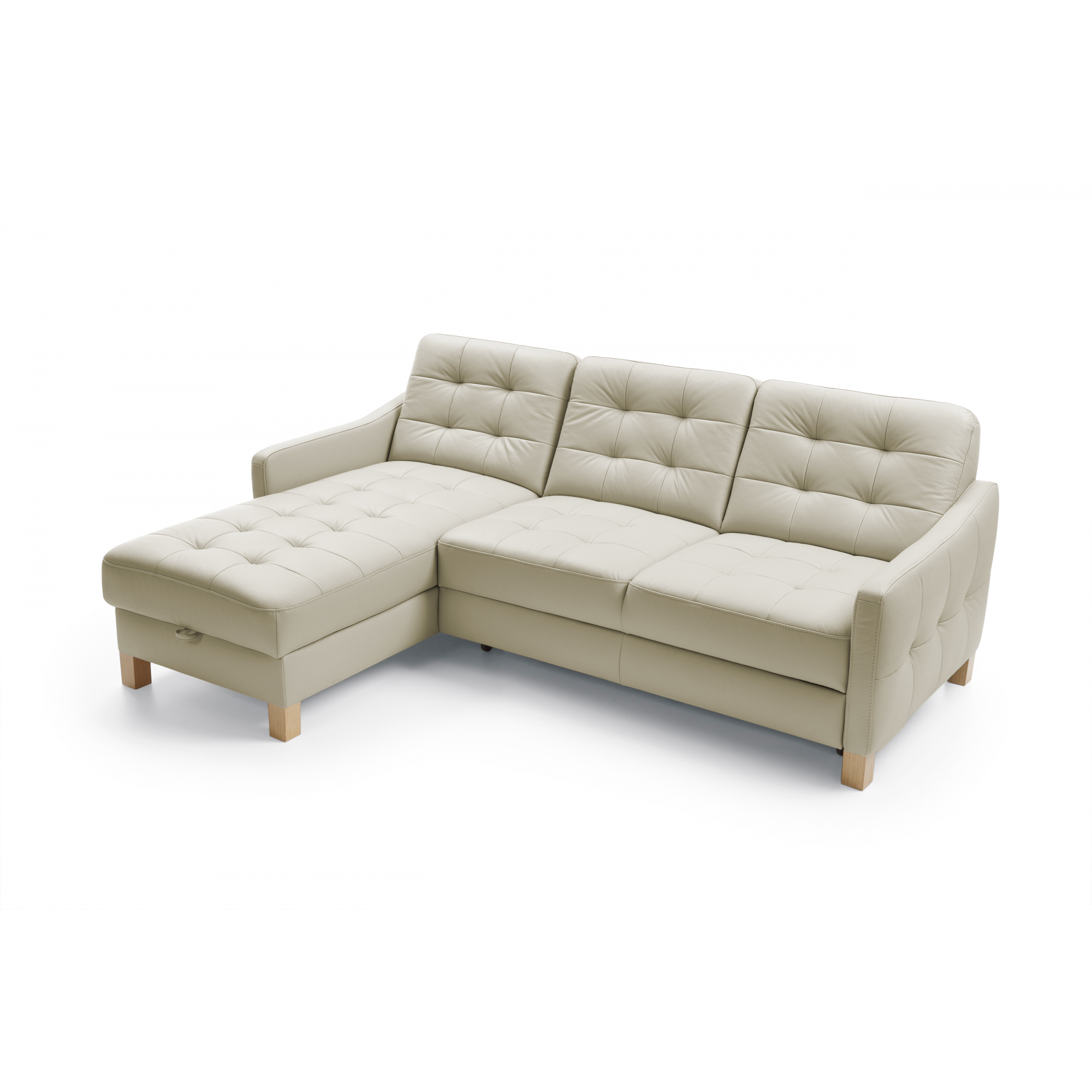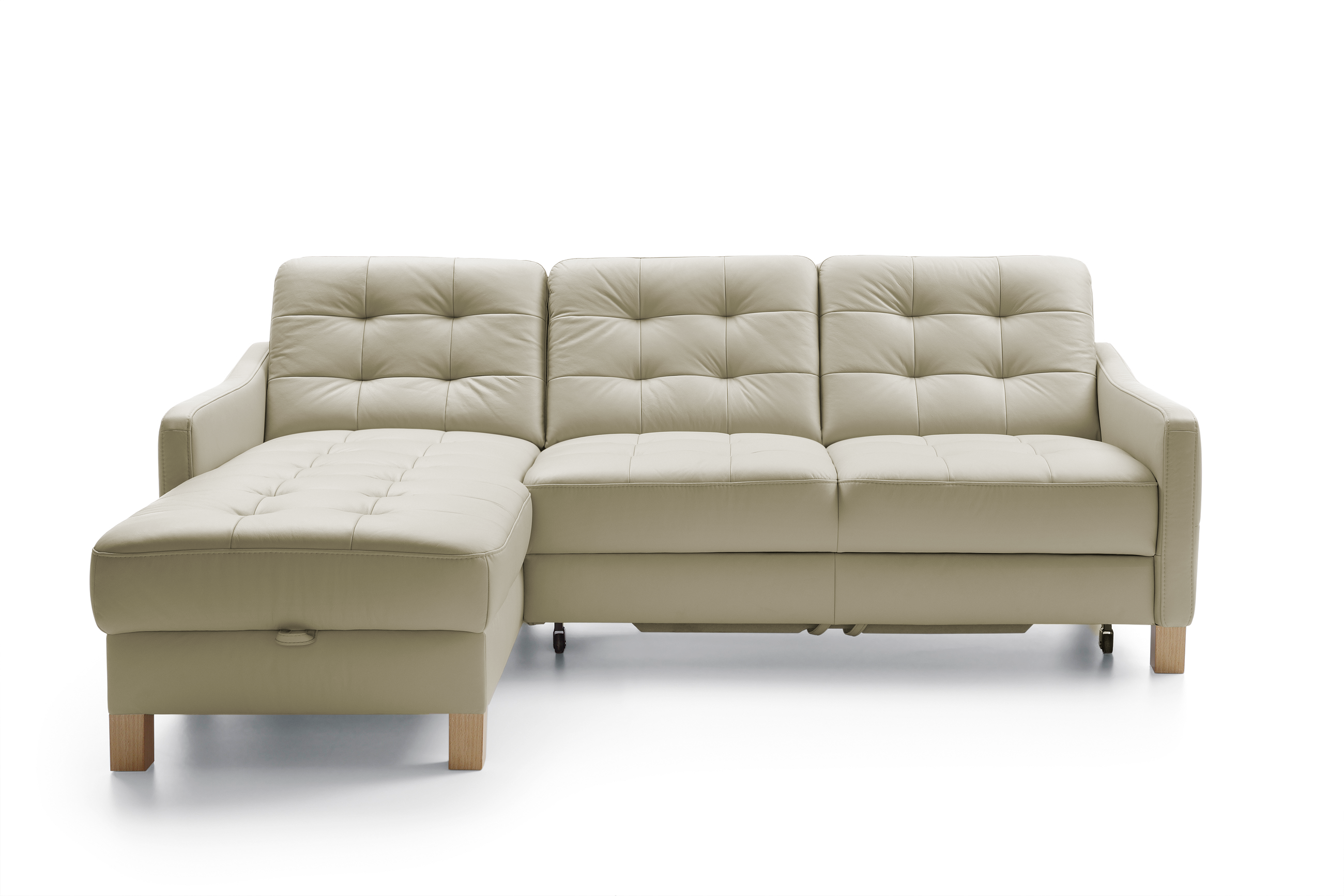 Eck-Ledersofa G100 links, Schlaf- und Stauraumfunktion,