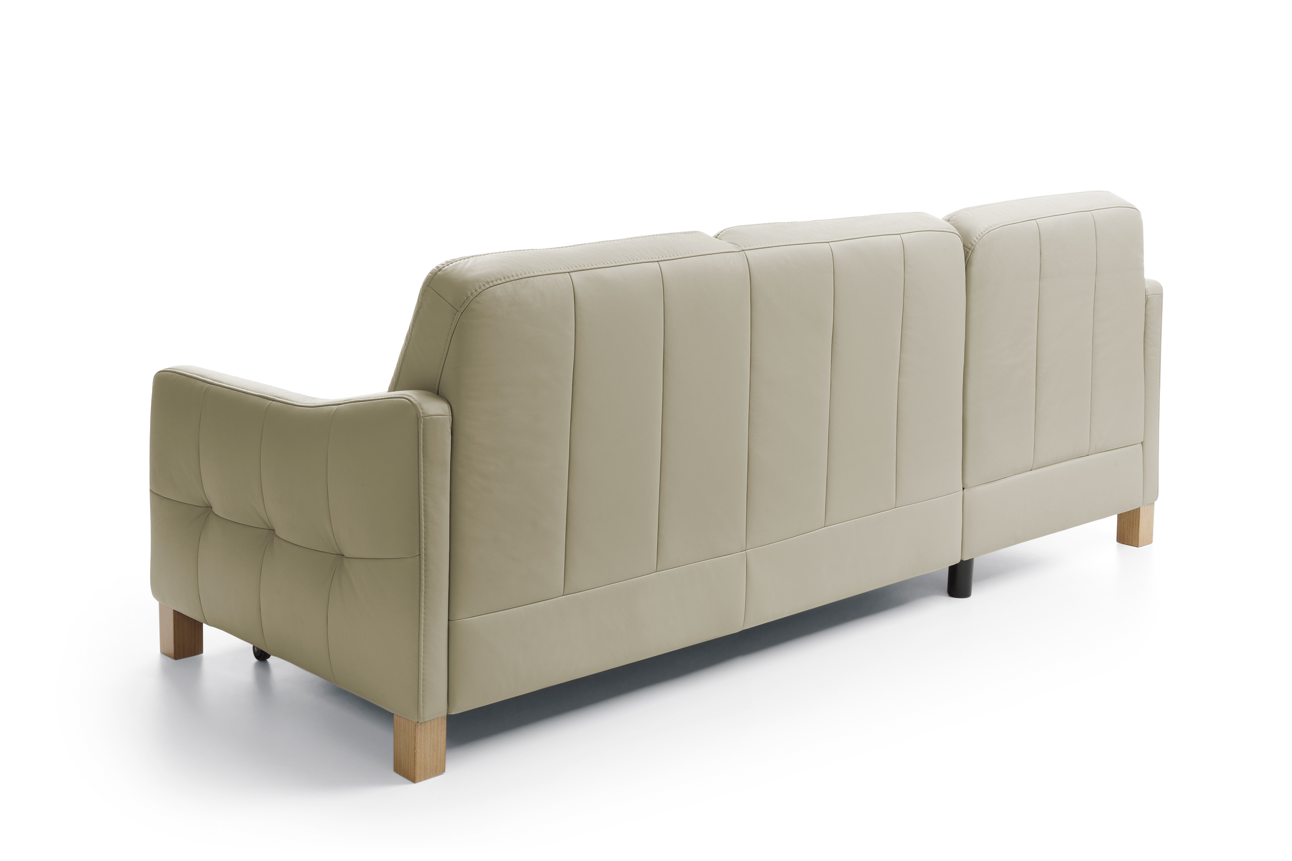 Modernes Ecksofa hergestellt aus echtem und sehr hochwertigem Leder in kompakten Maßen. Die Gesamtbreite des Sofas beträgt 220 cm, ideal zur Nutzung des Raums im Innenbereich. Modernes Sofa-Design ergänzt durch gesteppte Muster auf der Rückenlehne einschließlich der Seiten des Sofas. Der Vorteil der Sitzgarnitur Malmo ist die Funktion als gelegentliches Schlafsofa inklusive Stauraum in der Sofaecke.