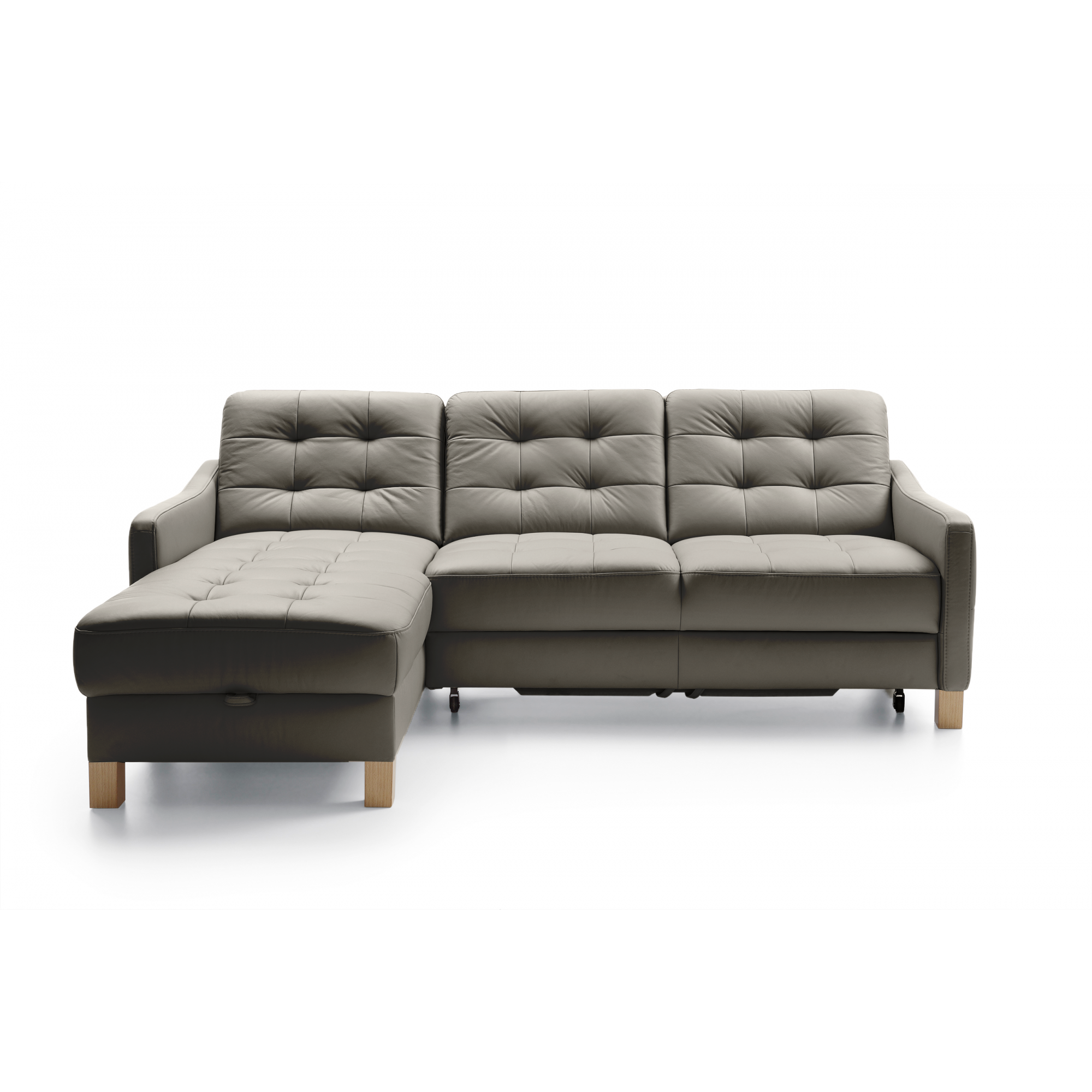 Eckledercouch G170 mit Schlaffunktion und Stauraum links