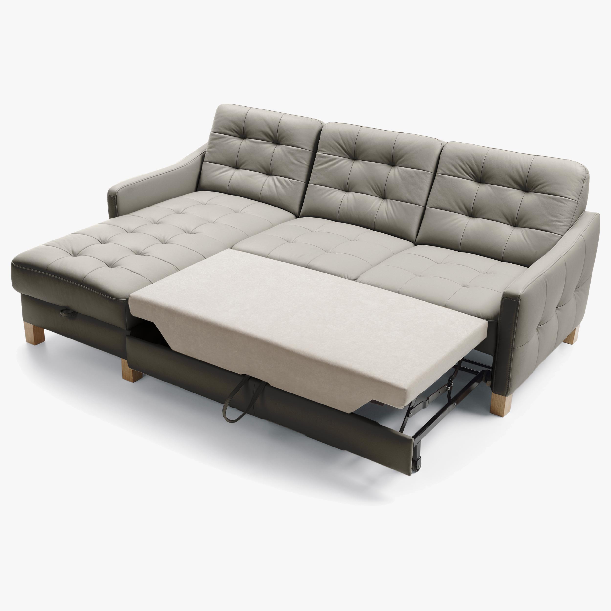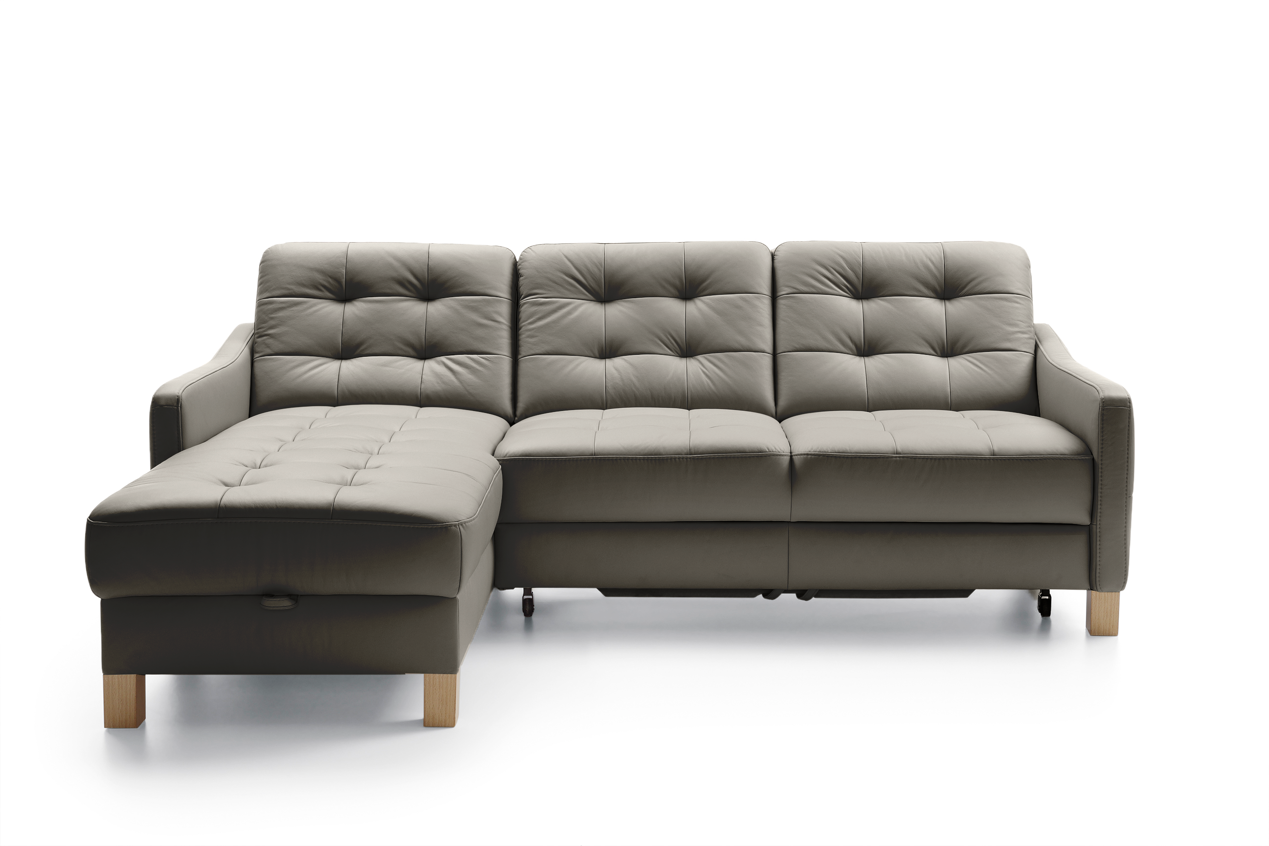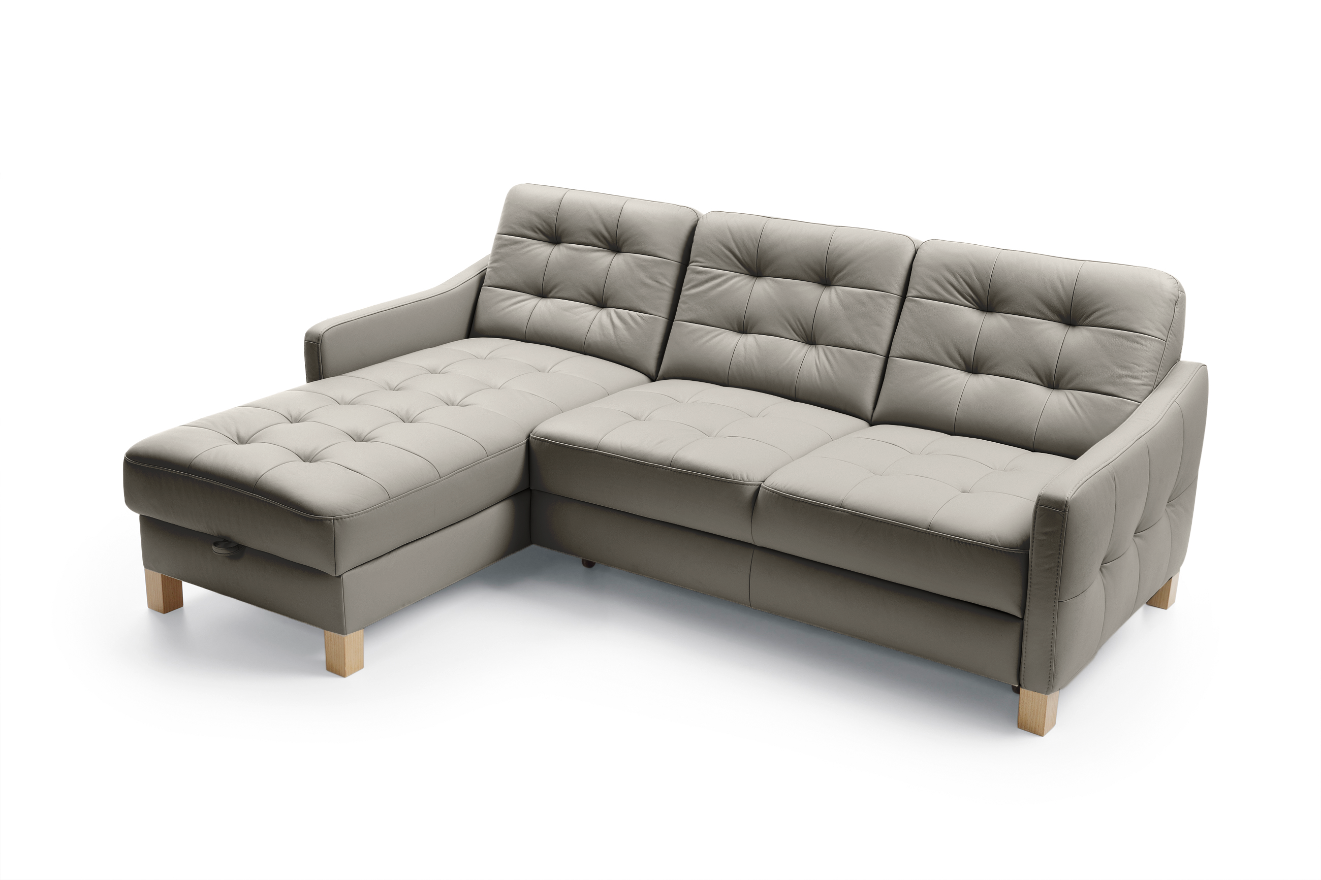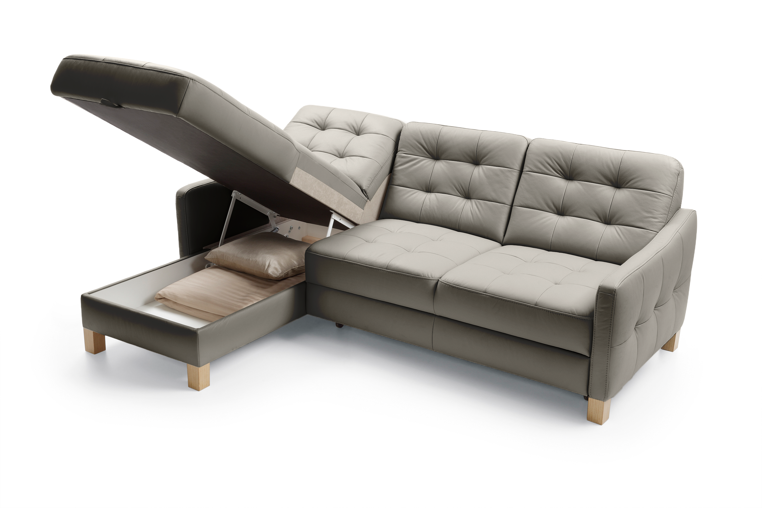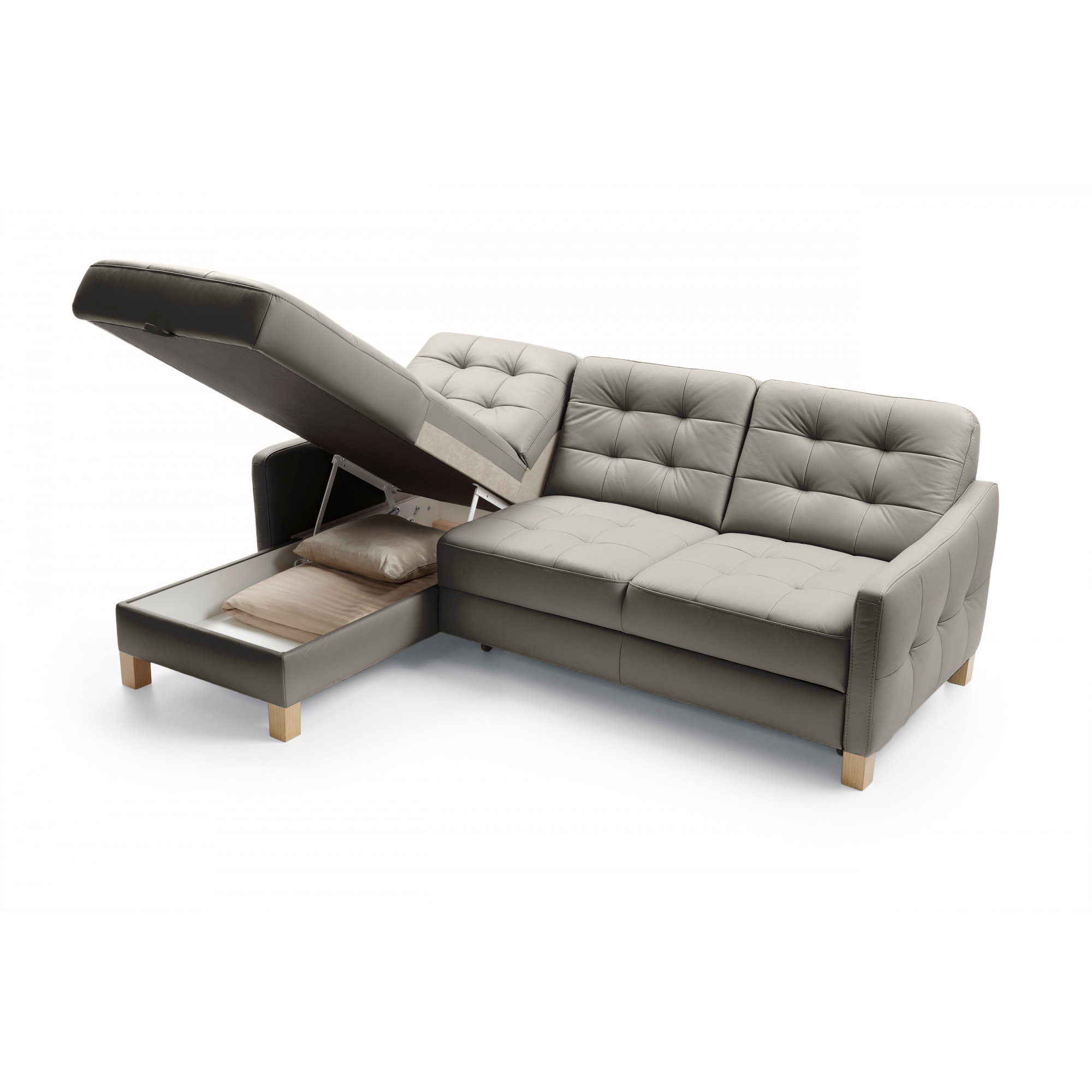 Eckledercouch G170, Schlaffunktion und Stauraum mit Eck links