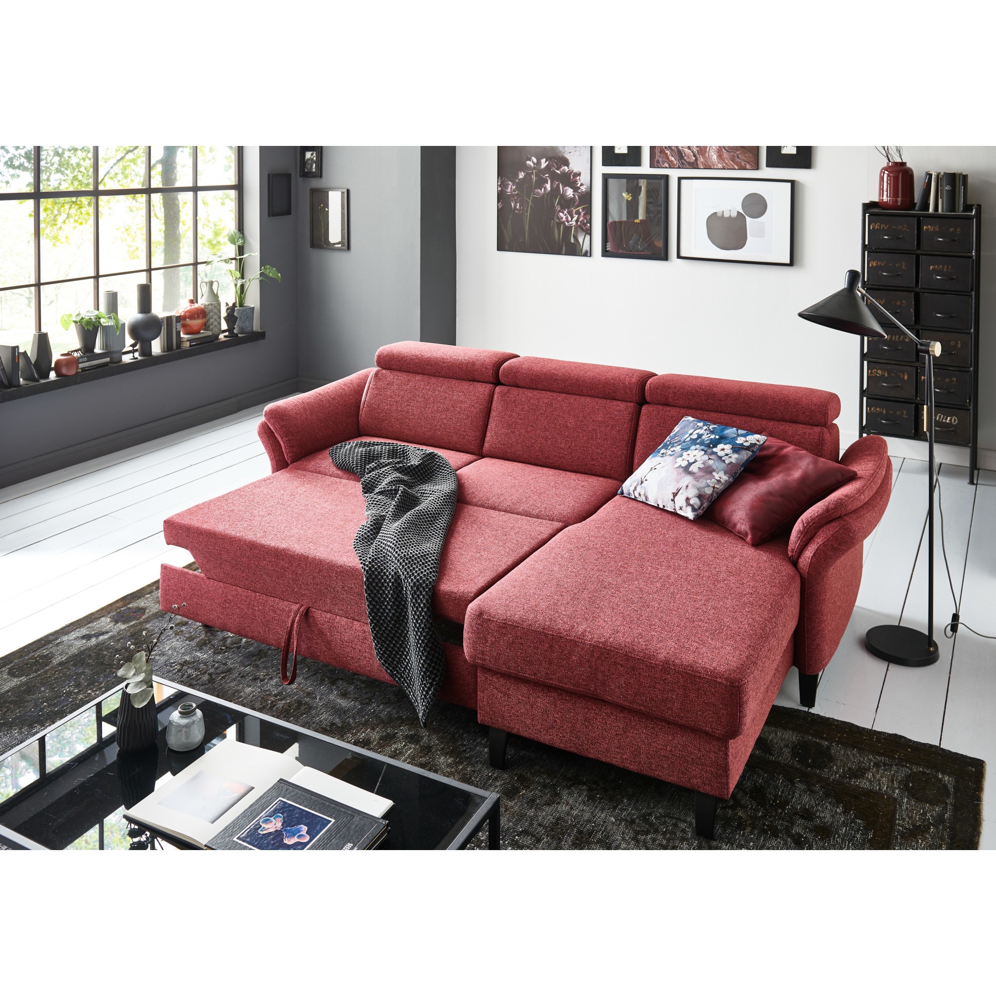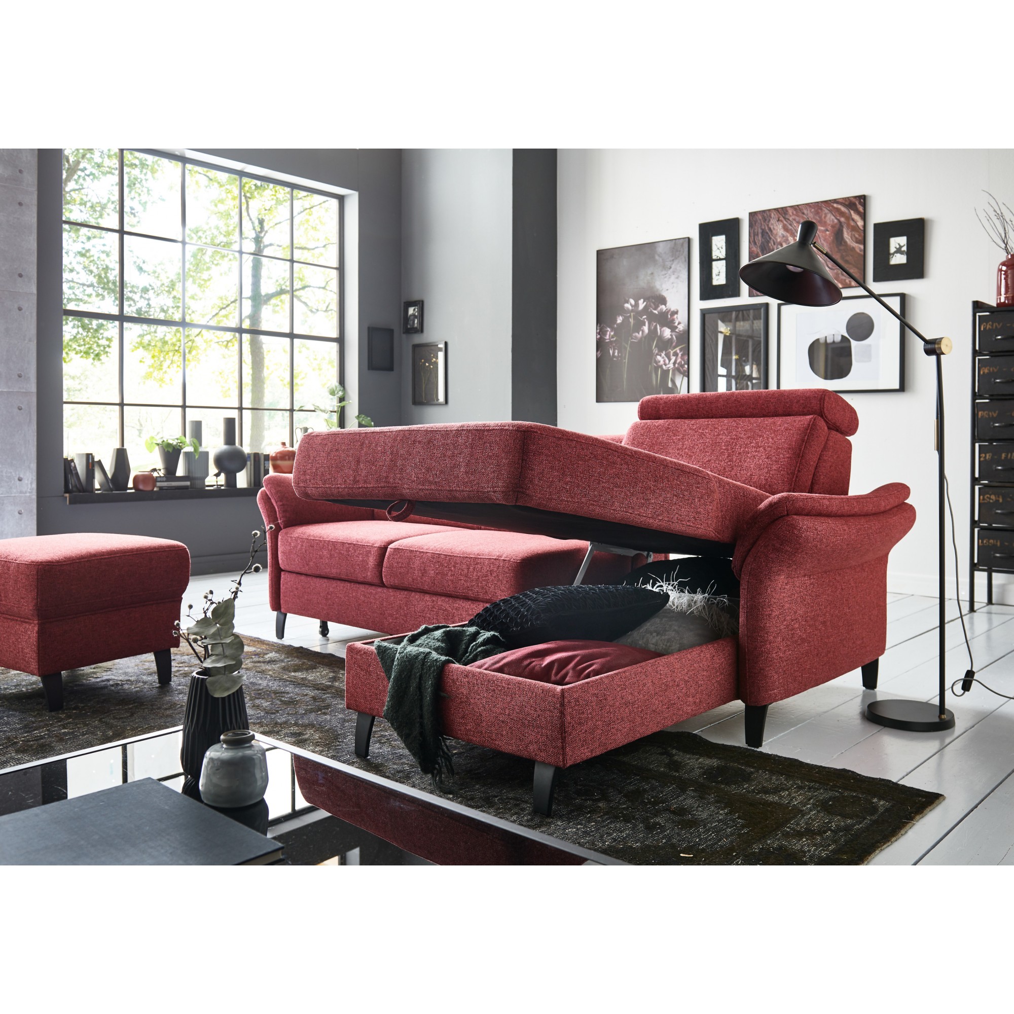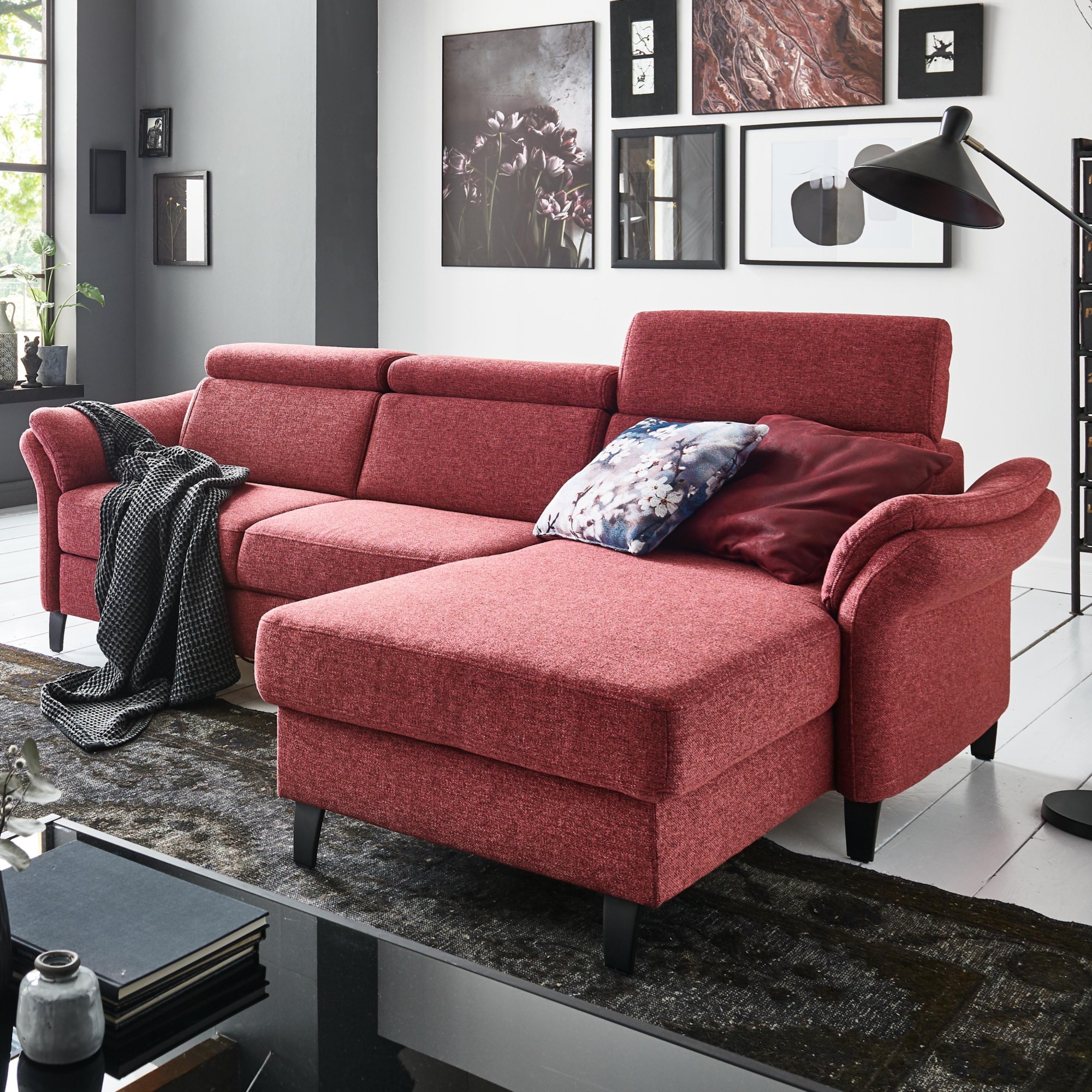 Rotes Ecksofa auf Füßen, Stoff, Ecke rechts, 2,5-Sitzer