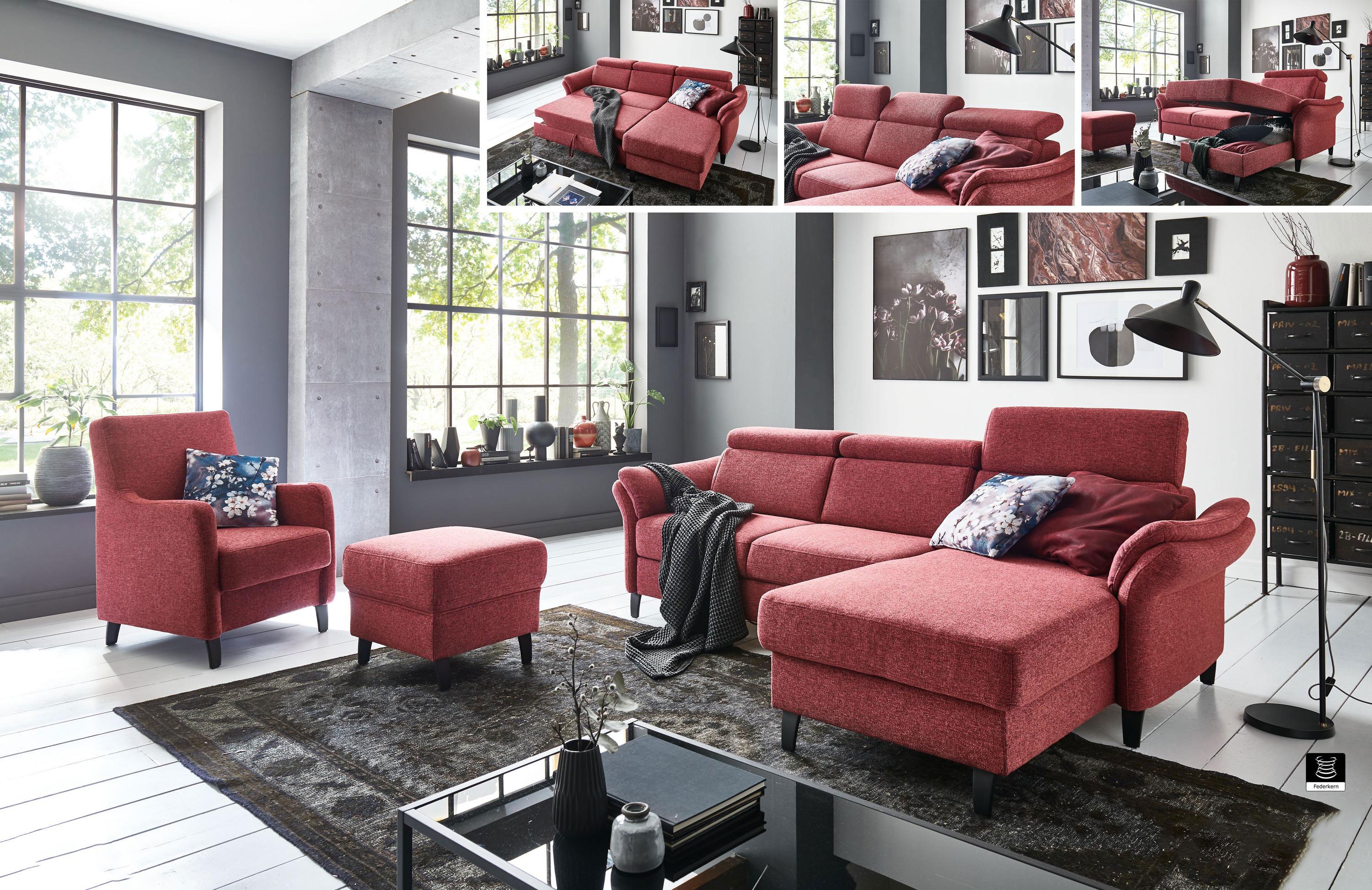 Ecksofa auf Füßen in roter Farbe - Ecke rechts