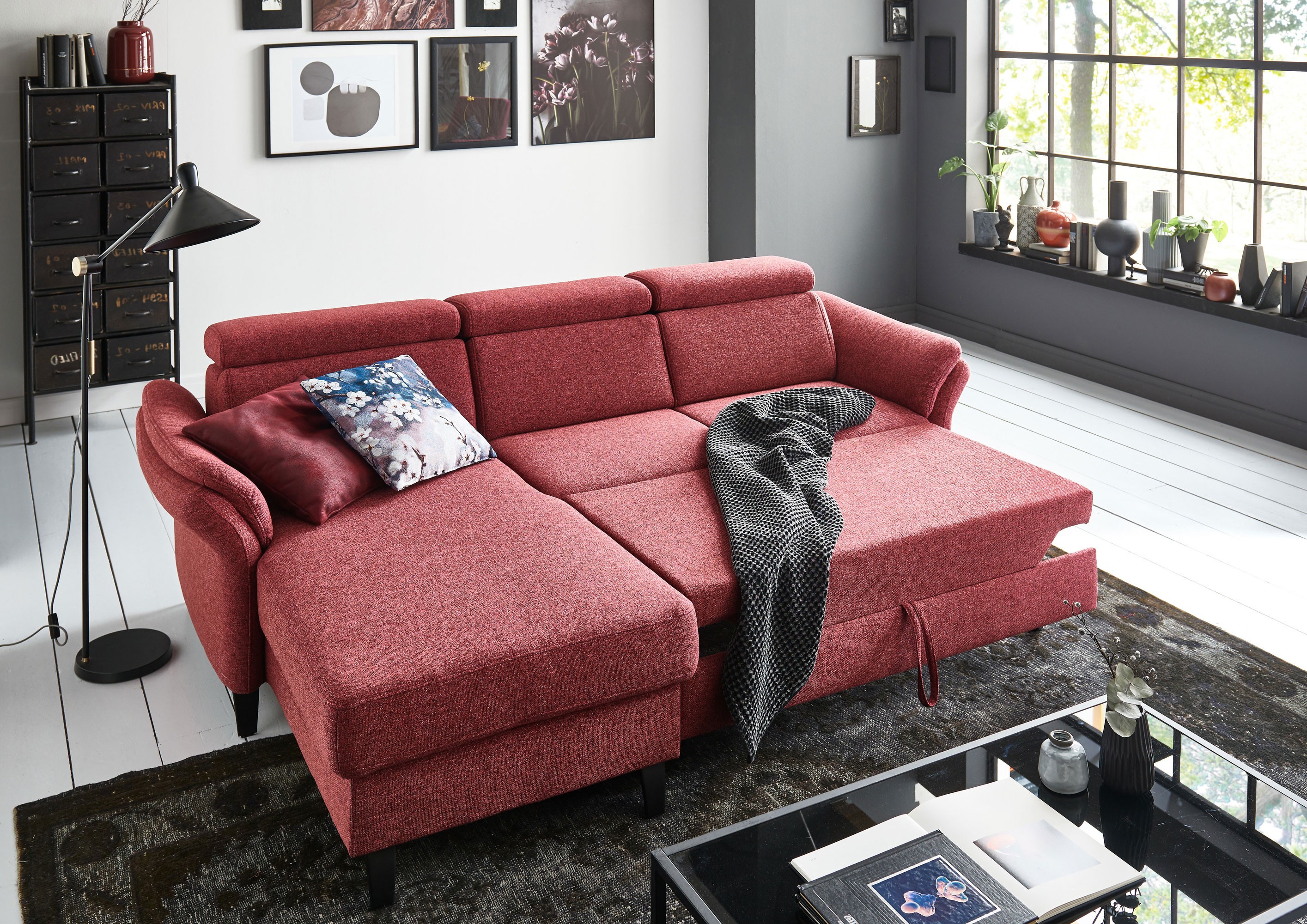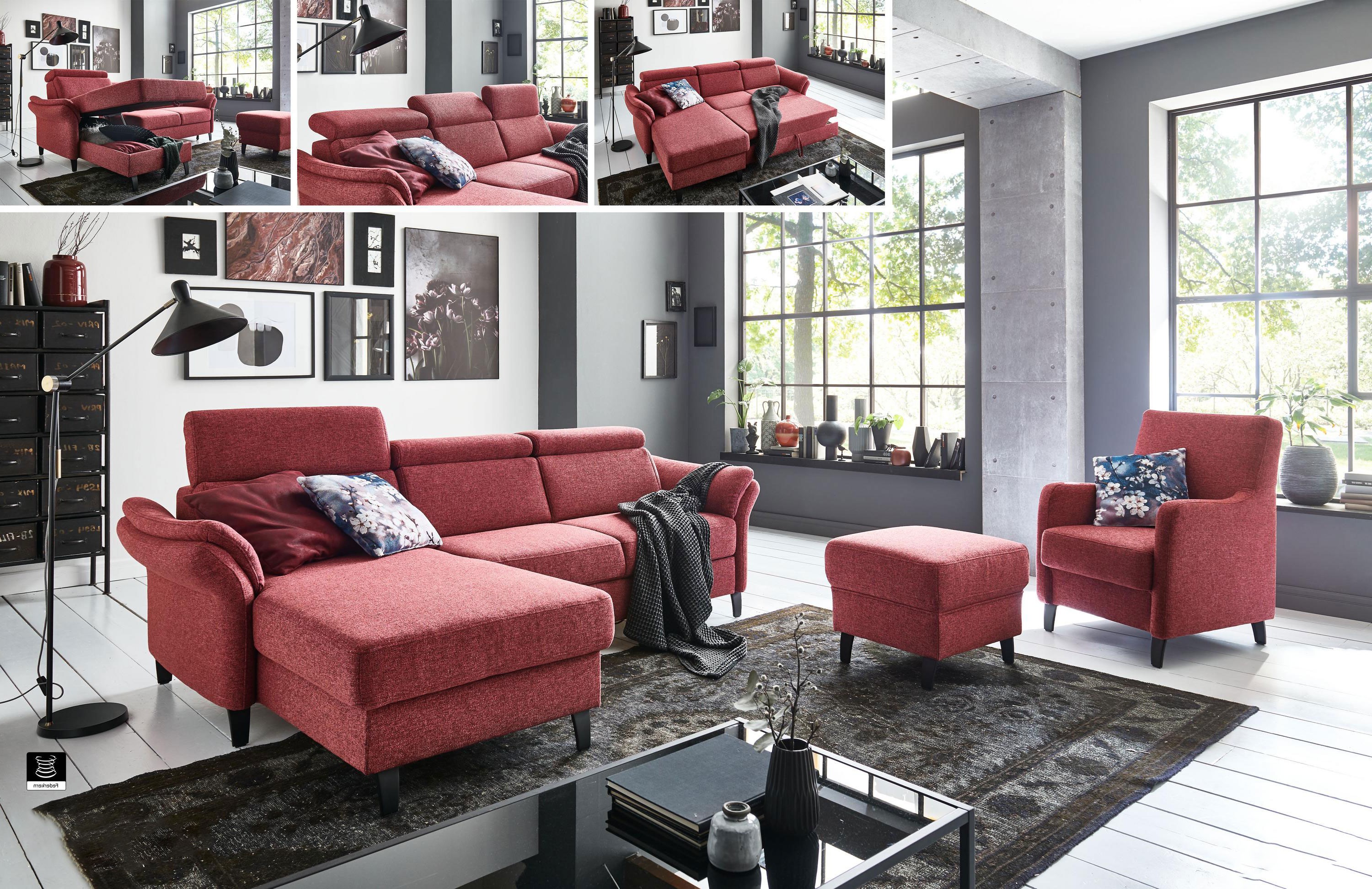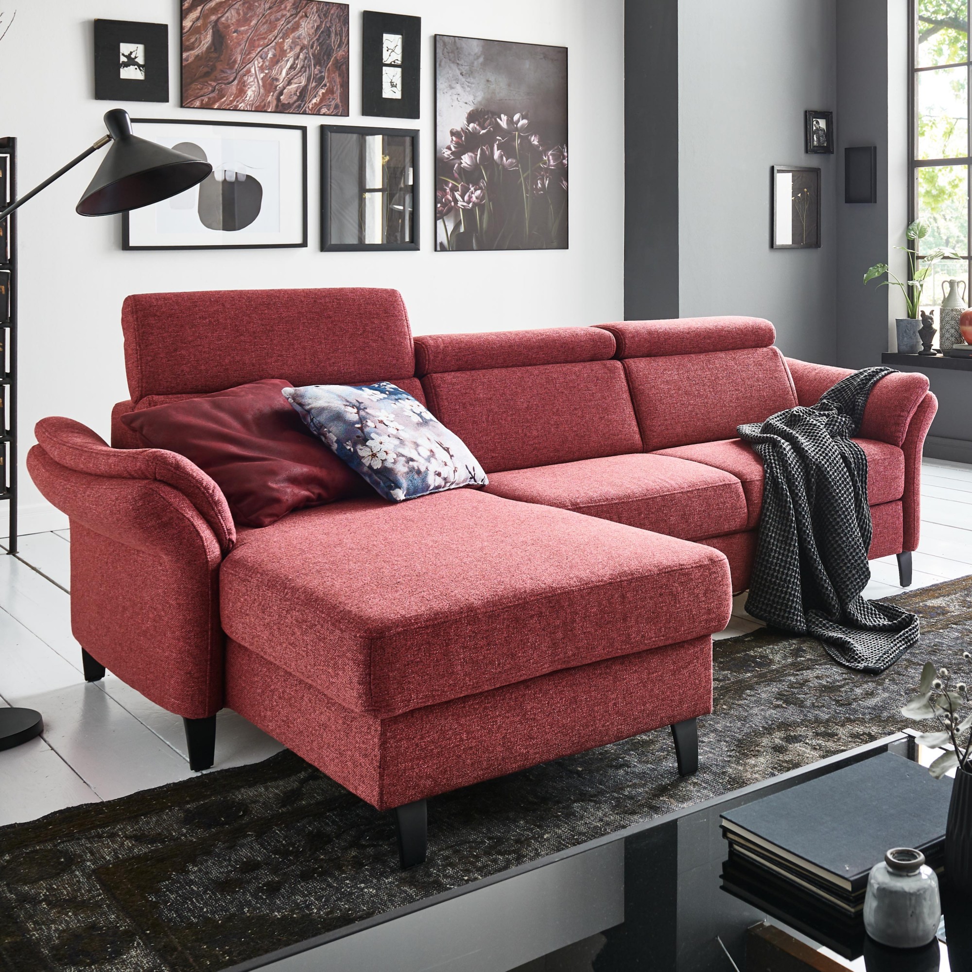 Rotes Ecksofa auf Füßen rechts Stoff Sofa Wohnzimmer