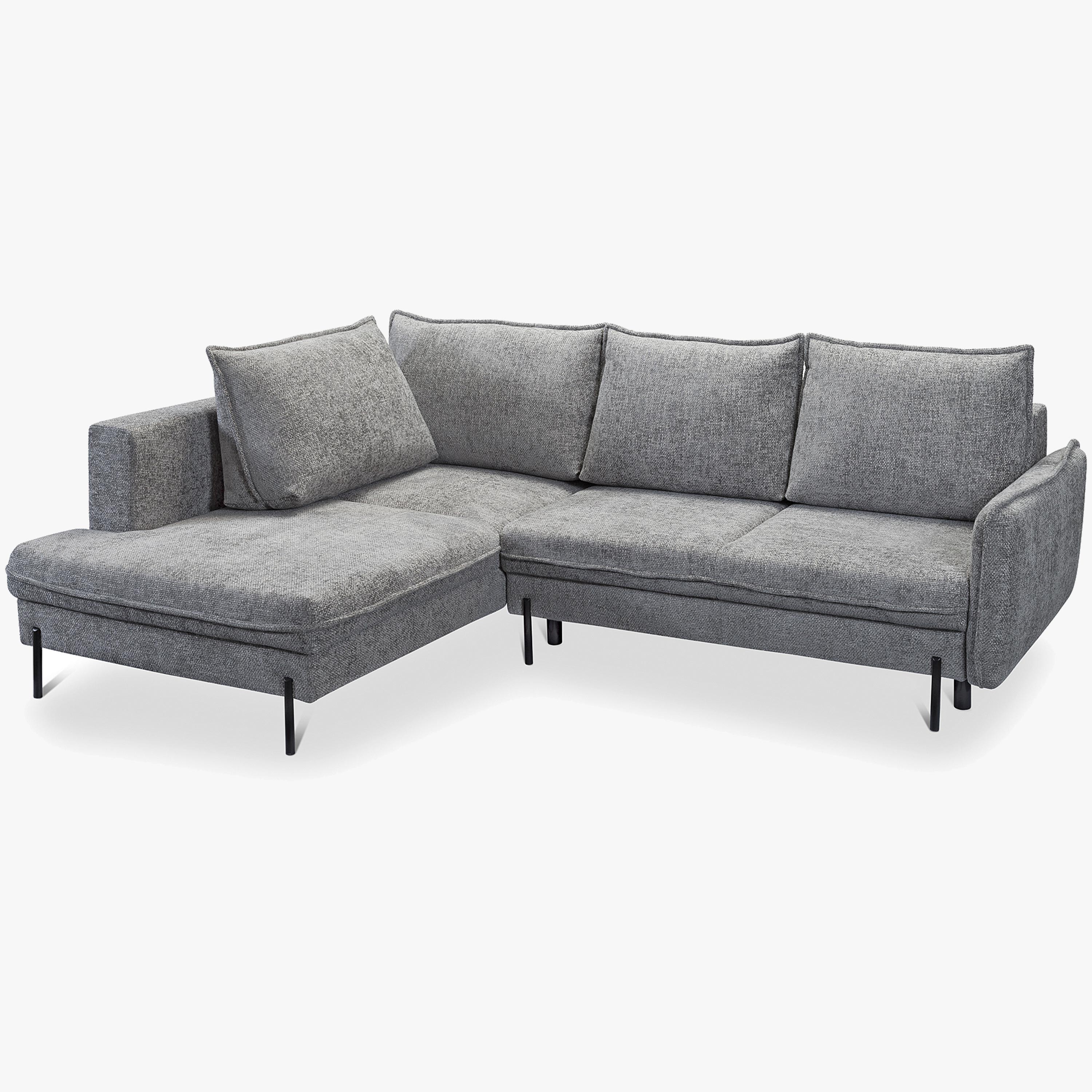 Ecksofa links skandinavisch mit mattschwarzen Beinen