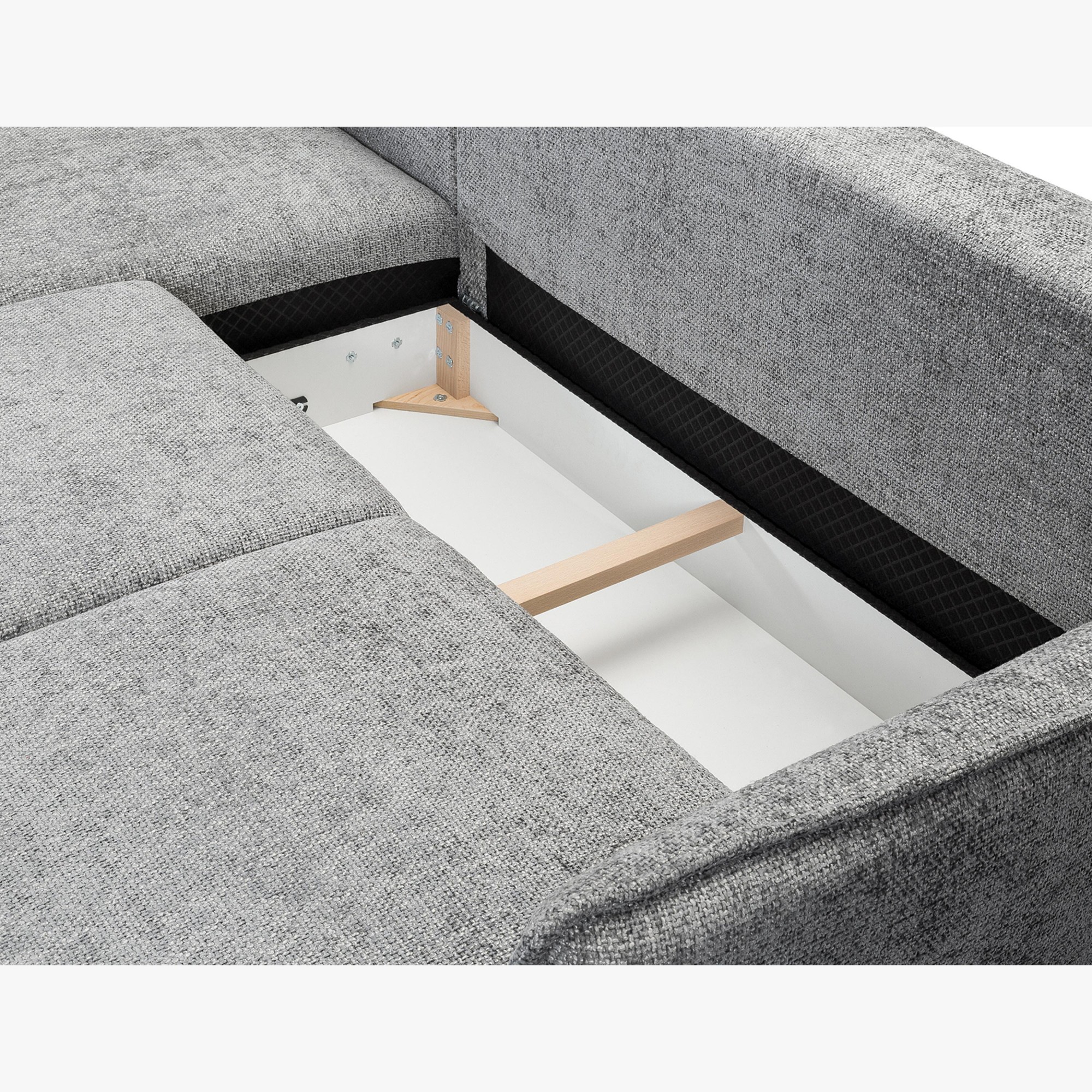 Die Ecksofa Bjorken ist so konzipiert, dass sie all Ihre Anforderungen an Komfort und Praktikabilität erfüllt. Das äußerst attraktive Aussehen wird durch Eigenschaften ergänzt, die jeder Komfortliebhaber zu schätzen weiß. Was halten Sie von einer Schlafmöglichkeit für gelegentliche Gäste oder von entspannten Tagen vor dem Fernseher? Und das ist noch nicht alles! Ein kleiner Stauraum für Bettwäsche gehört ebenfalls zur Sofa, sodass Sie alles Notwendige immer griffbereit haben.