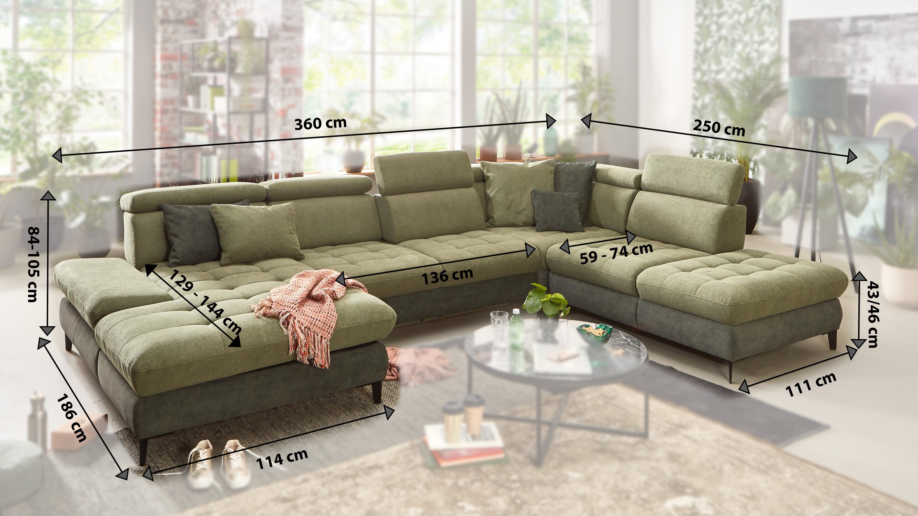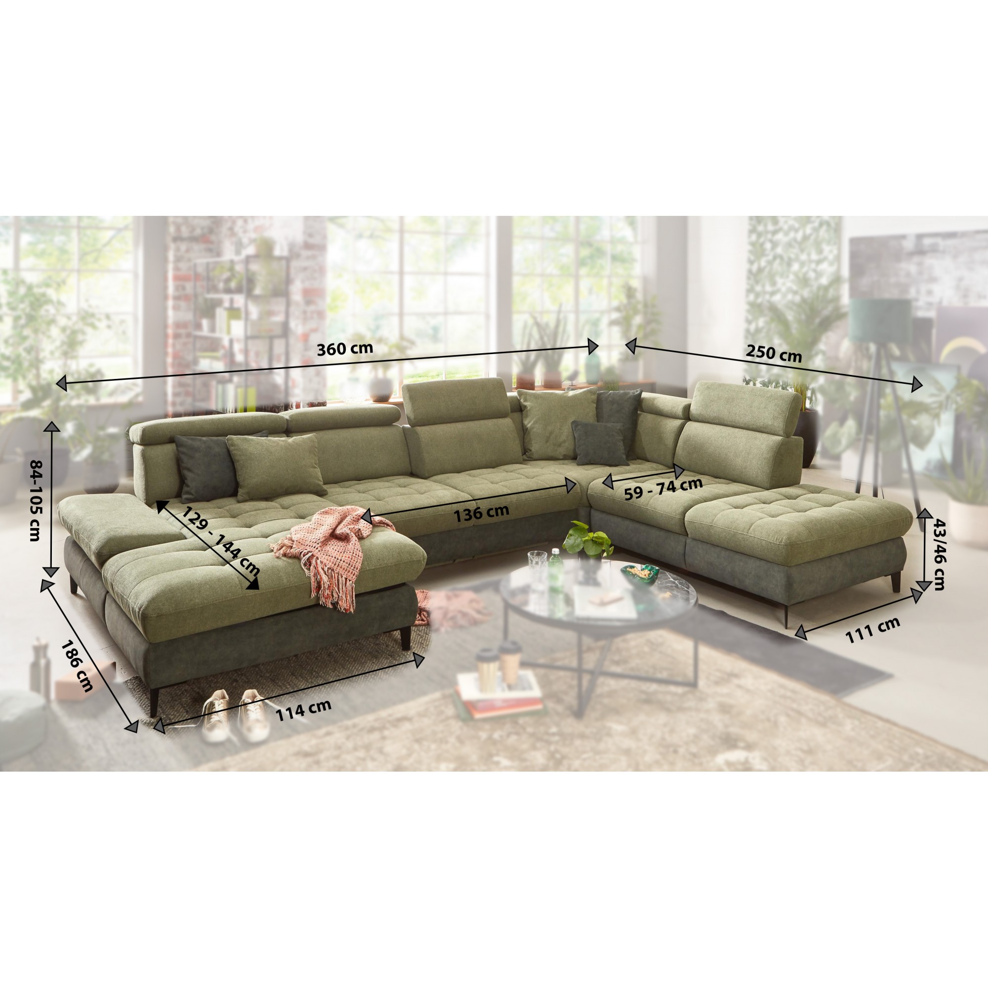 U-förmiges Sofa mit Funktionen Carolina
