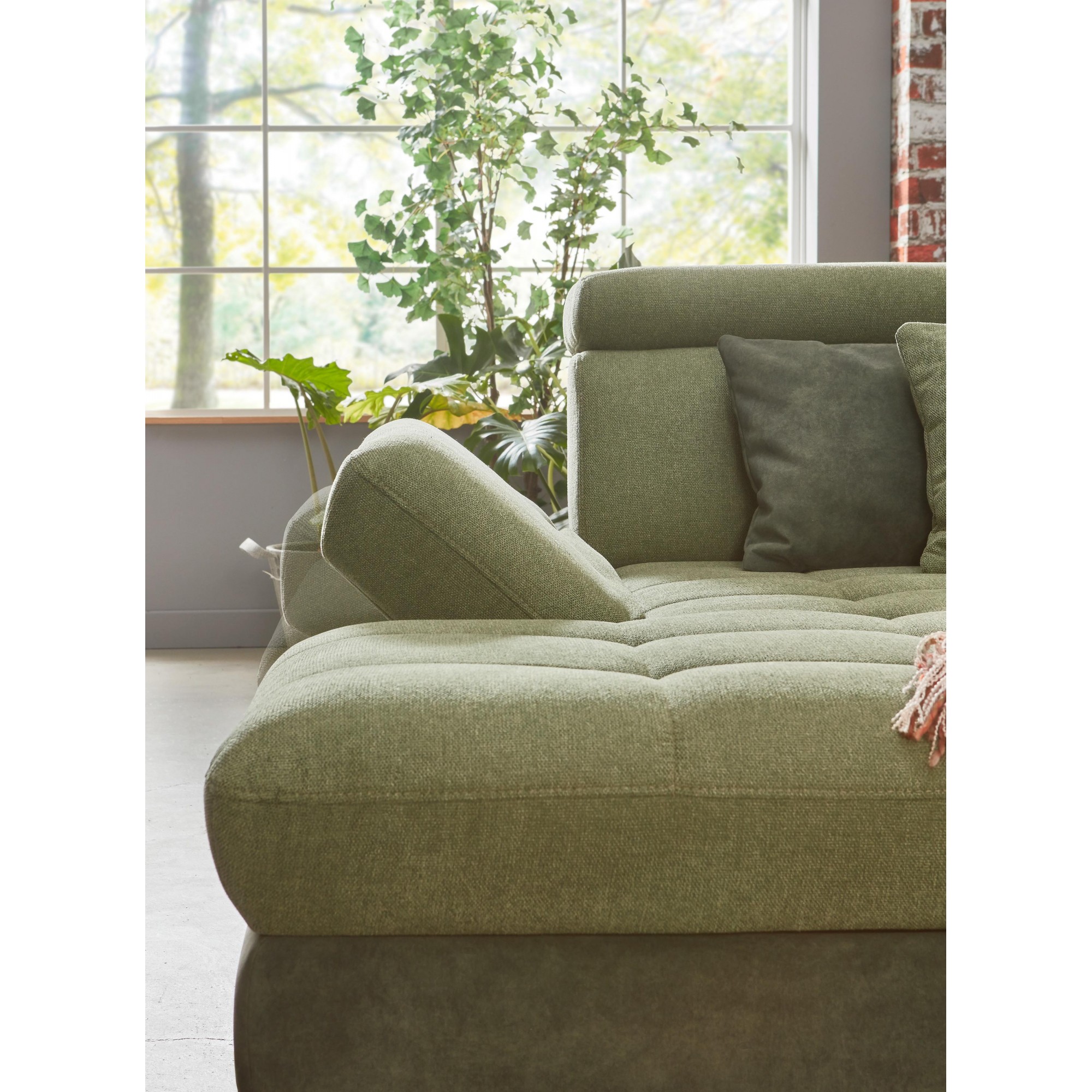 * Auf dem Bild in Stoff 78 Sofie clean dunkelgrün + 12 Miranda jungle. Füße Typ 2 schwarz matt