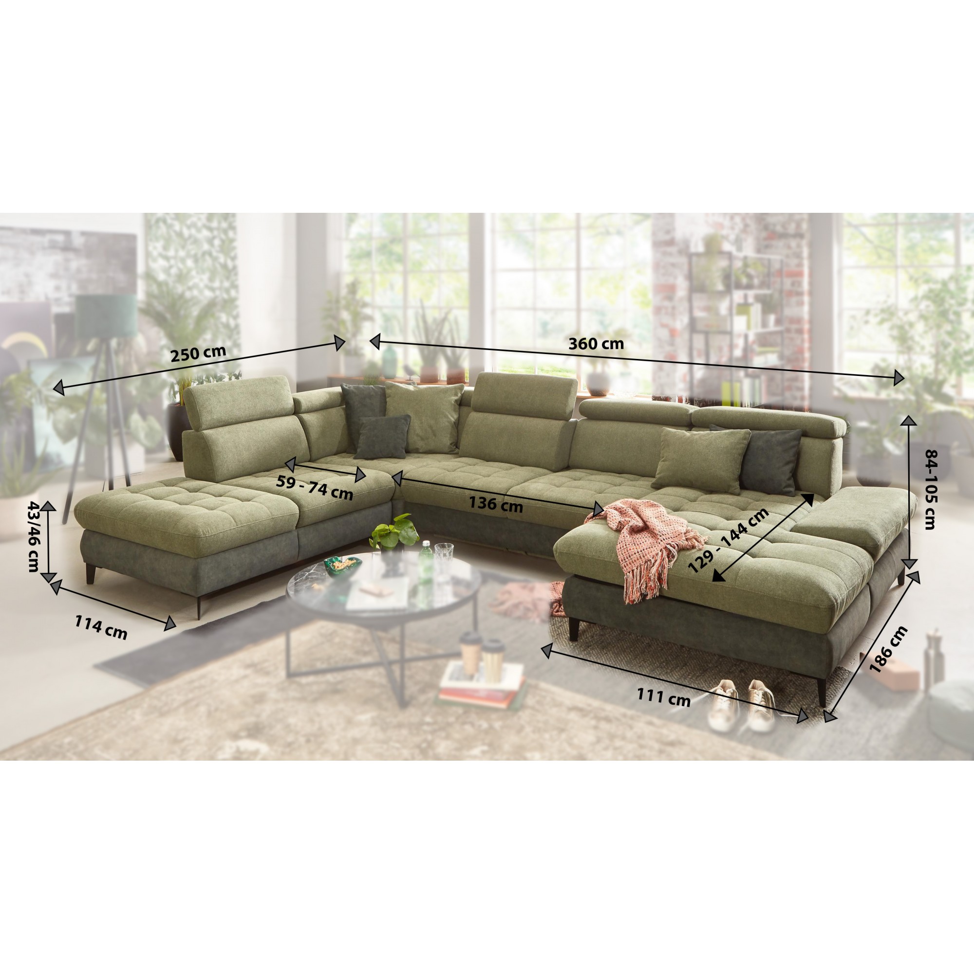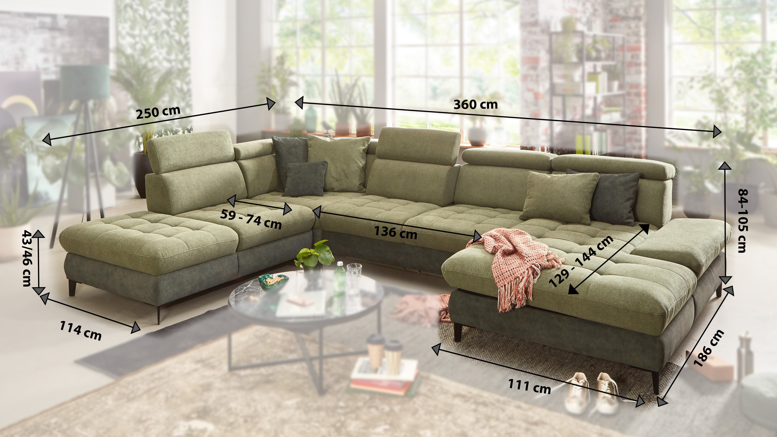 U-förmiges Sofa Karolina modern planbar flexibel