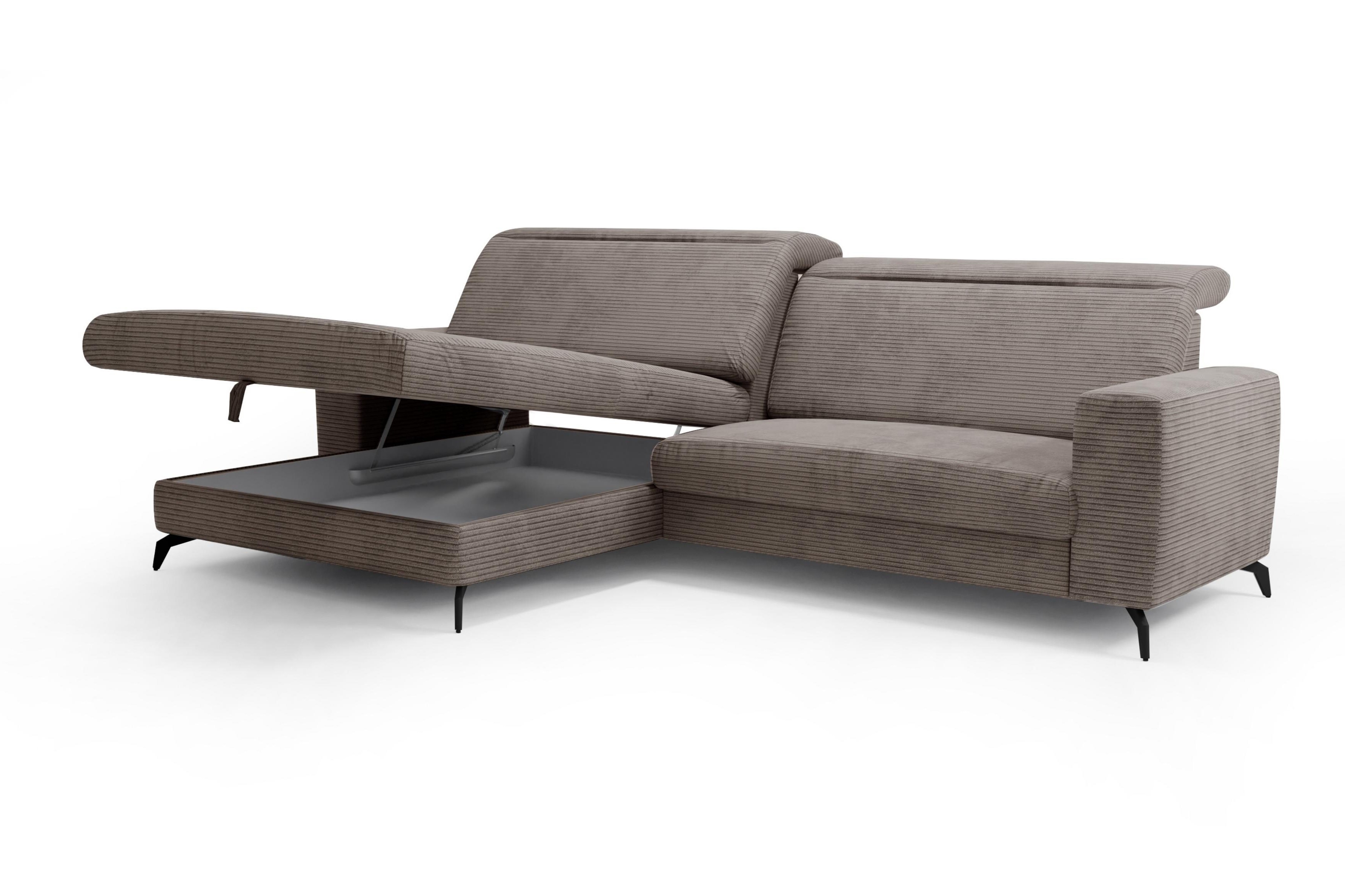 Ecksofa mit Samtstoff Boler - links, grau-braune Farbe