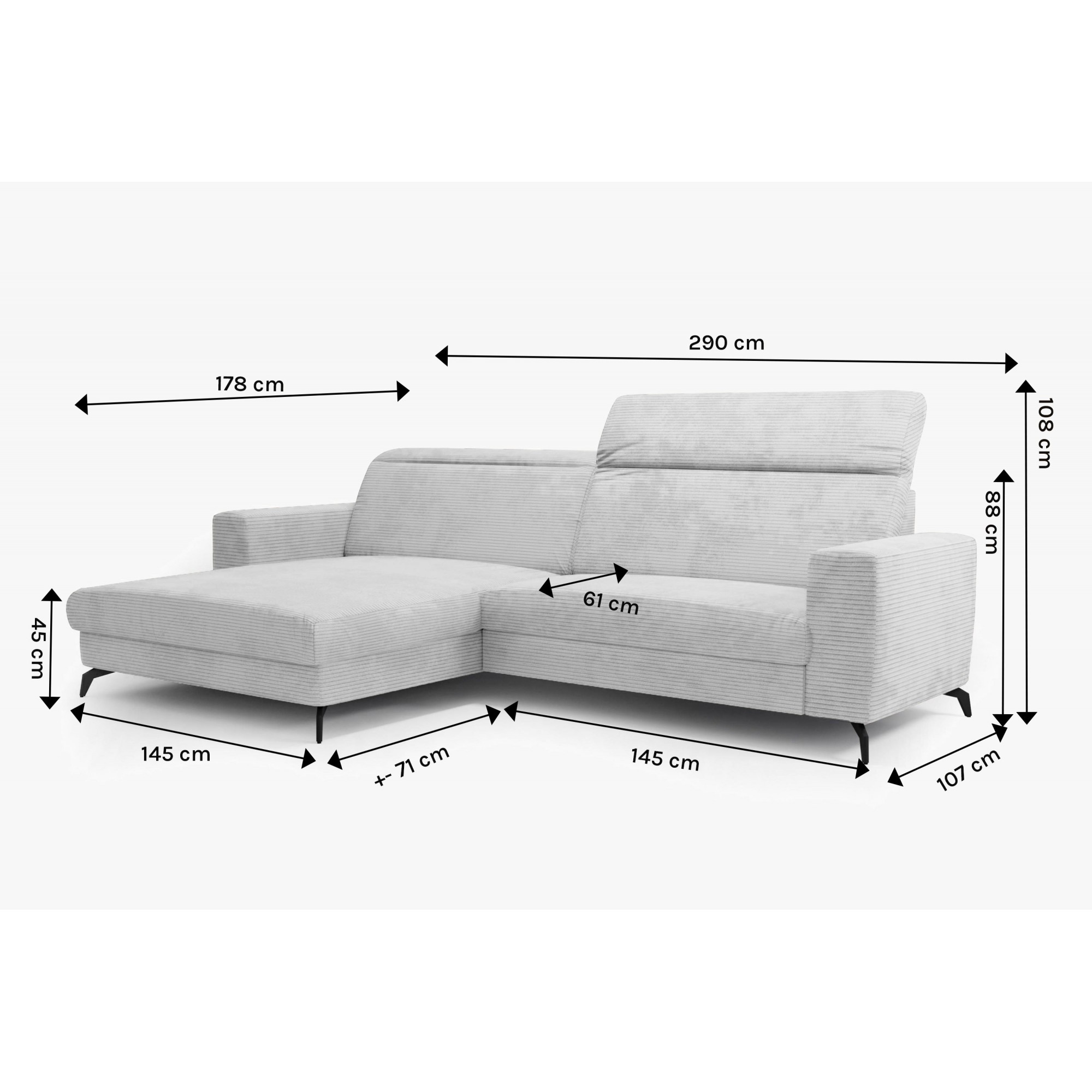 Die Grundlage dieses hochwertigen Sofas ist eine stabile Innenkonstruktion, bei der alle tragenden Teile aus Hartholz gefertigt sind, was Stabilität und Langlebigkeit garantiert. Bei der Herstellung des Sofas haben wir nicht am Komfort gespart - die Kombination aus Wellenfedern und hochwertigem PU-Schaum bietet optimalen Halt und Bequemlichkeit. Gegen Aufpreis kann die Sitzfläche mit einem Federkern für einen noch höheren Komfortstandard ausgestattet werden. Die Rückenlehne ist mit flexiblen Gummibändern ausgestattet, die eine richtige Unterstützung des Rückens gewährleisten.