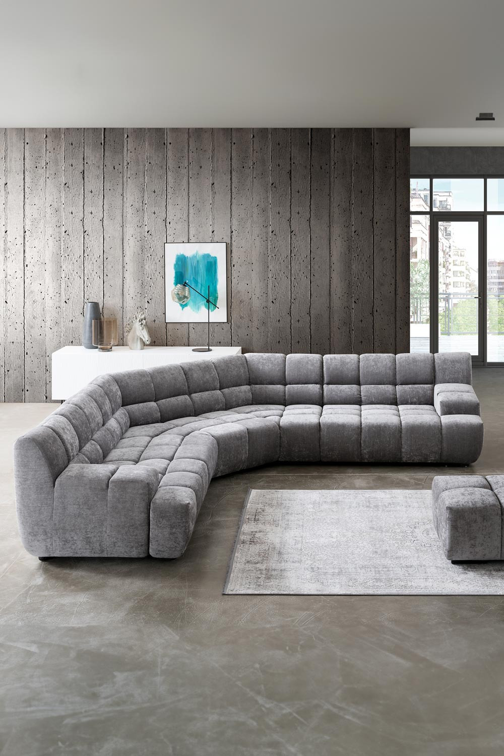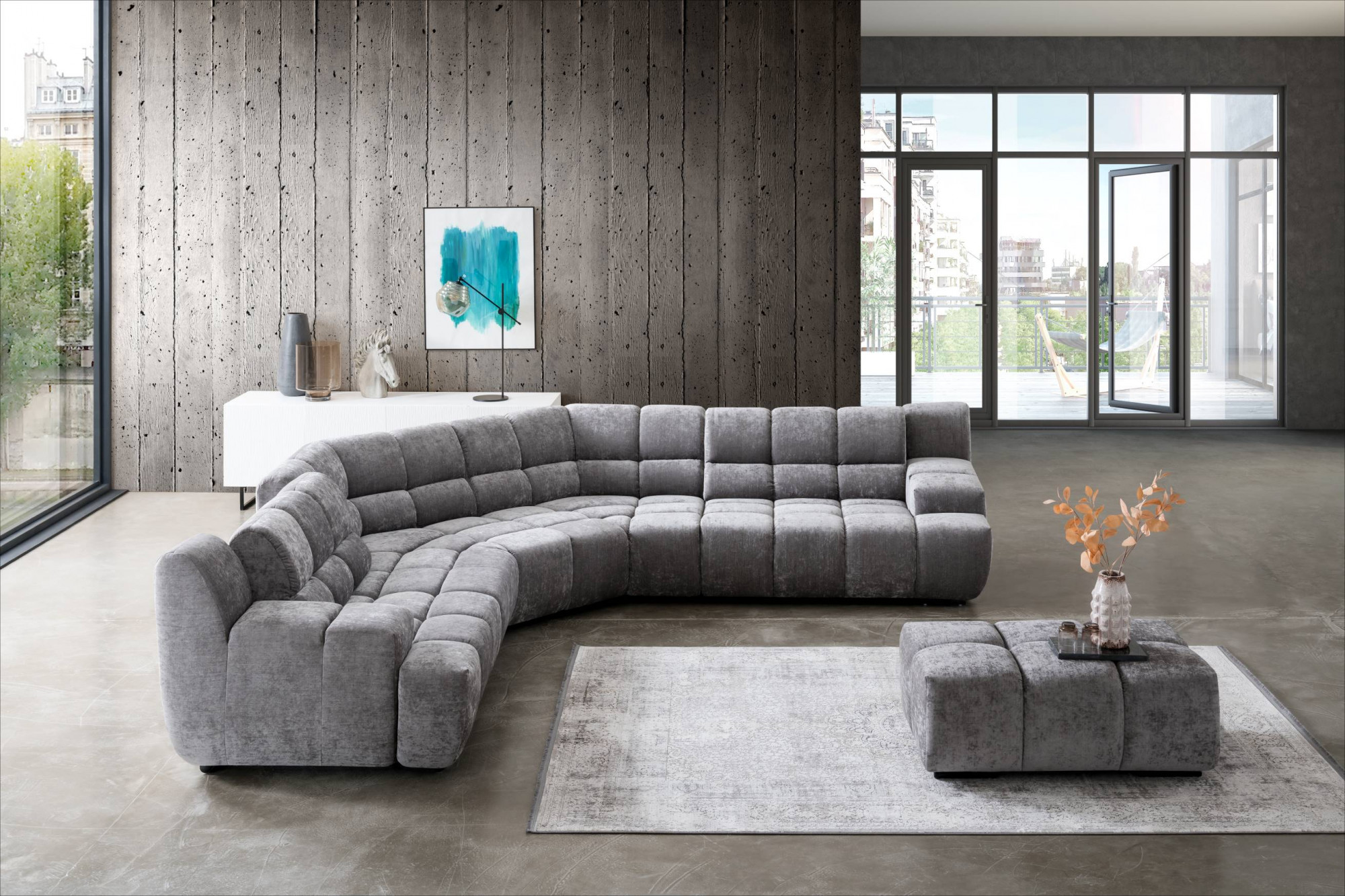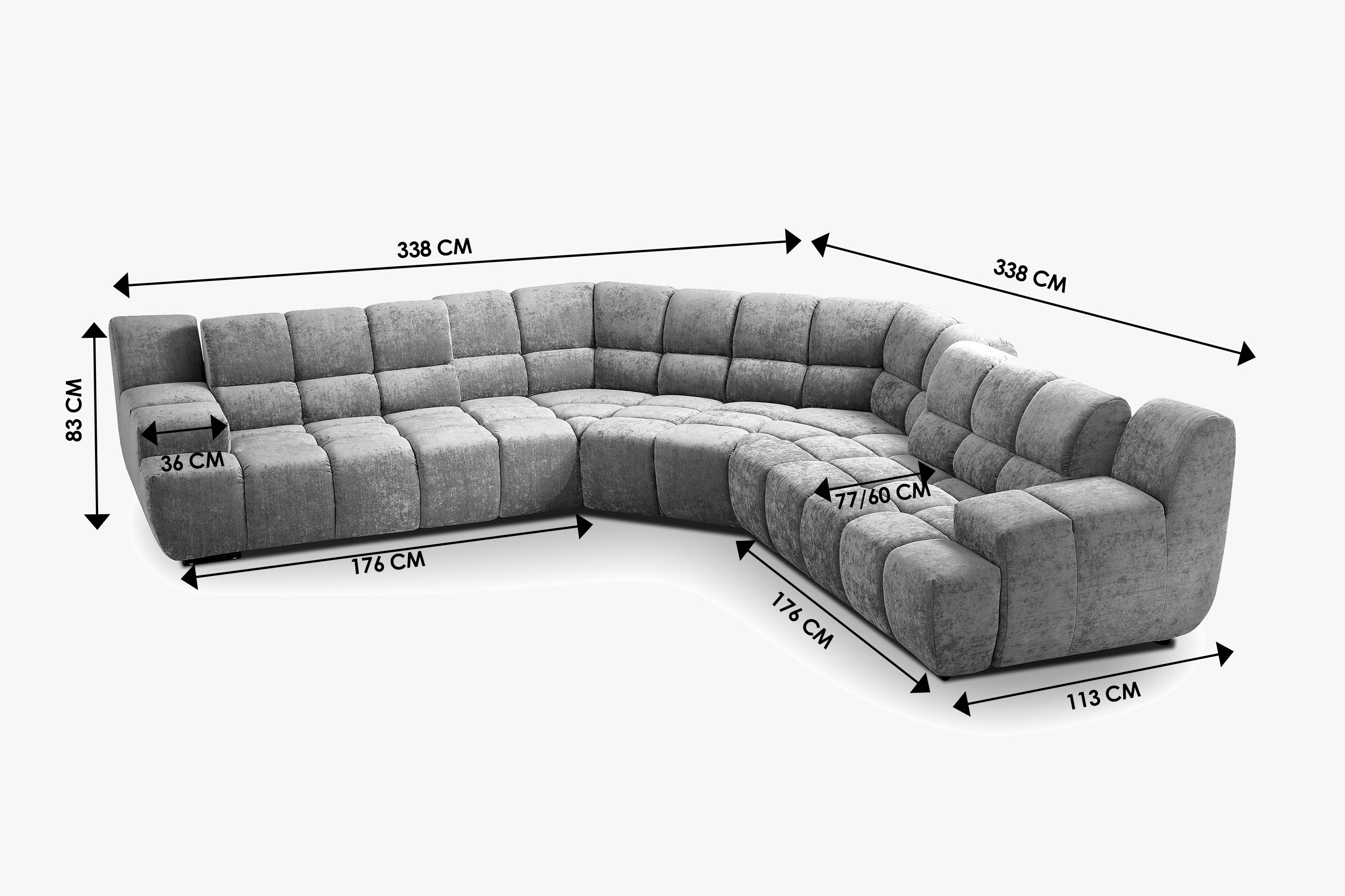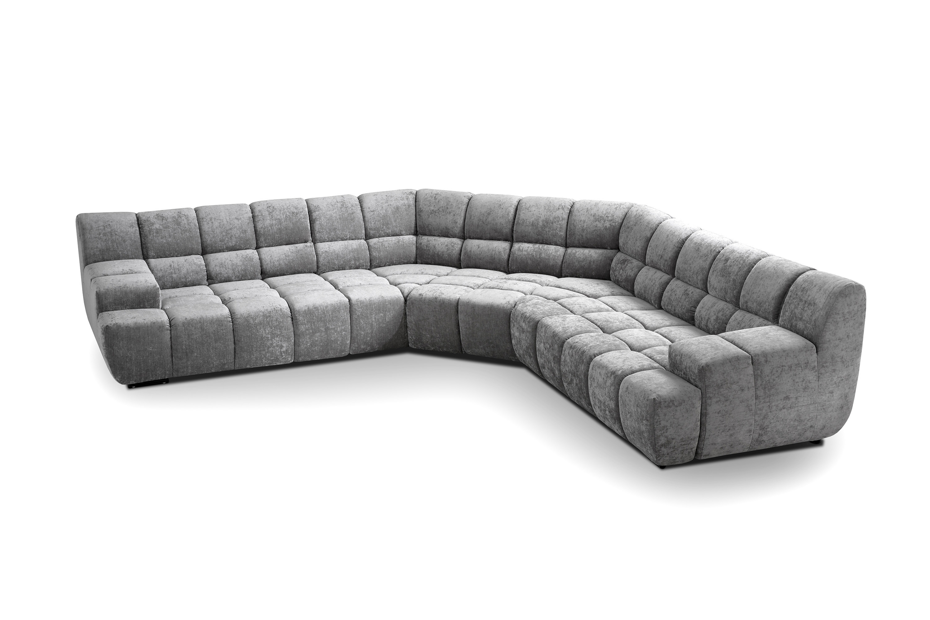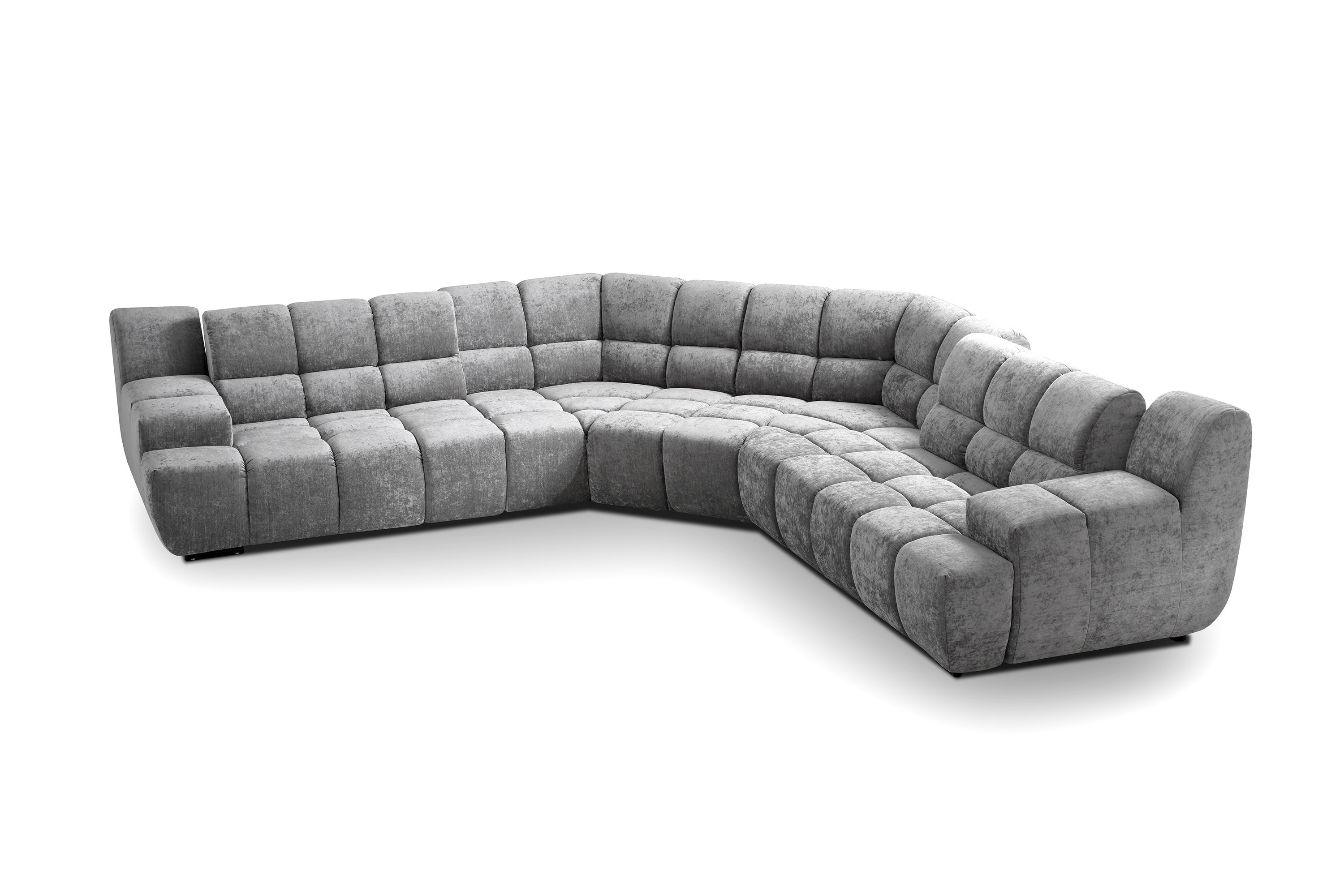Die Eckversion des Sofas kann mit 70 oder 105 cm breiten Modulen erweitert werden. Jede der Ecken kann in U-Form oder mit klassischem Abschluss abgeschlossen werden.