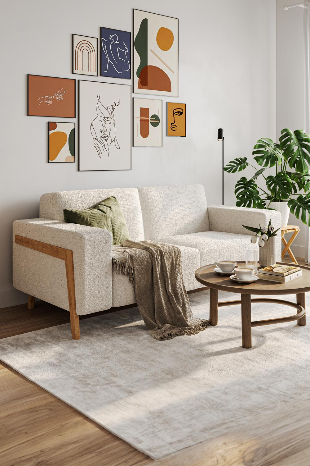 Stellen Sie sich ein Sofa vor, das einfaches und elegantes skandinavisches Design mit hohem Sitzkomfort verbindet. Unser dreisitziges Sofa wird Sie sofort mit seinem besonderen Aussehen begeistern, bei dem die Beine eine dominante Rolle spielen, die perfekt in die Konstruktion integriert sind und dem Sofa einen einzigartigen Charakter verleihen.