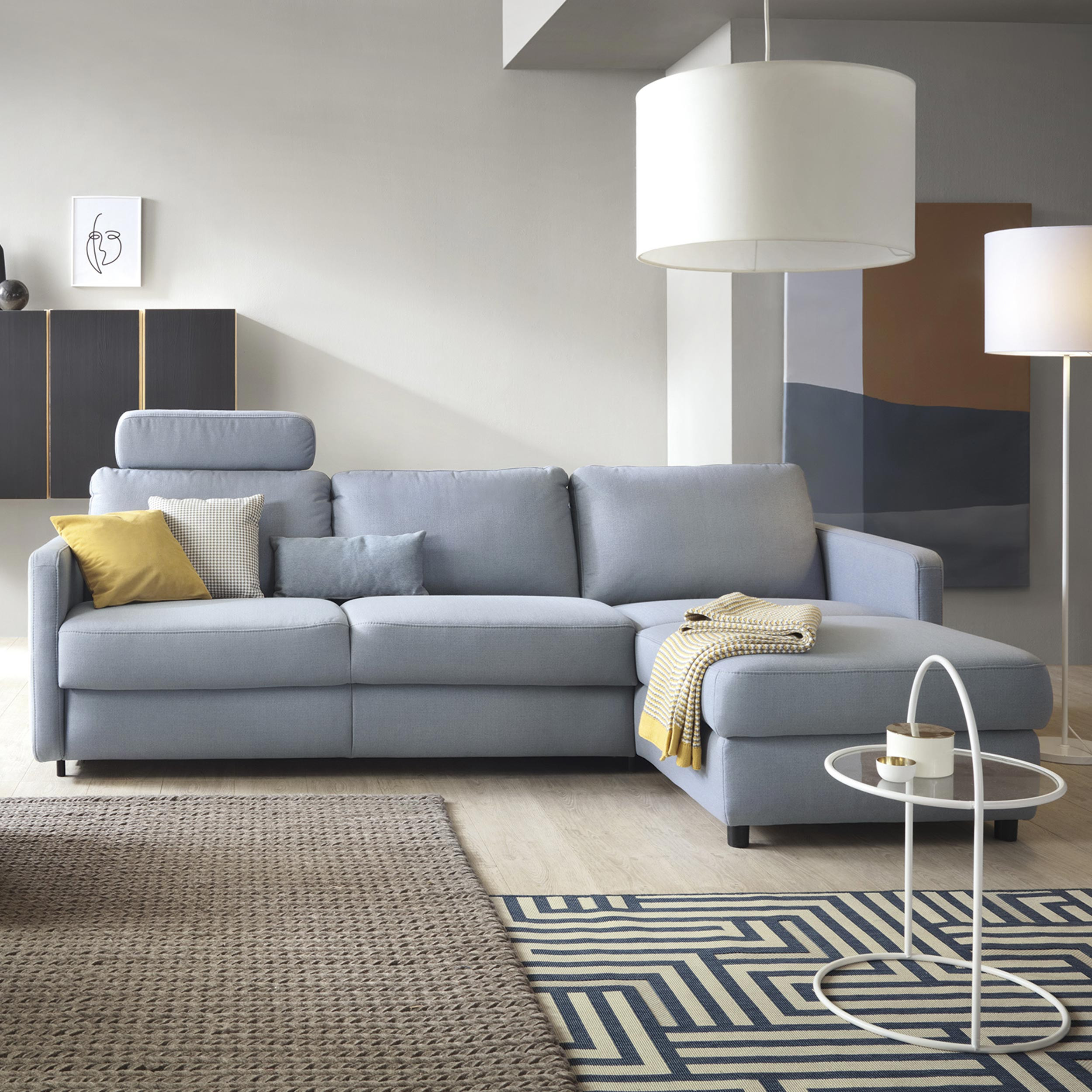 - Umwandlungsoption: Ein einfacher Mechanismus verwandelt das Sofa in ein Bett mit den Maßen 140 × 200 cm, ideal für Gäste oder für den täglichen Schlaf.