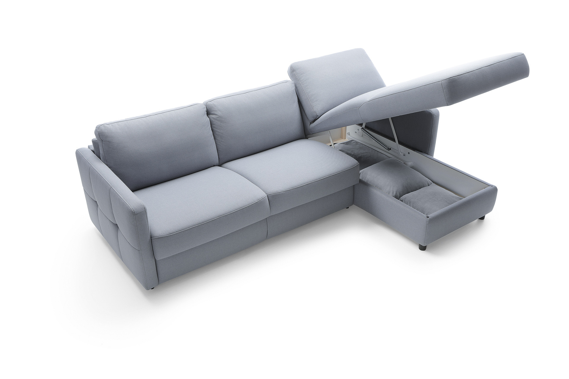 - Stauraum: Das Sofa verfügt über einen praktischen Stauraum, ideal für Bettwäsche oder andere Utensilien.