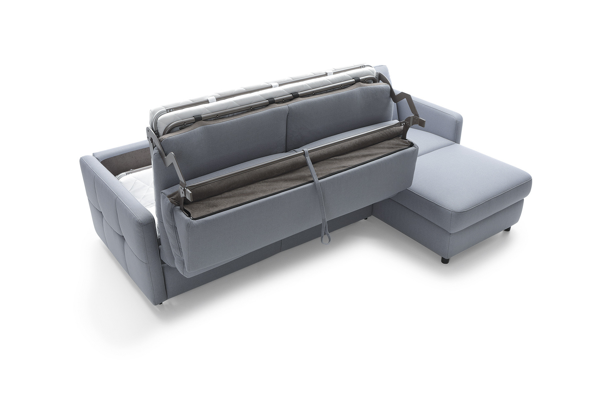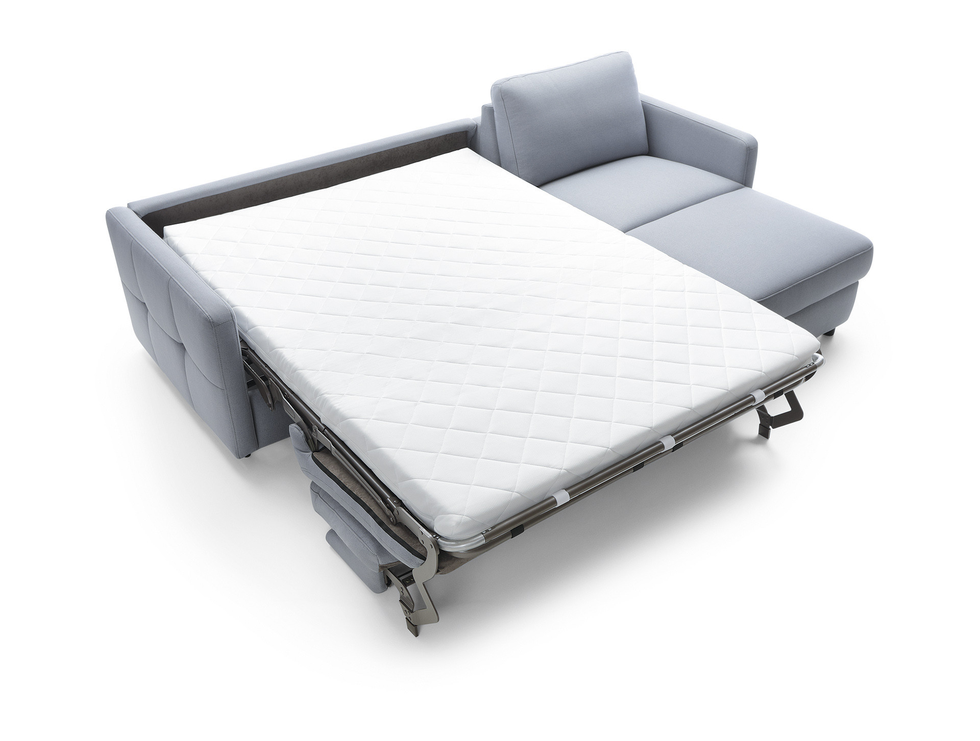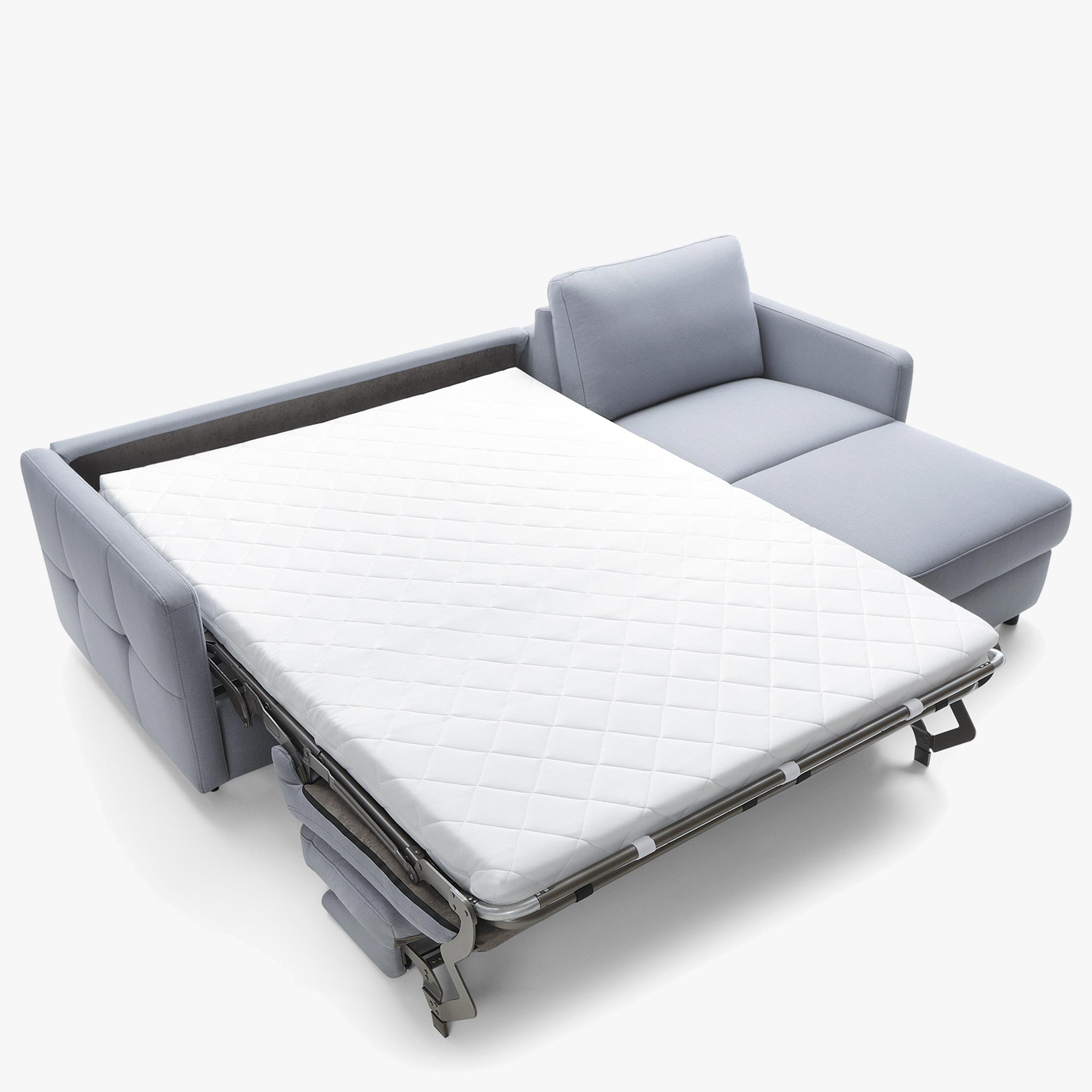- Konstruktion mit italienischem Standard LT-Rahmen: Der Mechanismus sorgt für eine einfache Umwandlung in ein Bett, das stabil, bequem und für den täglichen Gebrauch geeignet ist. Inklusive einer Matratze mit einer Dicke von 11 cm, die optimalen Komfort gewährleistet.
