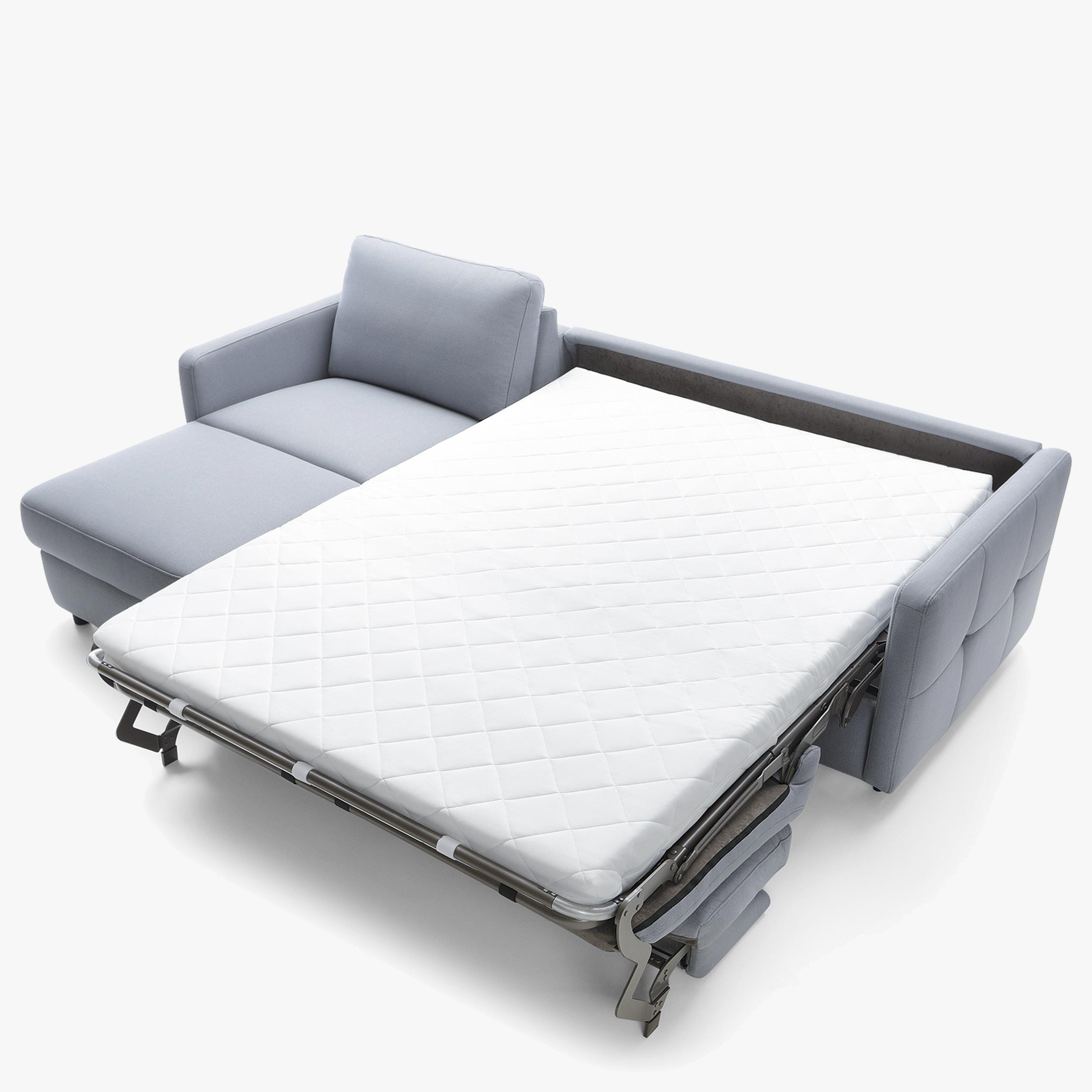 - Konstruktion mit italienischem Standard LT-Rahmen: Der Mechanismus sorgt für eine einfache Umwandlung in ein Bett, das stabil, bequem und für den täglichen Schlaf geeignet ist. Inklusive ist eine Matratze mit einer Dicke von 11 cm, die optimalen Komfort gewährleistet.
