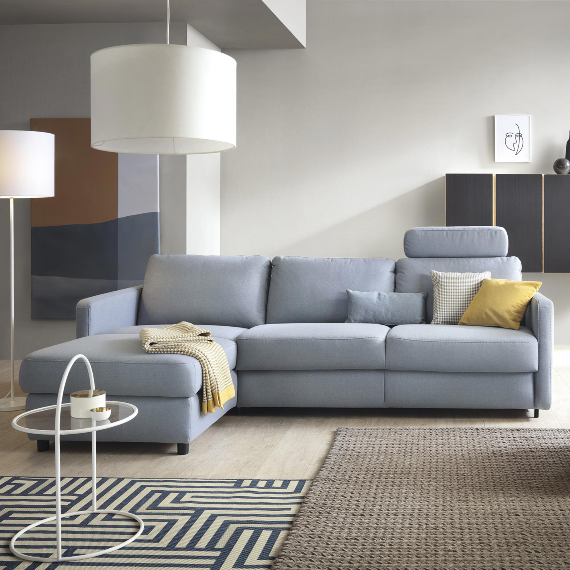 - Flexible Optionen: Das Sofa ist in mehreren Konfigurationen und Stoffen erhältlich, die sich einfach an Ihr Interieur anpassen lassen.