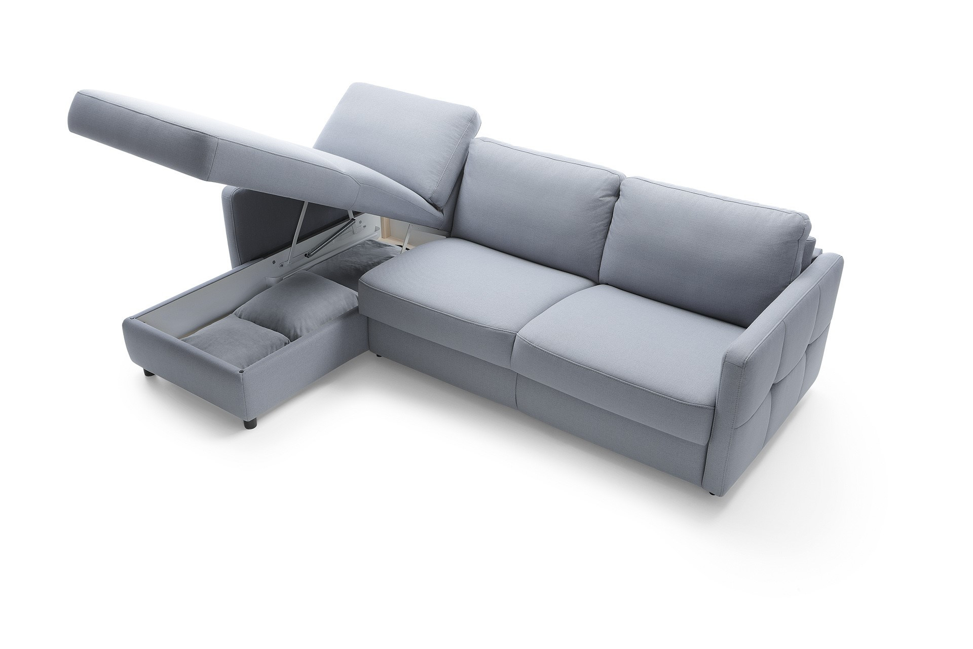 - Stauraum: Das Sofa verfügt über einen praktischen Stauraum, ideal für Bettwäsche oder andere Utensilien.