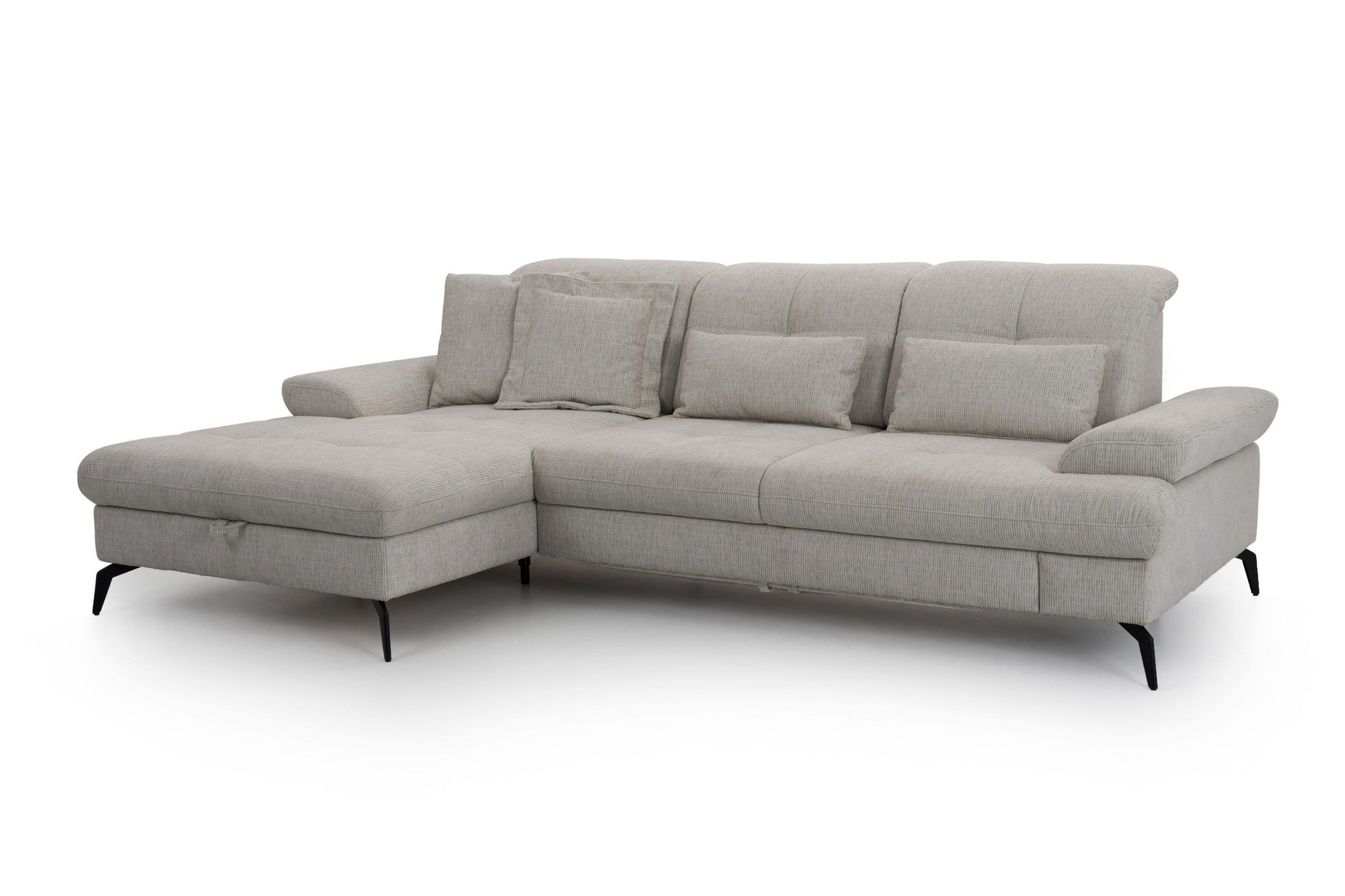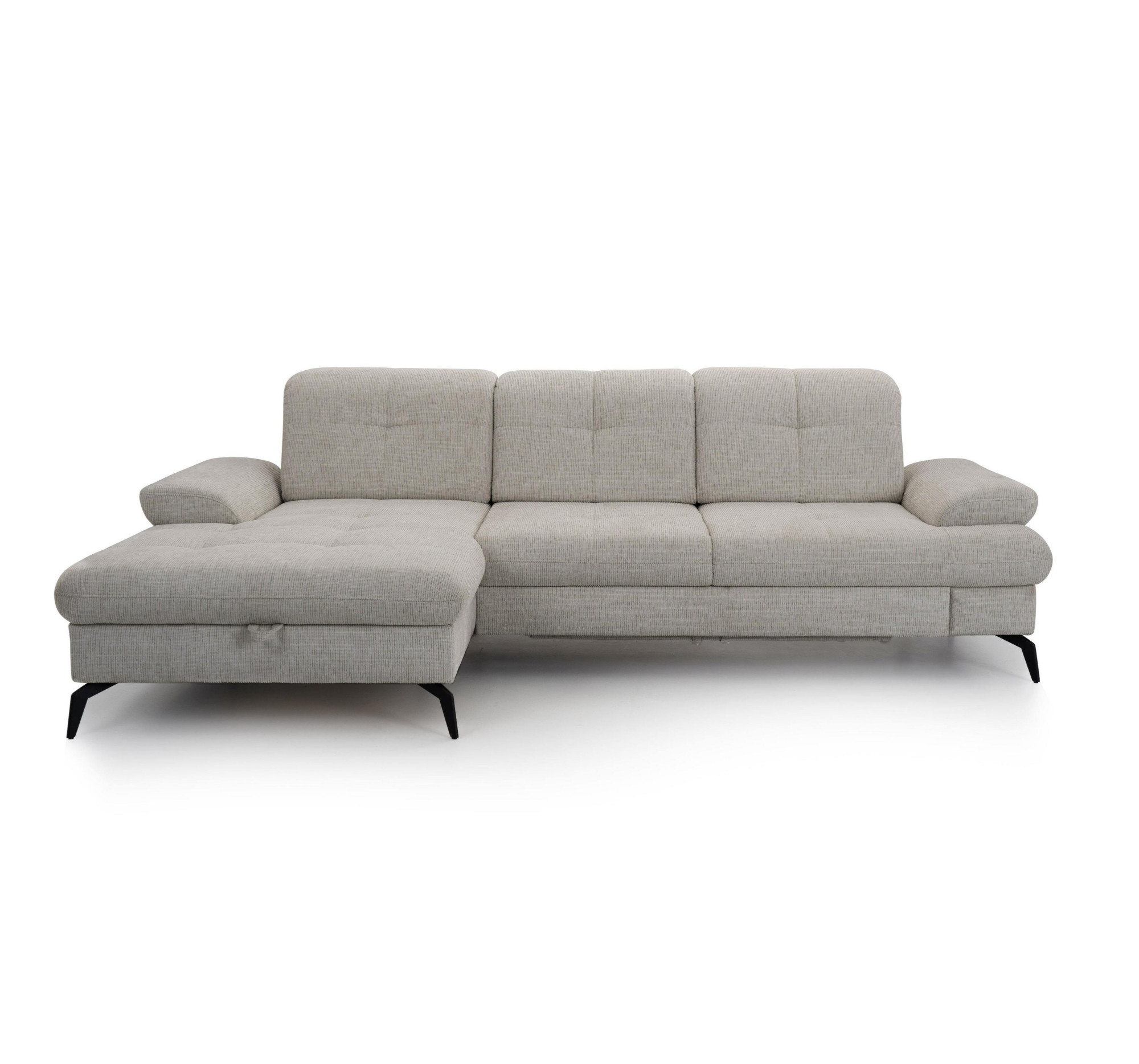 Die Sitzgarnitur kann ausgestattet werden mit Stauraum, der ideal zum Verstauen von saisonalen Decken, Kissen oder anderen Kleinigkeiten ist. Darüber hinaus bietet Möglichkeit, in ein bequemes Bett umzuwandeln, was sie zu einer großartigen Wahl für Haushalte macht, die gelegentlich ein zusätzliches Bett für Gäste benötigen. Der Ausklappmechanismus ist einfach und schnell, sodass die Umwandlung von einem Sofa in ein Bett nur wenige Sekunden in Anspruch nimmt.