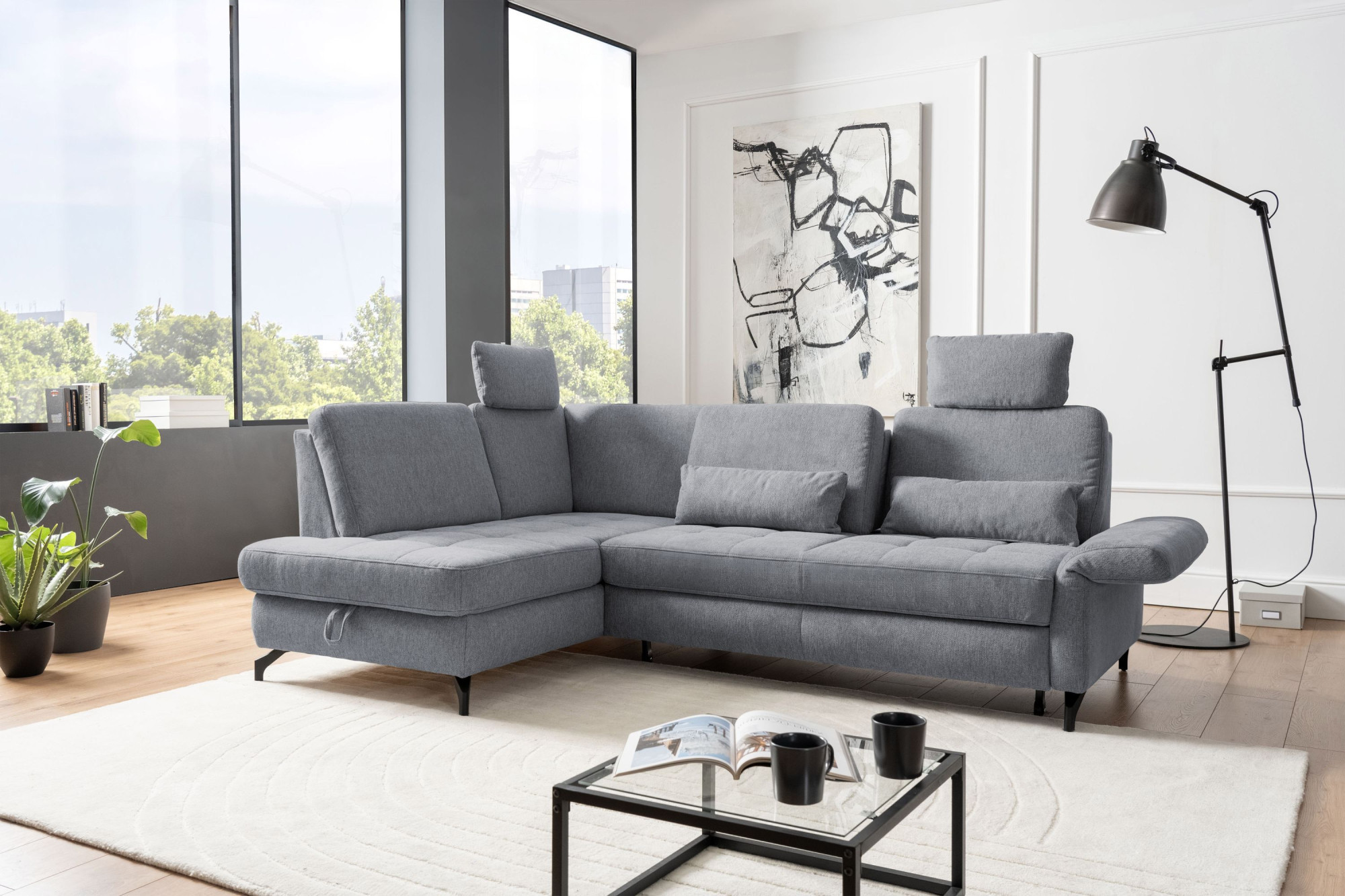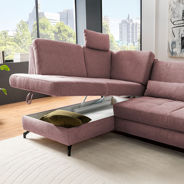 - Integrierter Stauraum in der Ottomane gegen Aufpreis