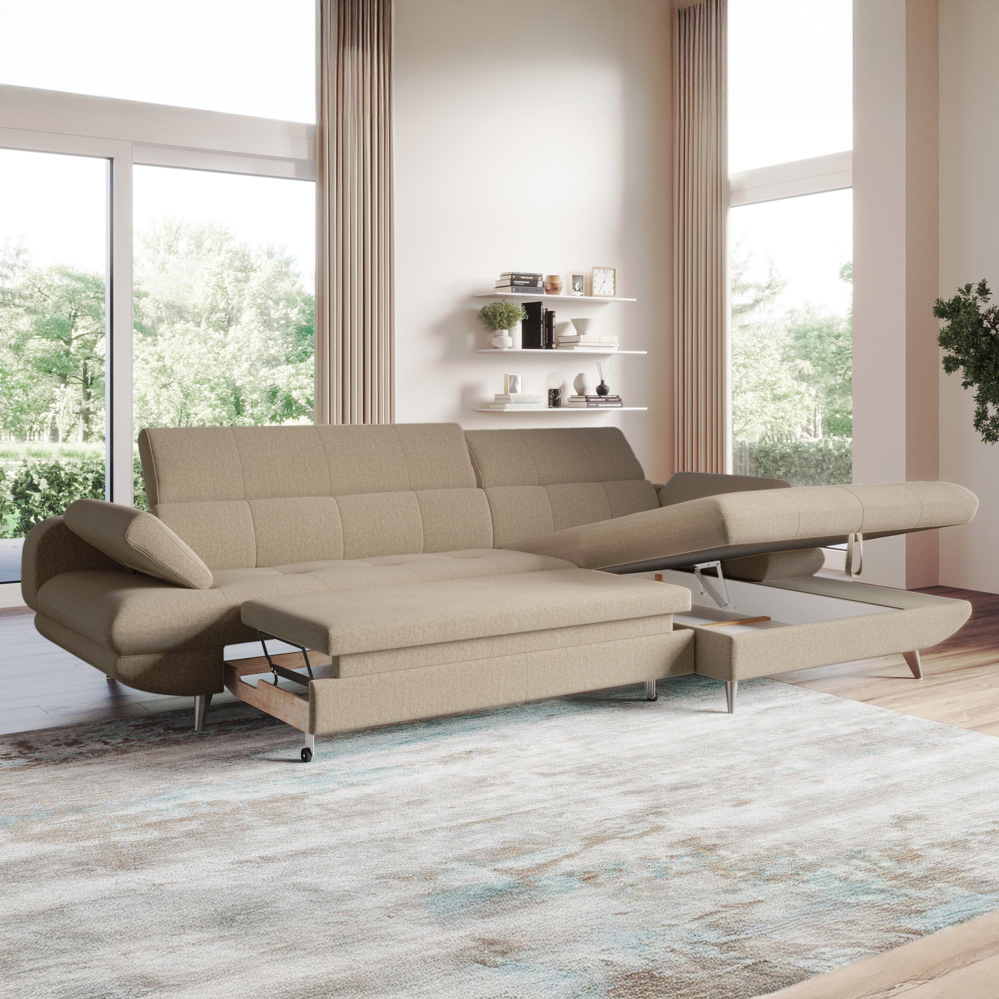 Ecksofa mit Schlaffunktion und Stauraum modern komfortabel