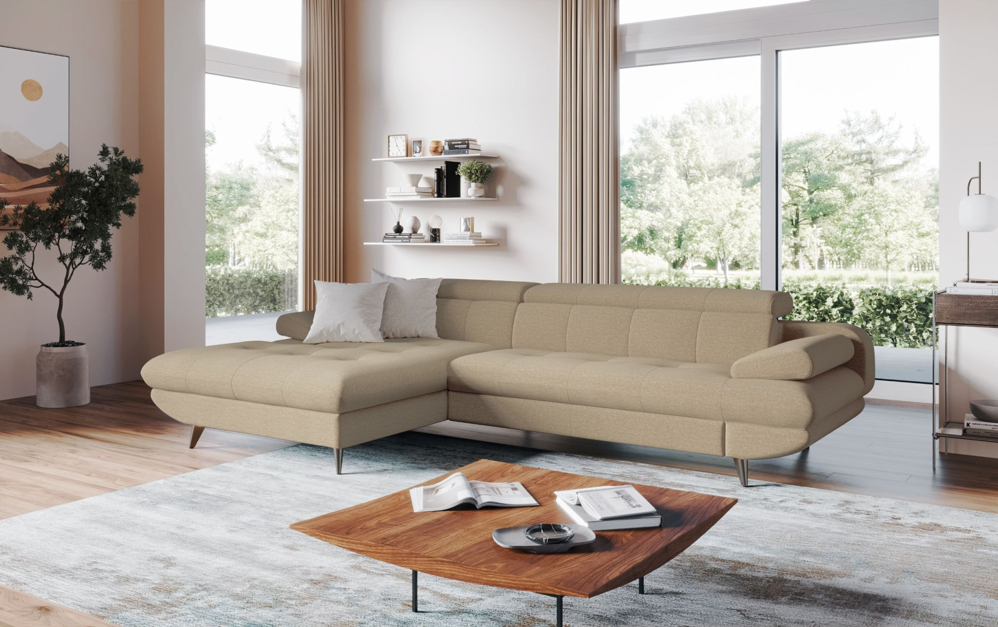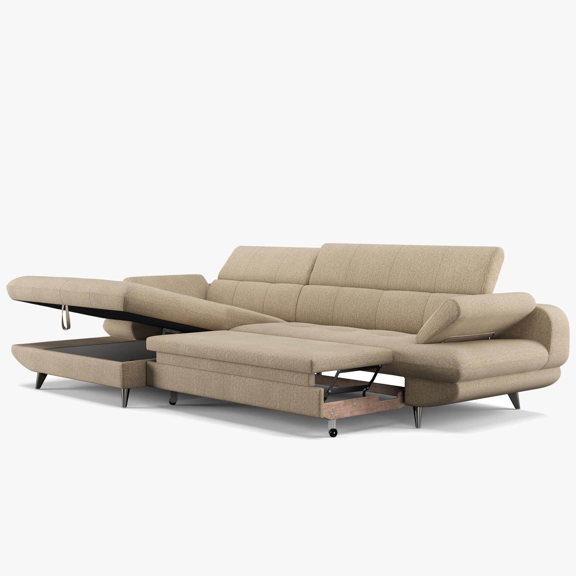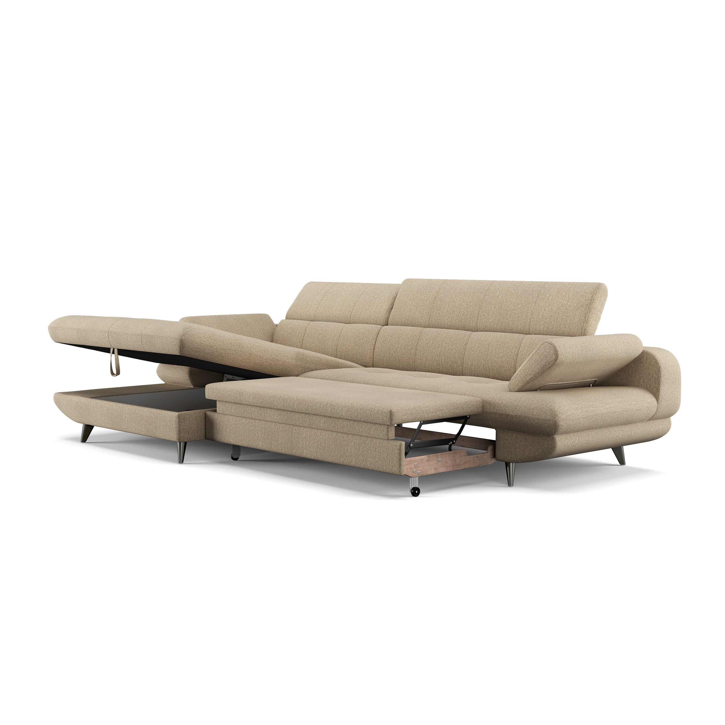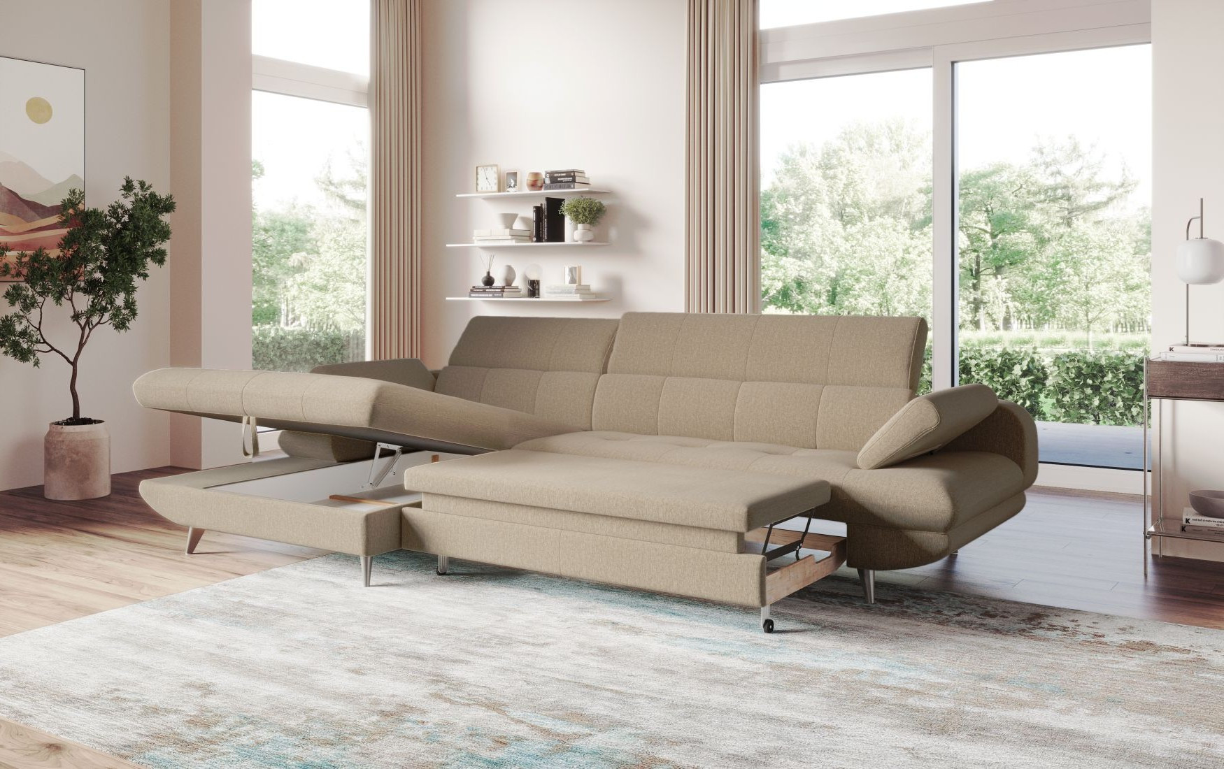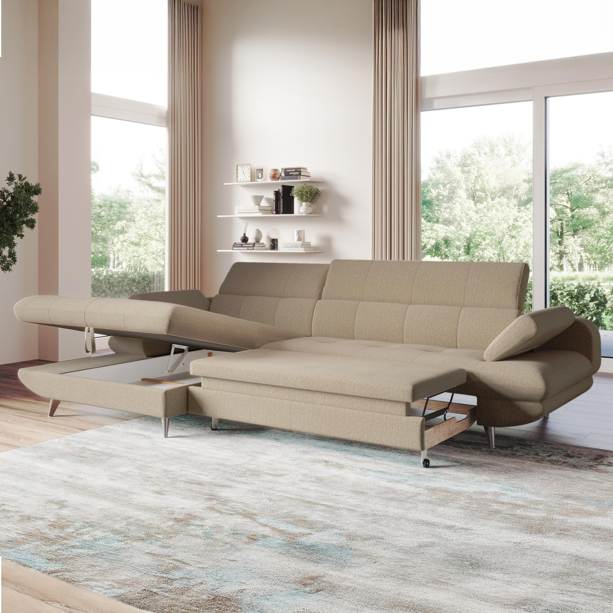 Ecksofa links mit Schlaffunktion und Stauraum modern