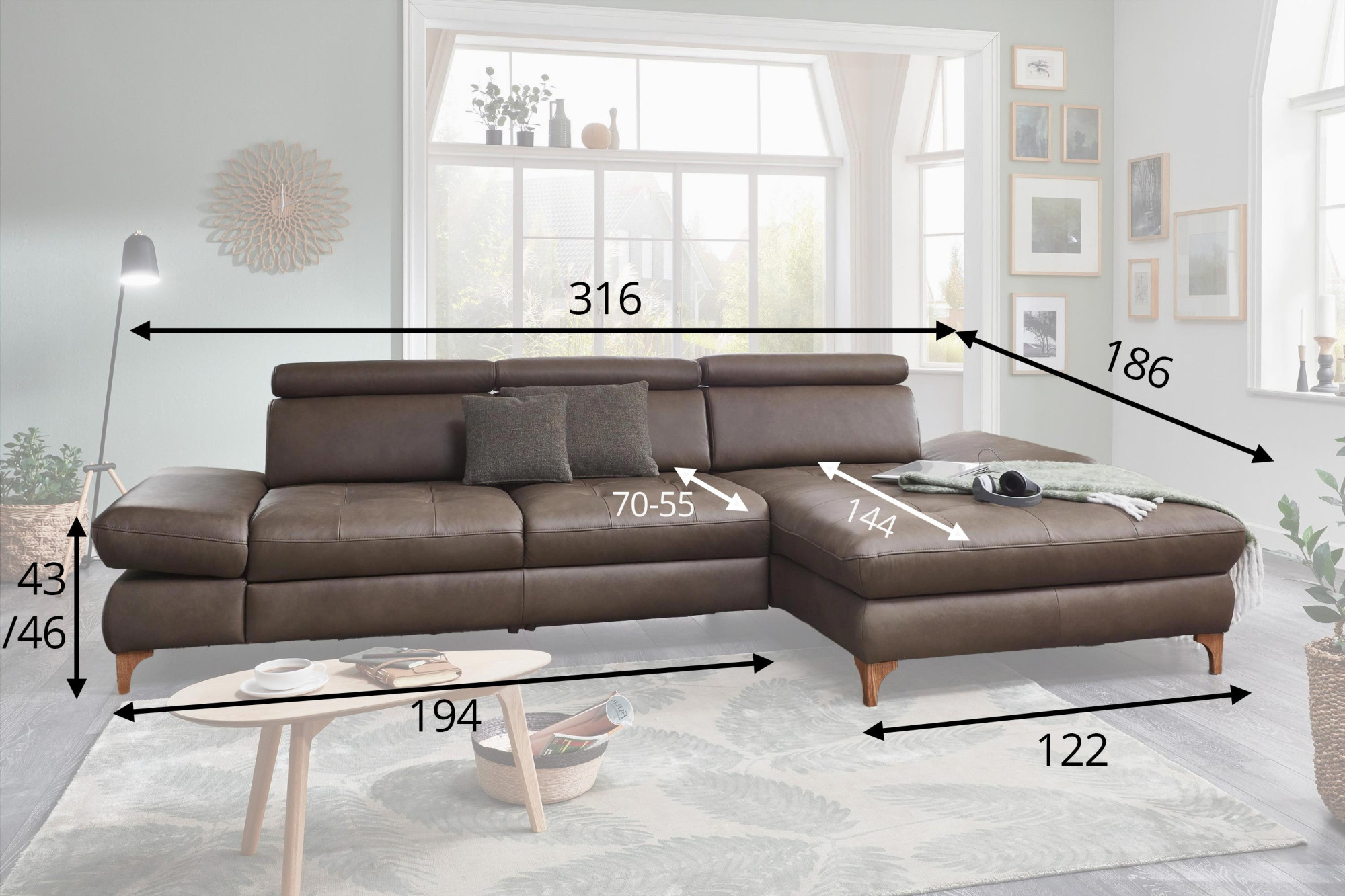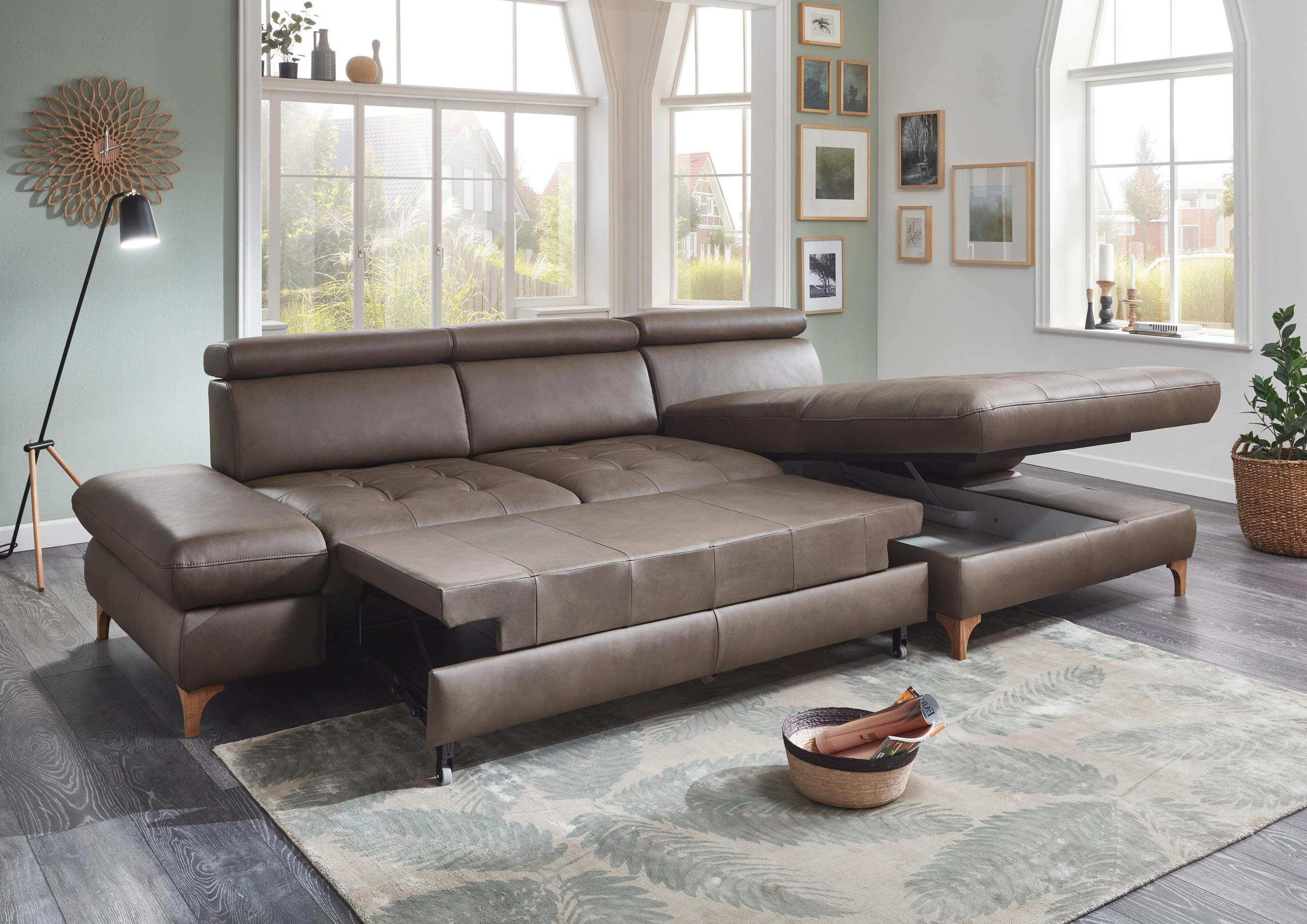 Ecksofa Carolina mit PUR-Schaumstoff Sitzhöhe 43 cm grau